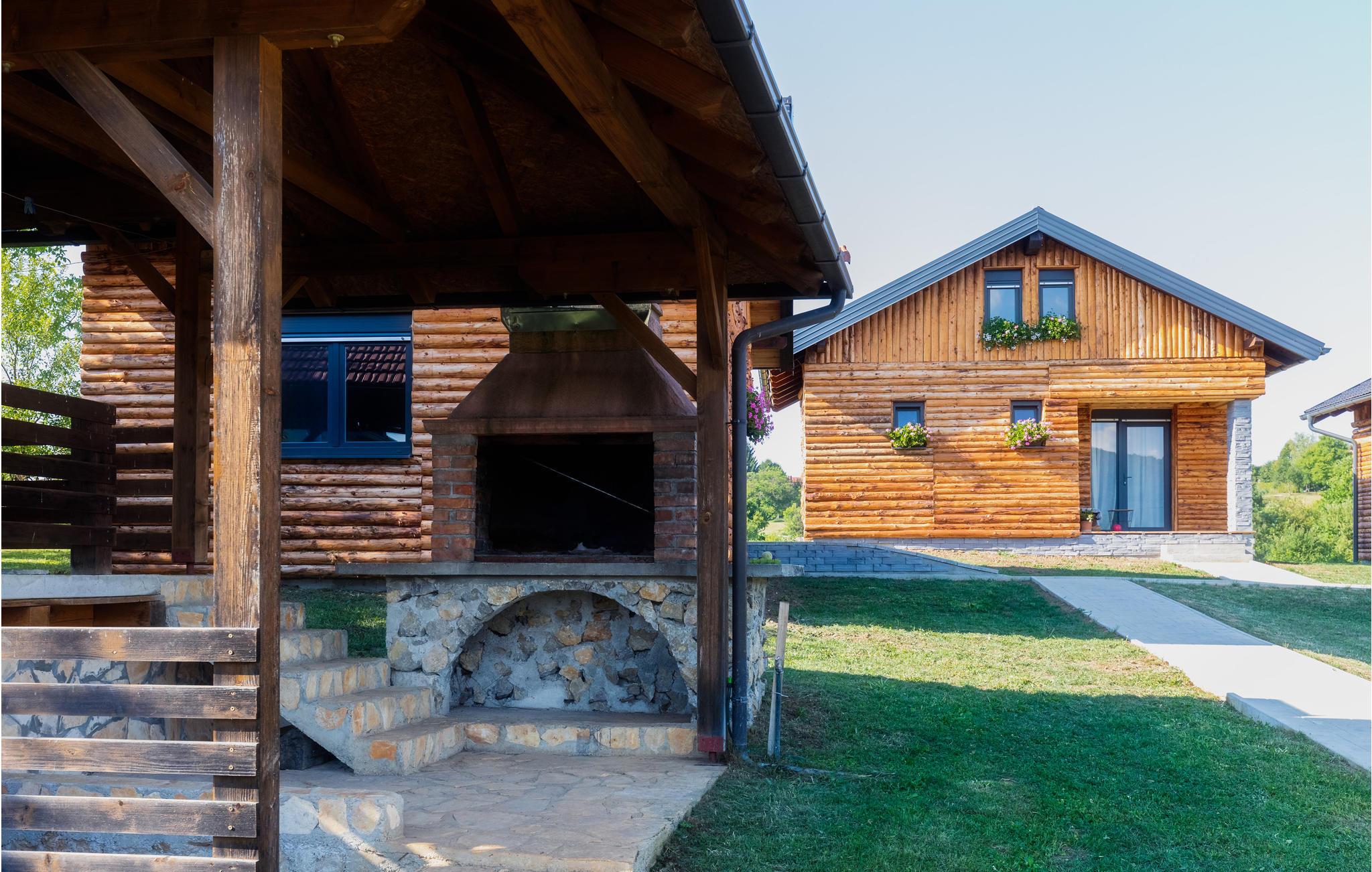 Velkommen til denne lækre bjælkehytte med fælles pool og landlige omgivelser.