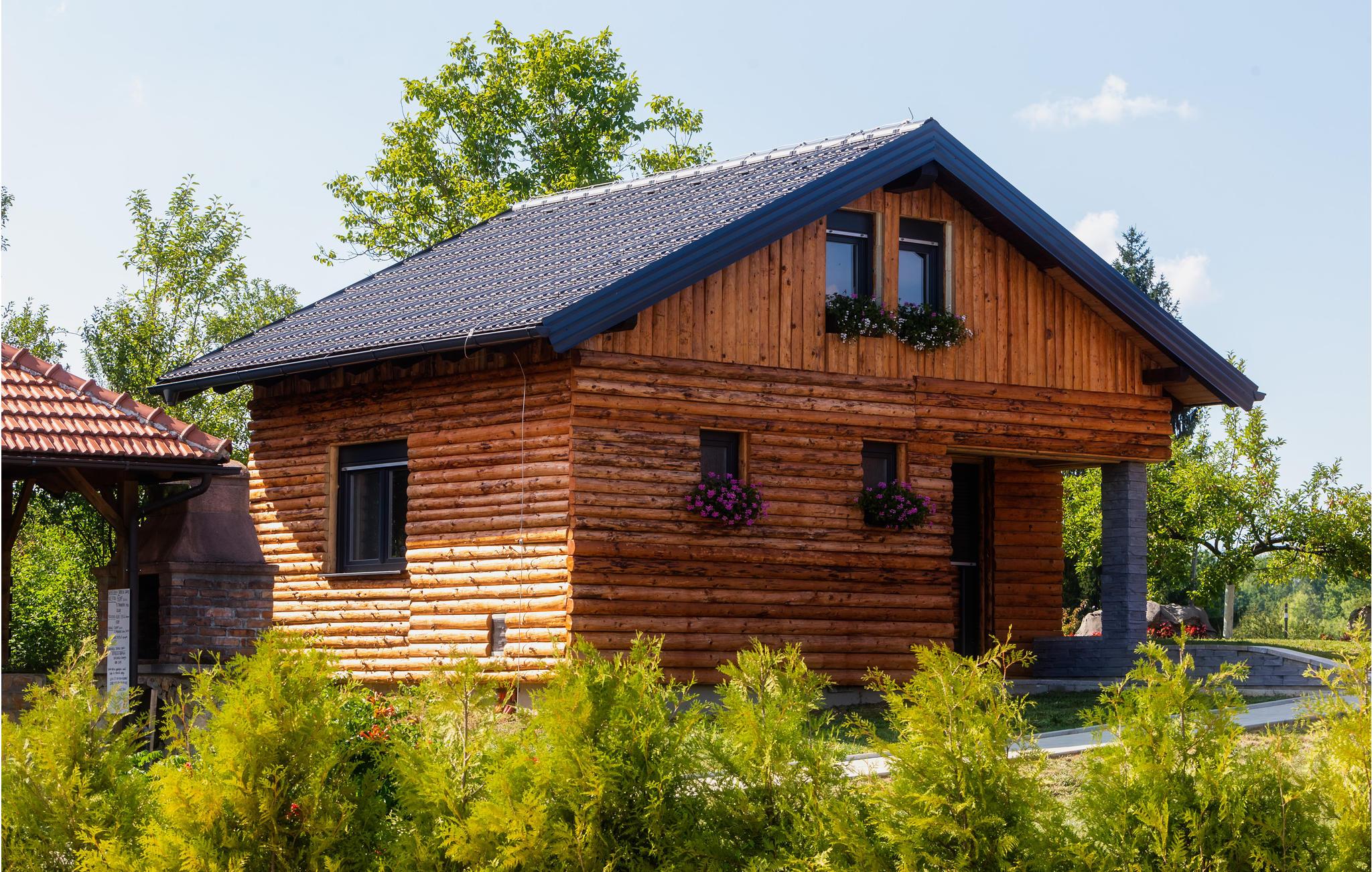 Velkommen til denne lækre bjælkehytte med fælles pool og landlige omgivelser.
