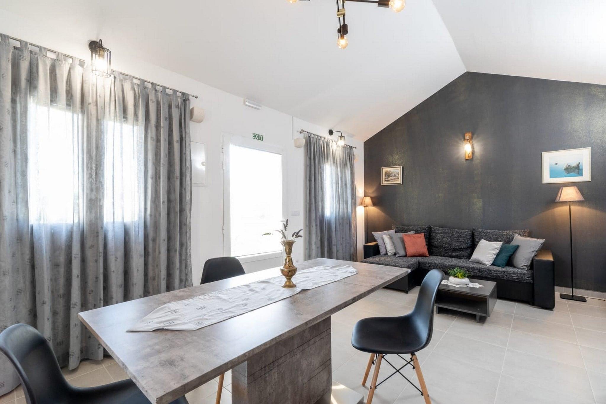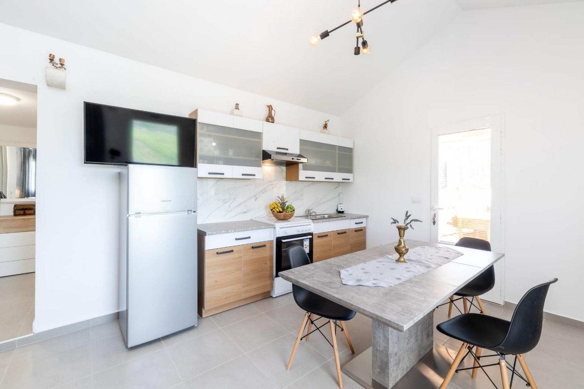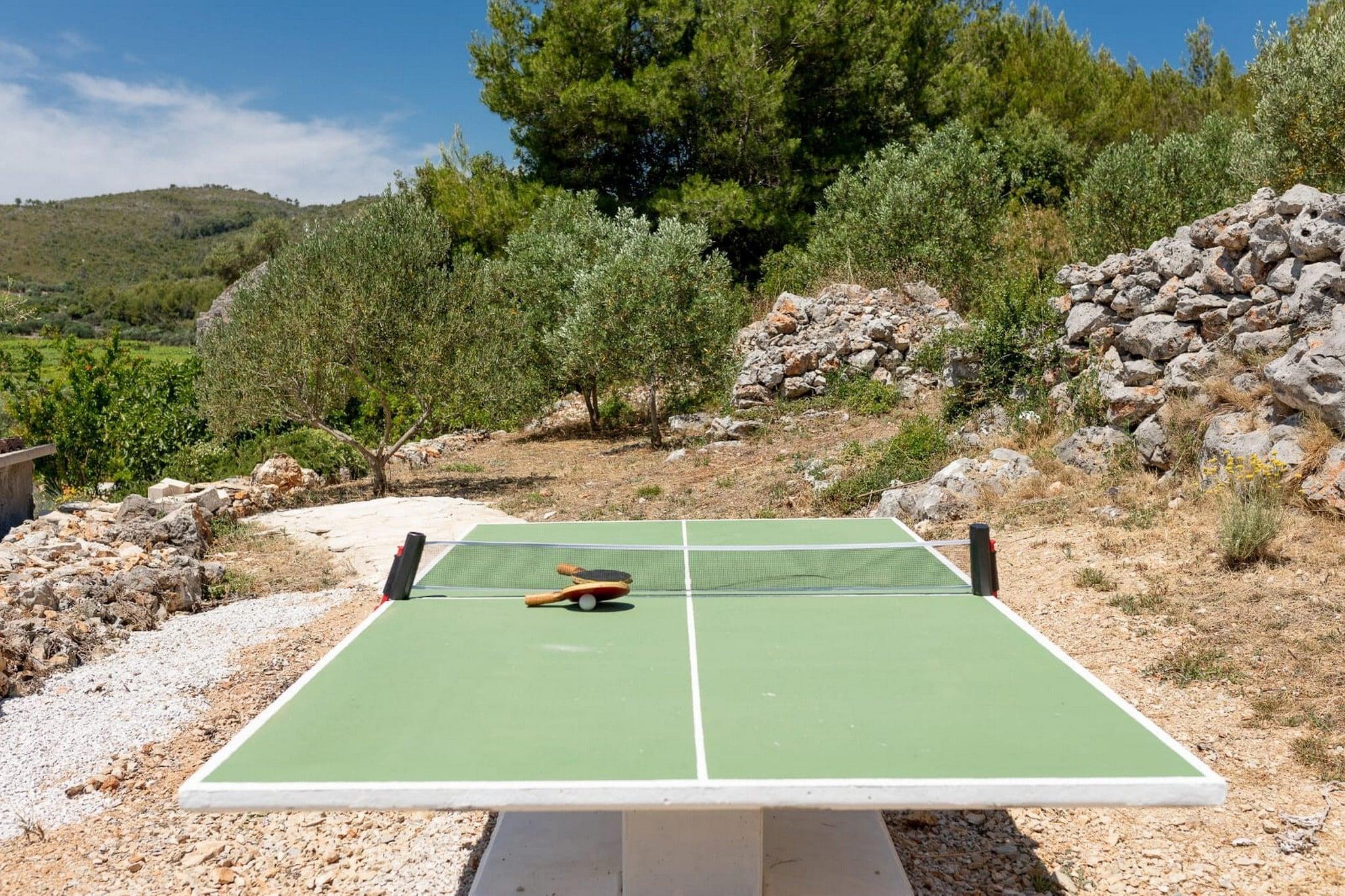 Stone House Prapatna er en 6000 m² afsondret og rolig ejendom på den sydlige side af øen Korcula, der tilbyder en autentisk og afslappet middelhavsstemning. Den fantastiske udsigt over Adriaterhavet komplimenteres af de indre olivenlunde og vinmarker. Godset består af to huse; det oprindelige hus fra 1652, som er optaget i folkearvsregistret, og det nybyggede hus. Det originale hus er blevet renoveret for at blande det moderne design med autentiske omgivelser fra det 17. århundrede. Det andet, nybyggede hus, blev bygget efter en autentisk arkitektur med moderne indretning. Fællesarealerne rummer ejendommen: have, terrasse, swimmingpool med solterrasse, grillplads, petanquebane, bordtennis, legeplads til børn med gynger, og cykler og badmintonsæt til brug. Ejendommen er fuldt forsynet med grøn energi, den har solpaneler. Kæledyr er velkomne uden ekstra gebyr. Bagageopbevaring er mulig før check-in og efter check-out, så du kan udforske øen lidt mere før din afgang.Privat parkering er til rådighed, reservation er ikke påkrævet.Dette to-værelses feriehus med swimmingpool er perfekt egnet til op til syv personer. Det originale hus indeholder et fuldt udstyret køkken, spisestue og opholdsstue med udsigt over vinmarkerne og havet. Et komfortabelt soveværelse er på loftet (loftshøjde 1,5 m), der kan nås via spiraltrapper. Det andet, nybyggede hus, blev bygget efter en autentisk arkitektur med en moderne indretning. Køkken, spisestue og opholdsstue har udsigt over vinmarkerne og havet. Stuen har en sovesofa med plads til 2 personer. Ejendommen har to private badeværelser med bruser og toilet. Der er hårtørrer til rådighed.Ejendommen ligger 25 km fra både den historiske by Korcula og Vela Luka, mens landsbyen Zavalatica ved havet ligger 3 km derfra. Alt hvad du behøver for et behageligt ophold kan nås i den historiske landsby Smokvica (500 in