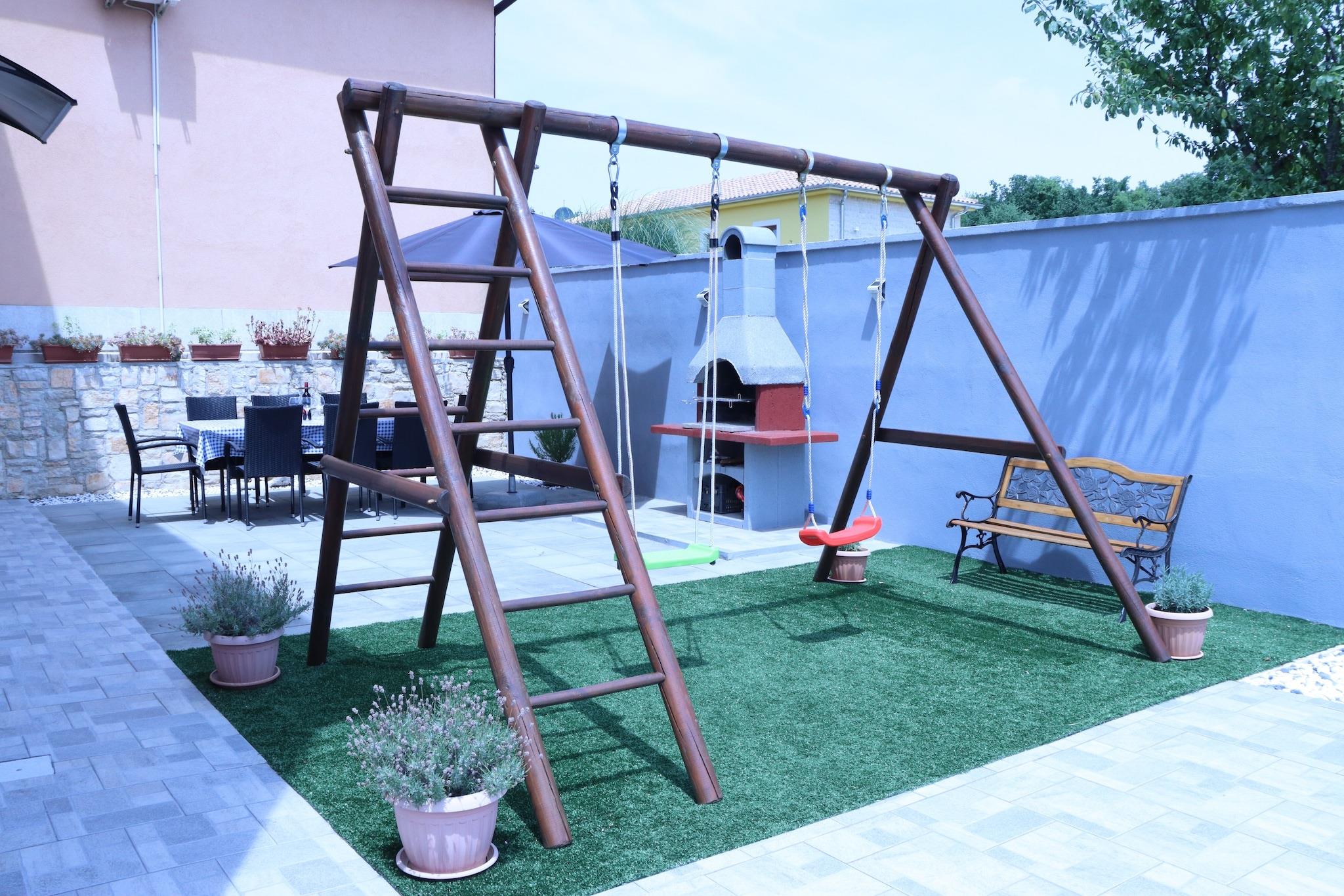 Dette feriehus til otte gæster tilbyder en afslappende ferie i Smoljanci, kun 100 meter fra byens centrum og 20 km fra havet. Dette feriested er designet til komfort og bekvemmelighed og tilbyder gratis WiFi, en privat swimmingpool og en trækulsgrill på terrassen, hvilket gør det ideelt for familier eller grupper. Uanset om du nyder de fredelige omgivelser eller udforsker nærliggende attraktioner, garanterer dette hjem et mindeværdigt ophold. Indenfor byder stueetagen på en rummelig stue og spisestue med en dobbelt sovesofa, TV og høj stol, samt et fuldt udstyret åbent køkken med kogende vandhane, komfur, kaffemaskine, mikrobølgeovn, opvaskemaskine og køleskab med fryser. Første sal indeholder tre soveværelser med dobbeltsenge og et badeværelse med bruser, håndvask og toilet, mens et ekstra badeværelse i stueetagen tilbyder ekstra bekvemmelighed med en vaskemaskine. Gæsterne kan slappe af i den private have med havemøbler og en gynge, perfekt til afslapning. I nærheden byder Dvigrad på fascinerende middelalderruiner, mens den middelalderlige temapark Sanc. Michael tilbyder interaktive historiske oplevelser. Til spisning serverer Villa Lav lækre lokale retter i charmerende omgivelser. Uanset om du udforsker historie eller nyder autentiske smagsoplevelser, er dette feriehus det perfekte tilflugtssted.