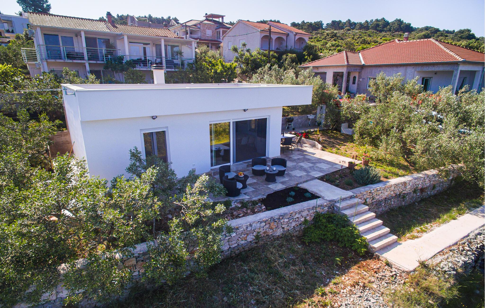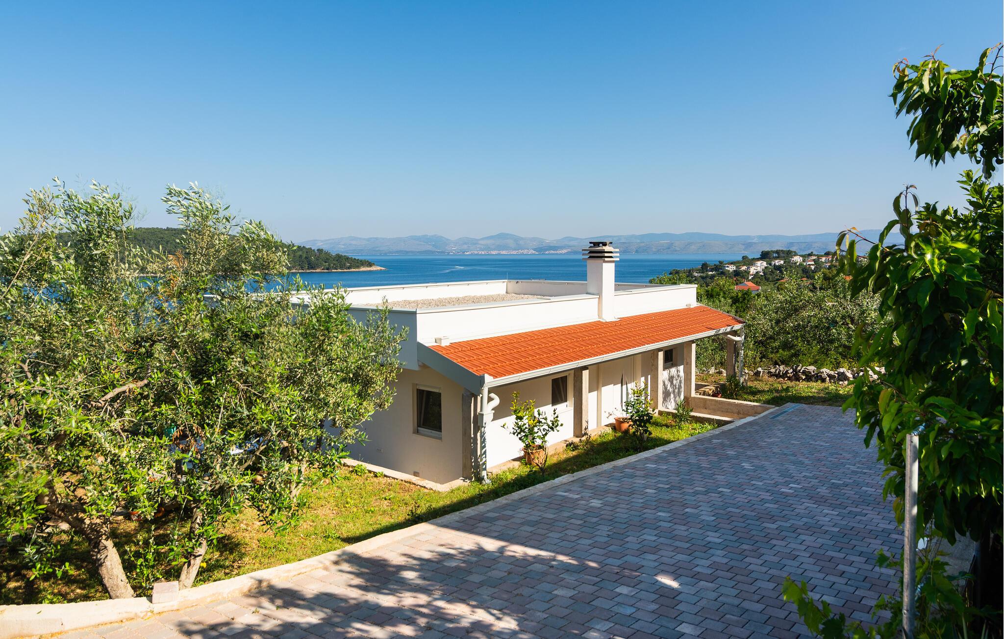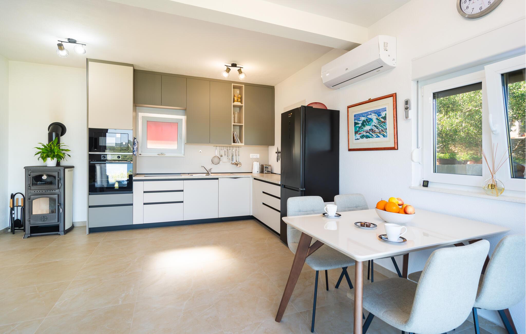 I dette hus er uforglemmelige dage garanteret. Lyse rum, tidløs indretning og den vidtstrakte udsigt over havet og det bakkede landskab skaber den perfekte feriestemning. Se jeres yndlingsserie i den komfortable sofa eller lyt til en spændende podcast, før I tilbereder et lækkert måltid i det moderne køkken og skåler med et glas kroatisk vin.