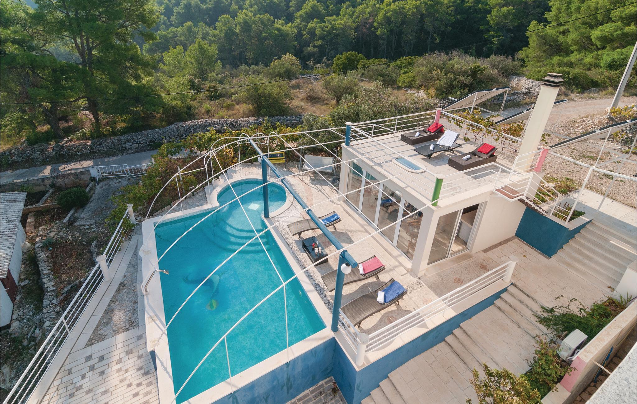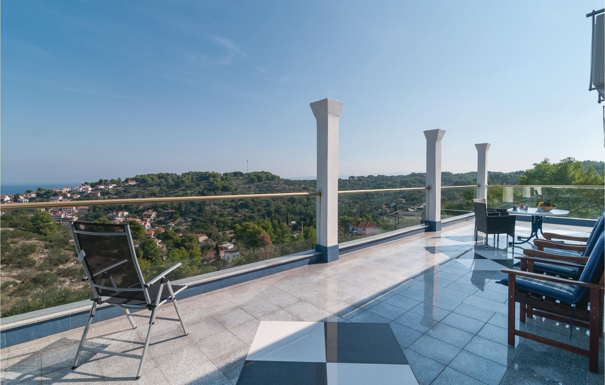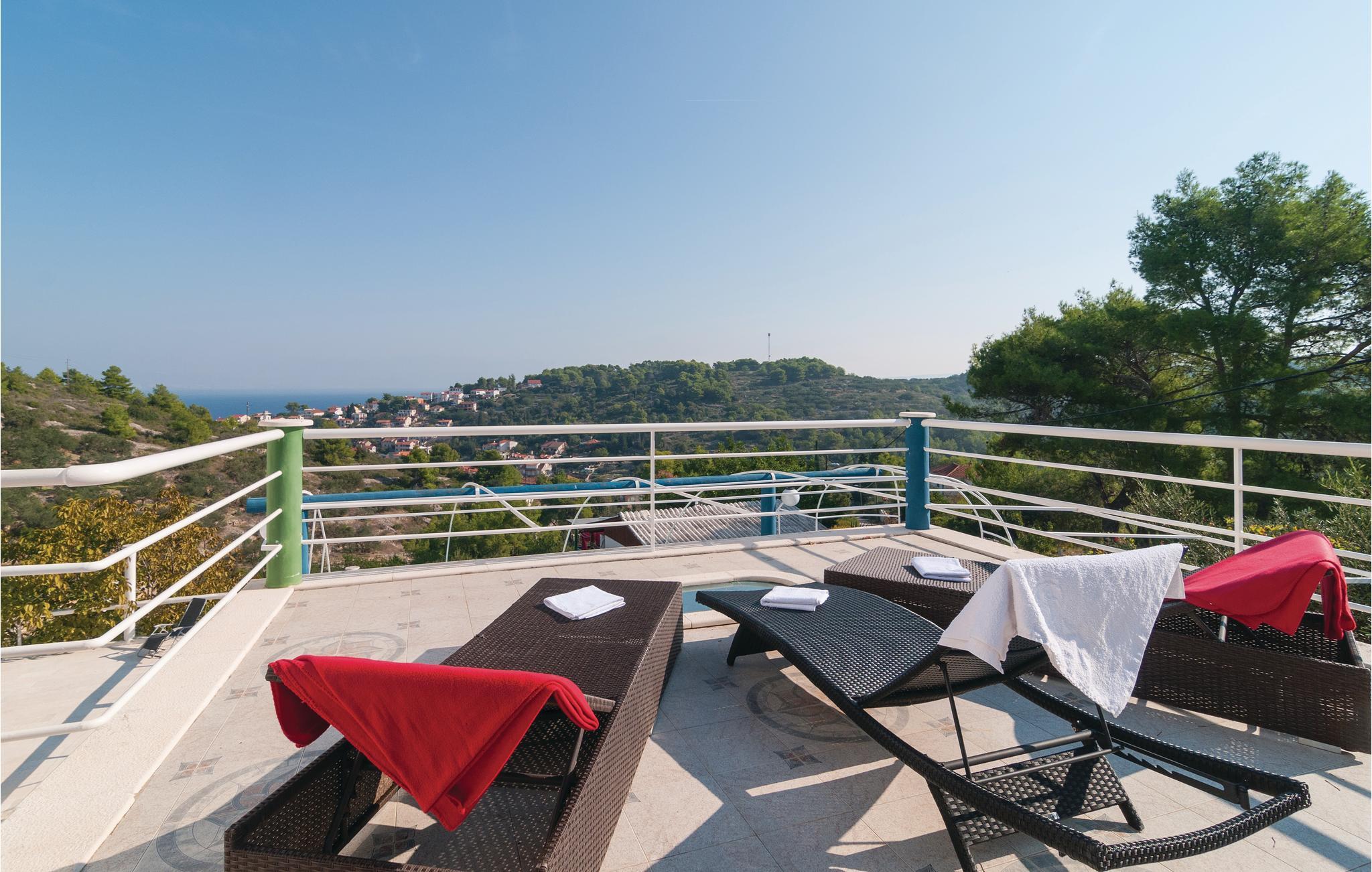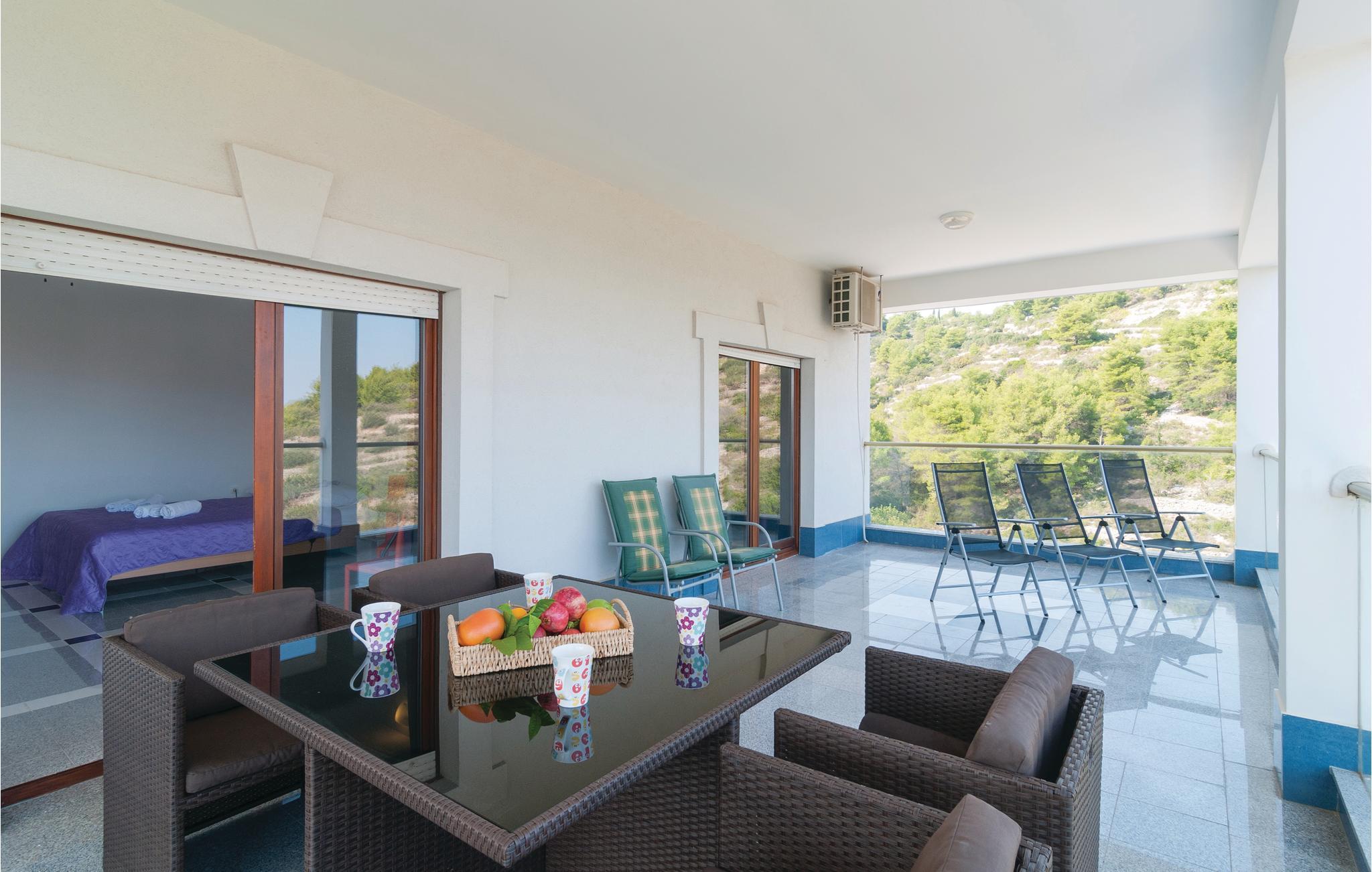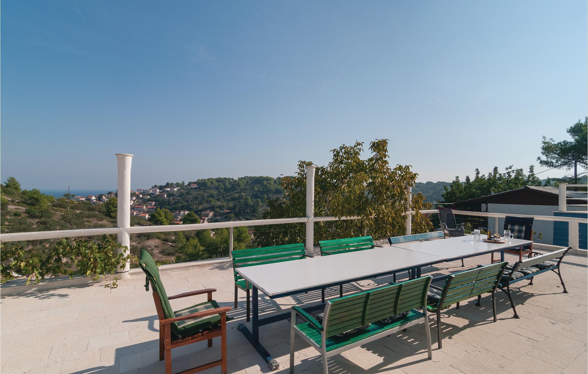 Dette komfortable feriehus, omgivet af en dejlig natur, ligger i byen Stomorska på øen Sola, kun et minut i bil, fra de nærmeste strande. Huset strækker sig over tre tager og rummer fem lejligheder. Fra den store terrasse er der udsigt over omgivelserne og havet. Poolen, whirlpoolen og saunaen er dejlig luksus som byder både på forfriskning og afslapning. Ud over legetøj til familiens små, er her også bordfodbold og bordtennis. På grillen kan I lave nem og lækker mad til alle. På grunden er der også et vinbjerg og i nærheden af huset er der en tennisbane. På grund af de gode færgeforbindelser er det nemt at tage på udflugt til den historiske by Split.