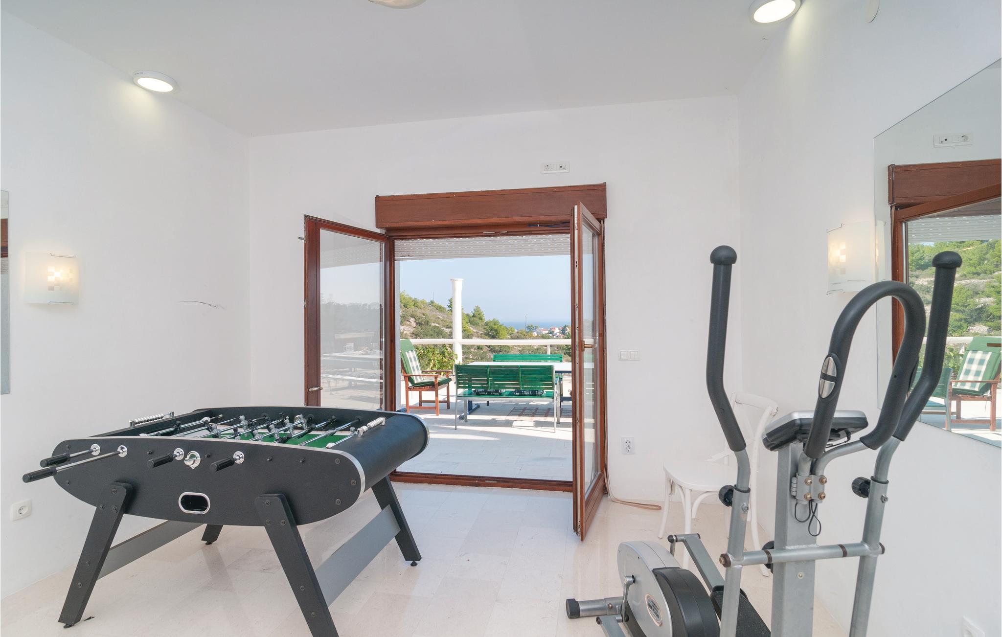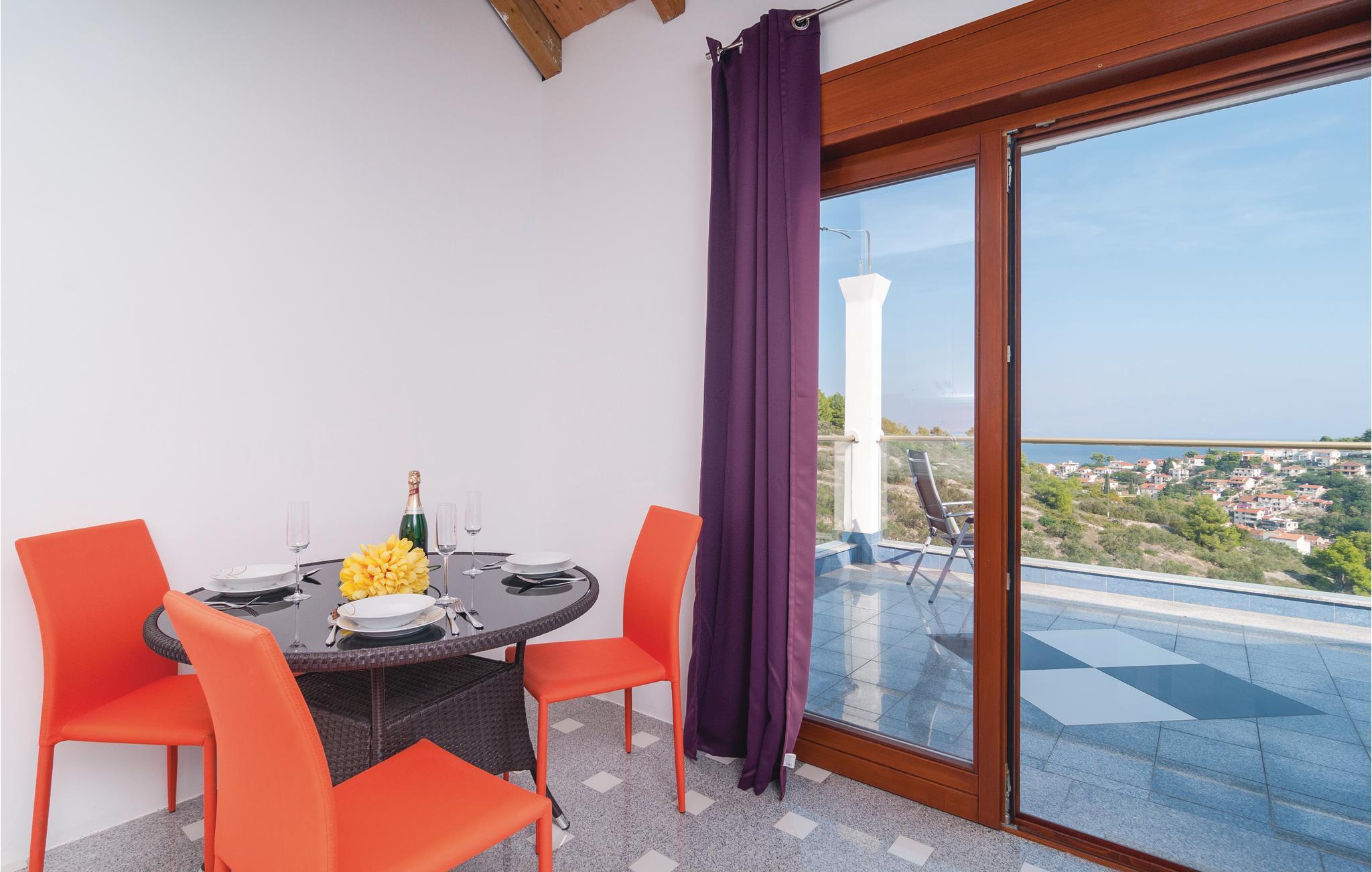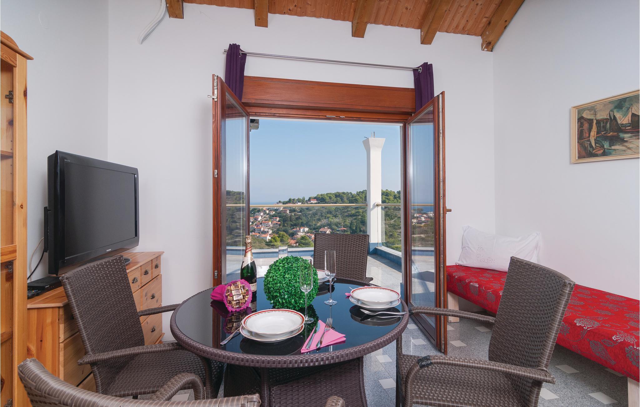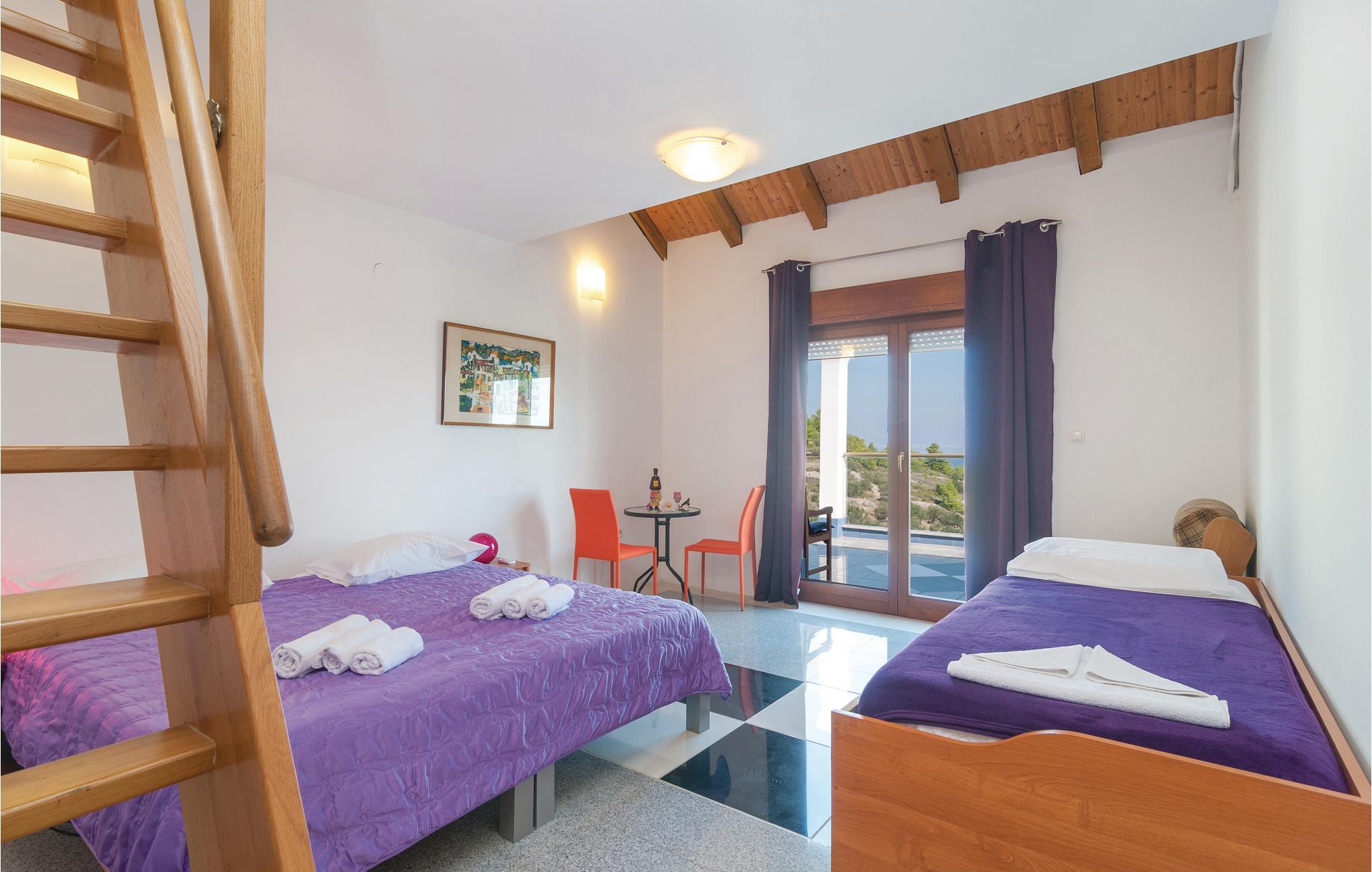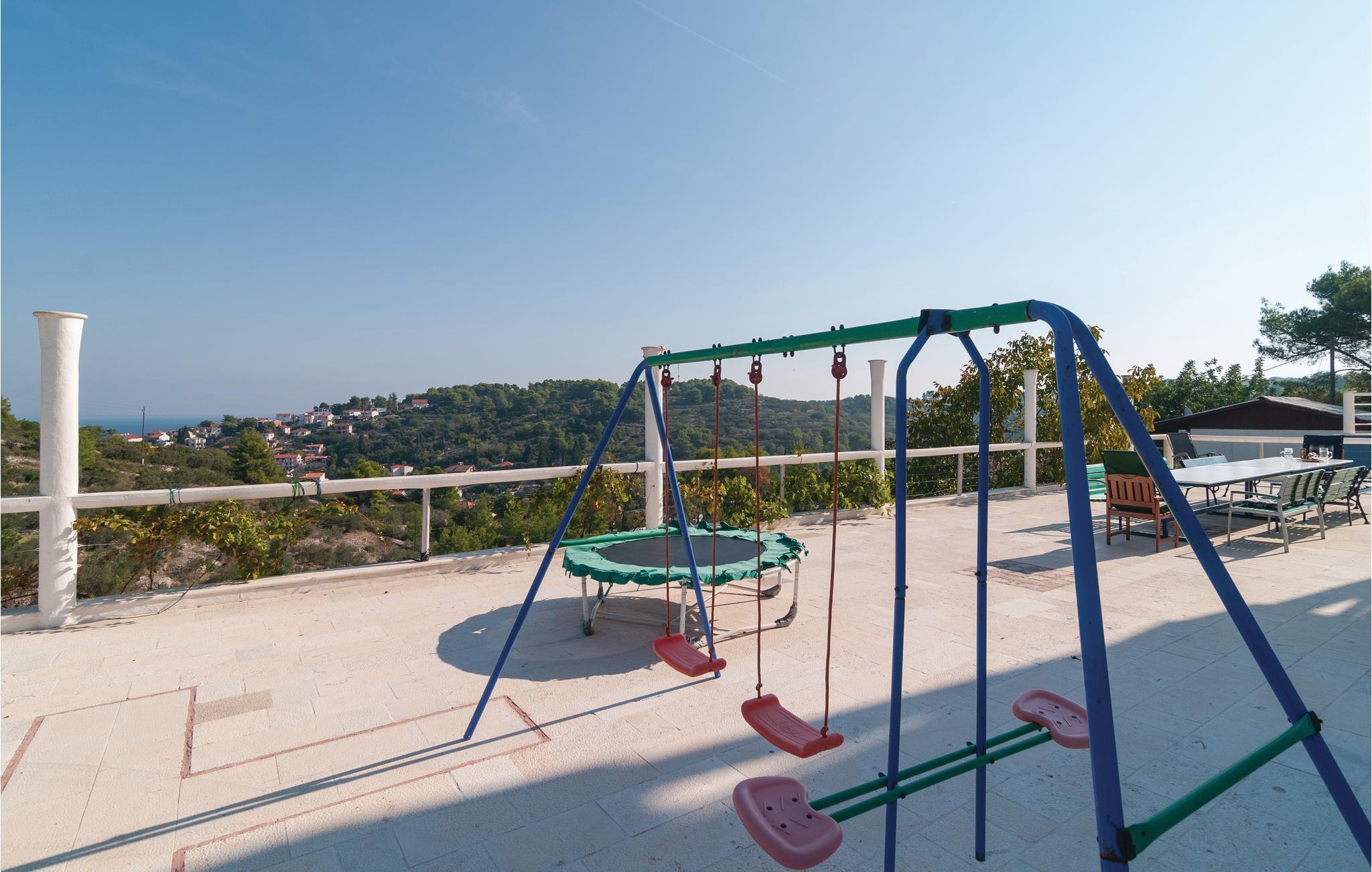 Dette komfortable feriehus, omgivet af en dejlig natur, ligger i byen Stomorska på øen Sola, kun et minut i bil, fra de nærmeste strande. Huset strækker sig over tre tager og rummer fem lejligheder. Fra den store terrasse er der udsigt over omgivelserne og havet. Poolen, whirlpoolen og saunaen er dejlig luksus som byder både på forfriskning og afslapning. Ud over legetøj til familiens små, er her også bordfodbold og bordtennis. På grillen kan I lave nem og lækker mad til alle. På grunden er der også et vinbjerg og i nærheden af huset er der en tennisbane. På grund af de gode færgeforbindelser er det nemt at tage på udflugt til den historiske by Split.