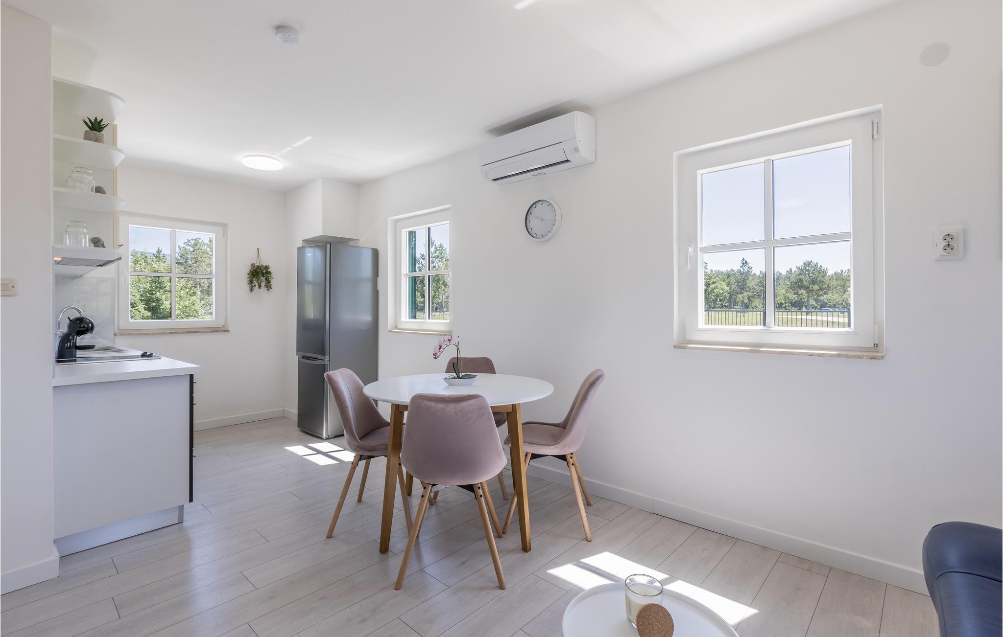 I en attraktiv beliggenhed omgivet af natur byder det tiltalende hus velkommen, hvilket er ideelt til en ferie med børn. Lyse lokaler, komfortable faciliteter og moderne møbler danner rammen om en vellykket pause. Her kan I slappe af i en attraktiv atmosfære, nyde et ophold i den infrarøde sauna, spise sammen ved det store spisebord og efter en begivenhedsrig dag finde jer godt tilpas og snakke komfortabelt i lang tid.