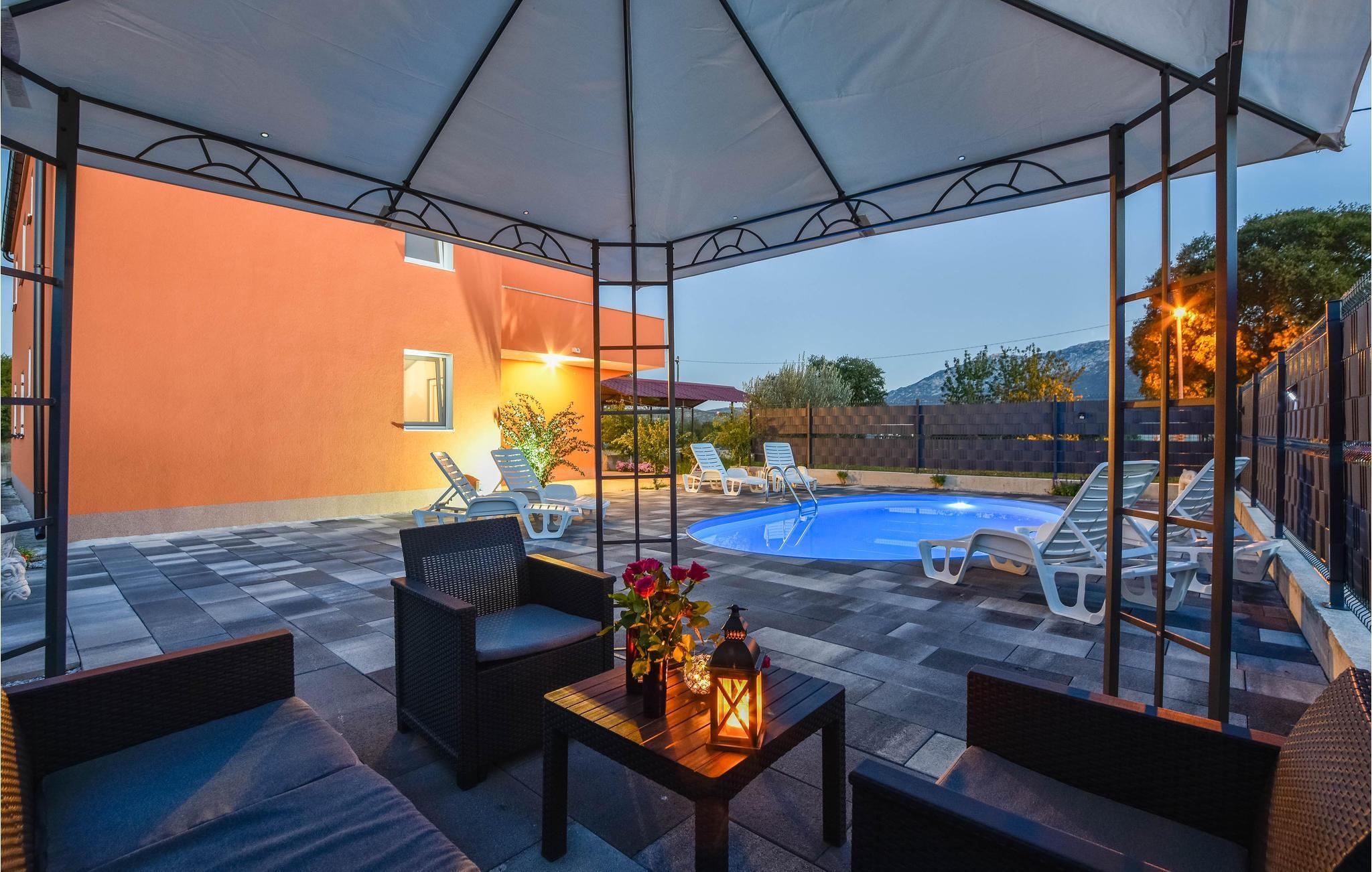 Tilbring en vidunderlig tid sammen i husets lyse atmosfære og hyggeligt møblerede rum. Fra stuen er der desuden adgang til den rummelige terrasse med grill og havemøbler, hvor I kan tilberede jeres yndlingsretter og nyde solens stråler hver dag. I kan også tage en forfriskende dukkert i den udendørs pool og bagefter tørre jer i solen på liggestolene.