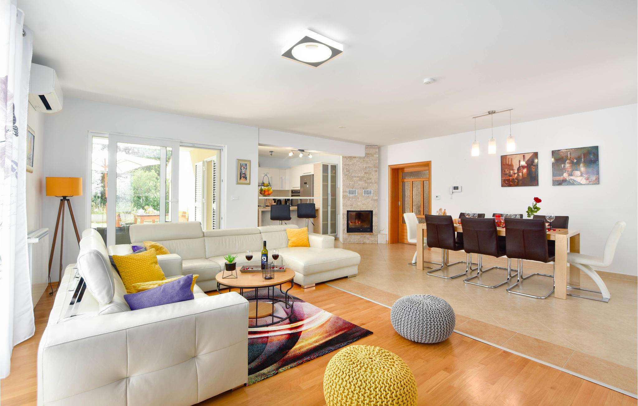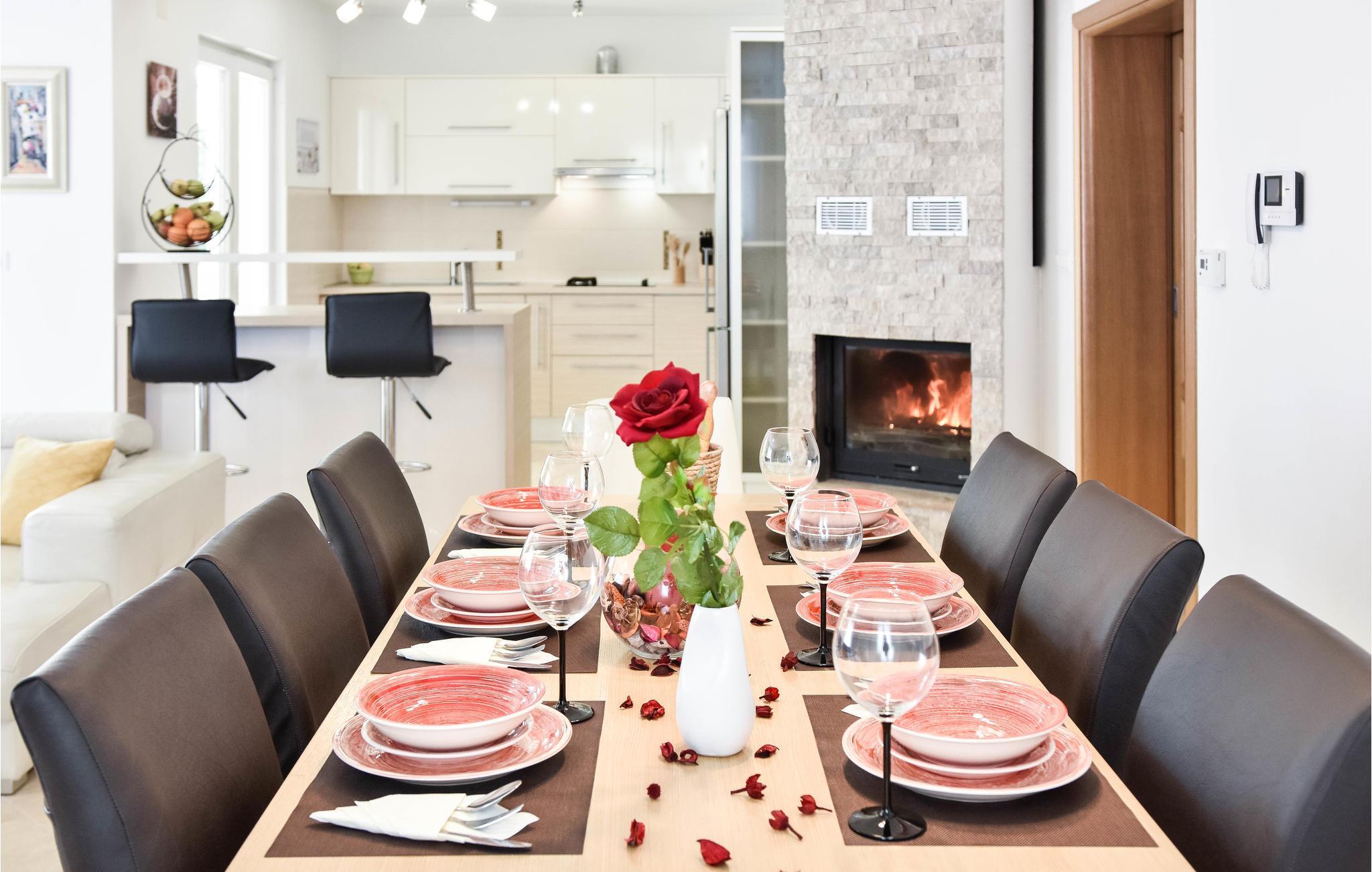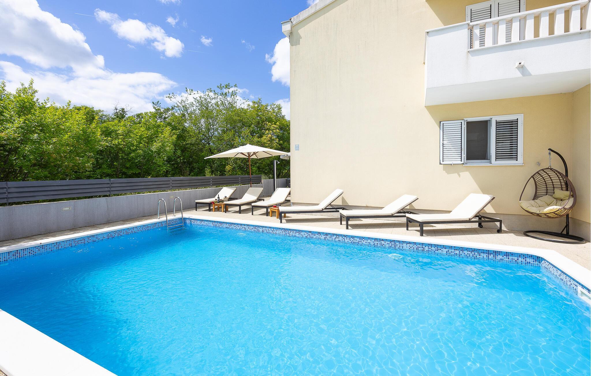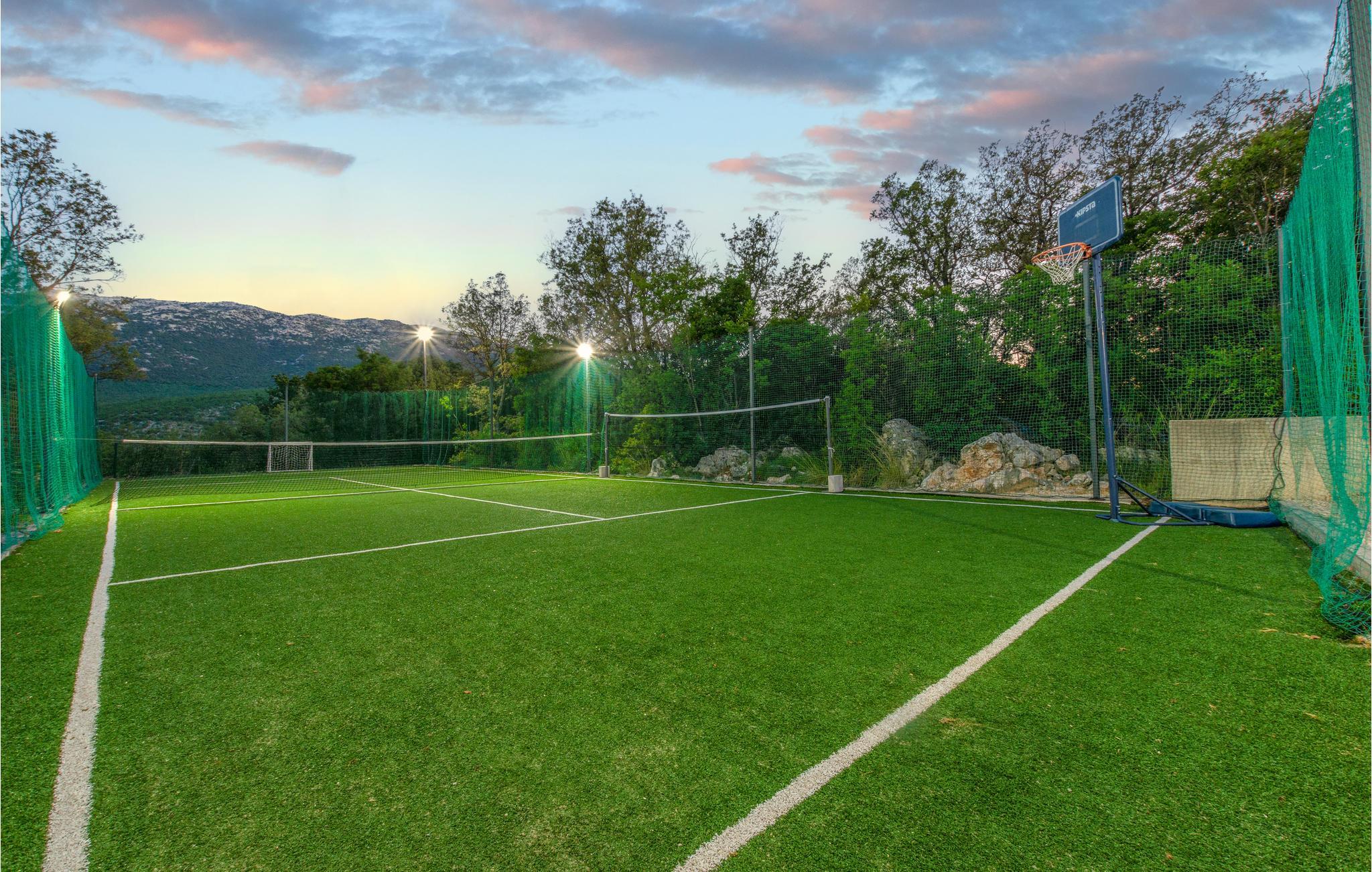 Hold en behagelig ferie i dette skønne og moderne indrettede feriehus. Huset strækker sig over to etager der er forbundet med en indre trappe. I stueplan ligger det veludstyrede køkken der er åbent mod køkkenet, et soveværelse, badeværelse og et fritidsrum, men der på øverste etage er tre soveværelser, det ene med badeværelse en suite, et aktivitetsrum og yderligere et badeværelse. Glæd jer til en privat pool, hvor I kan svømme lige når I har lyst, på de lange varme sommerdage. Prøv en svømmetur under stjernerne og fuldmånen – en ganske særlig oplevelse.