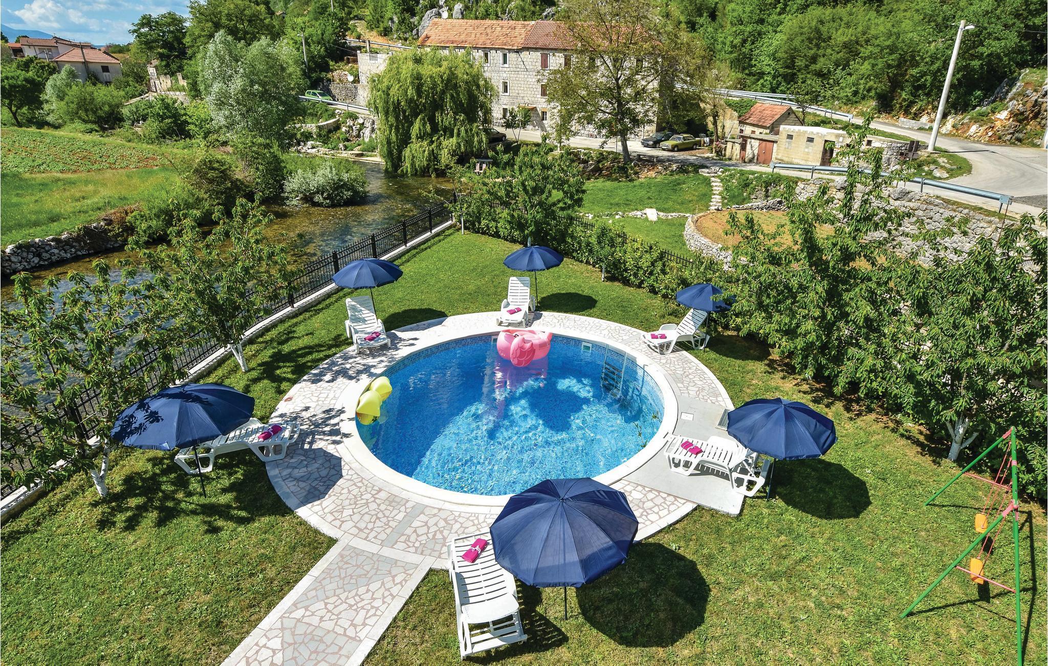 Omgivet af herlig og uberørt natur, direkte ved floden Ruda, ligger dette feriehus med pool. Huset er fordelt på tre etager med udendørs trapper. I kælderen ligger en autentisk taverne. I stueetagen og på 1. sal er der to separate boliger. I havet ved siden af poolen har I et udekøkken med grill til rådighed. Der ligger også en gammel vandmølle i nærheden, som ejes af husejeren og hvor der kan produceres mel efter på traditionel vis. Byen Grab er kendt for melproduktion. Til en aktiv ferie anbefaler vi cukel- og vandreruter samt paragliding og faldskærmsudspring.