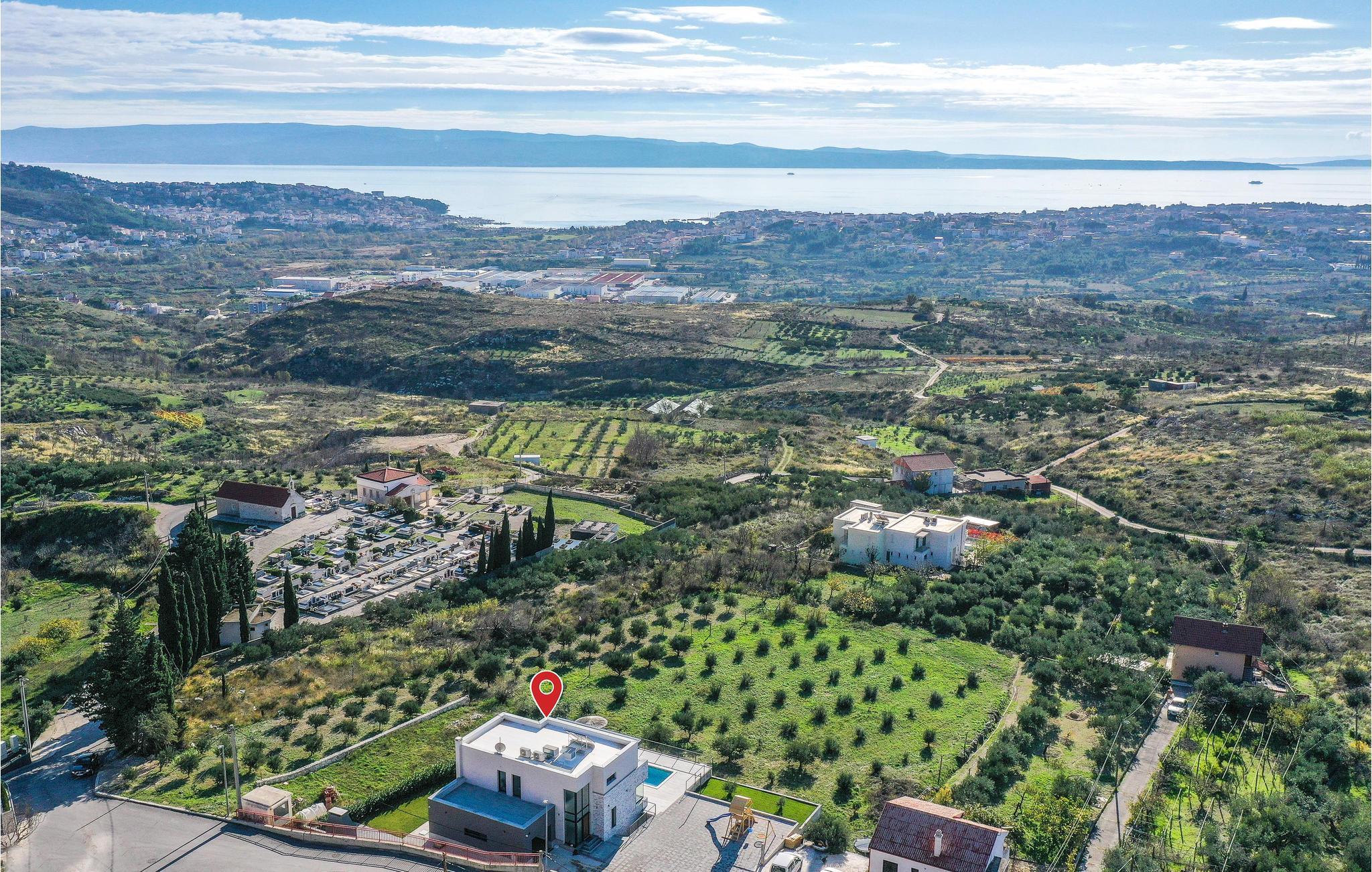 Dette moderne indrettede feriehus, ligger på en skrænt og herfra kan i nyde en panoramaudsigt over byen Split og Adriaterhavets mange små øer. Ud over de funktionelt indrettede værelser i huset kan I glæde jer over en stor have med en opvarmet pool med modstrømsanlæg. Huset rummer flere gode aktivitetsmuligheder som de fleste nok vil sætte pris på. Her er grill, bordtennis, bordfodbold, dart og legetøj for børn så som Playstation, gynge, legehus og trampolin. Ingen kommer til at kede sig her. På få minutter når I endda frem til verdenskendte historiske lokaliteter som Salona og Split, som begge rummer spændende bygningsværker og ruiner fra den romerske fortid.