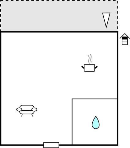 Opholdsstue/køkken 22m2 - 2 Sovepladser. (Dobbeltseng(e)). 2 Sovepladser. (Sofa, madras eller lignende).