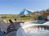 Feriehuset strækker sig over to etager og tilbyder plads i tre soveværelser, tre badeværelser og en stue med køkken. Haven har et spa, hvor I kan slappe af efter en aktiv feriedag. I kan også nyde dejlige stunder på en af ??terrasserne, mens I soler eller spiser lækre måltider sammen.