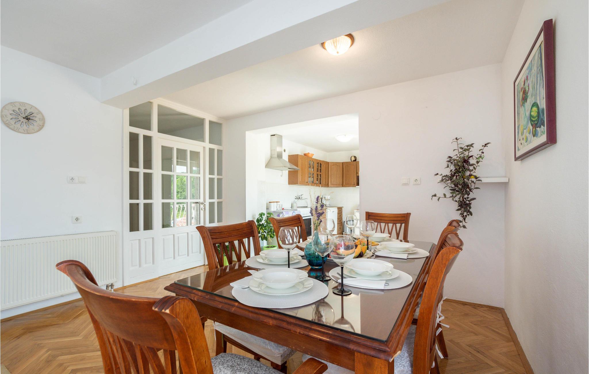 Dette domicil har et hyggeligt interiør, udstyret med alt, hvad I behøver til en ferie i Kroatien. Udendørs har I adgang til en altan, hvor I kan fange solens første stråler, en terrasse med liggestole og en pool til at slappe af.