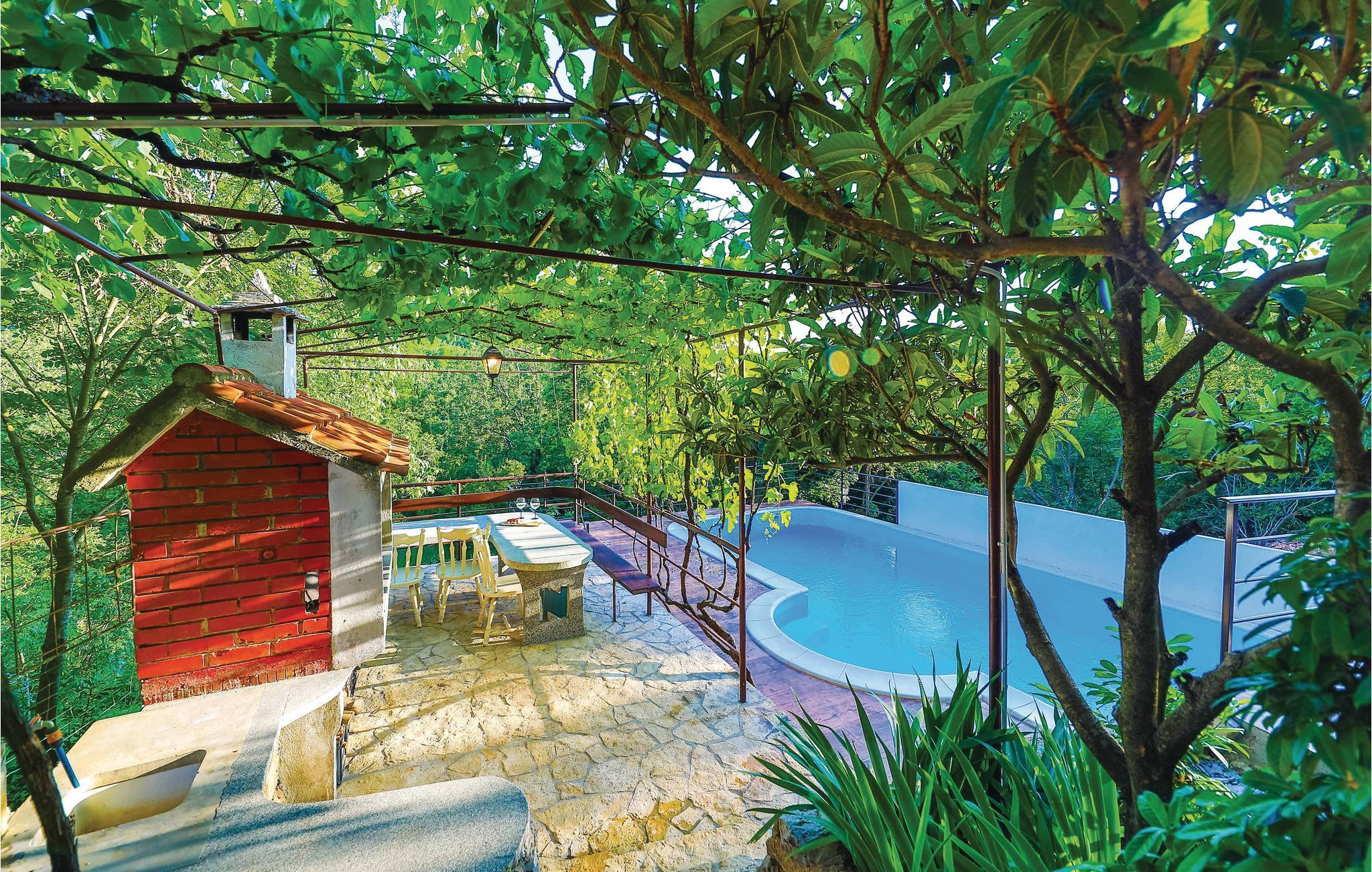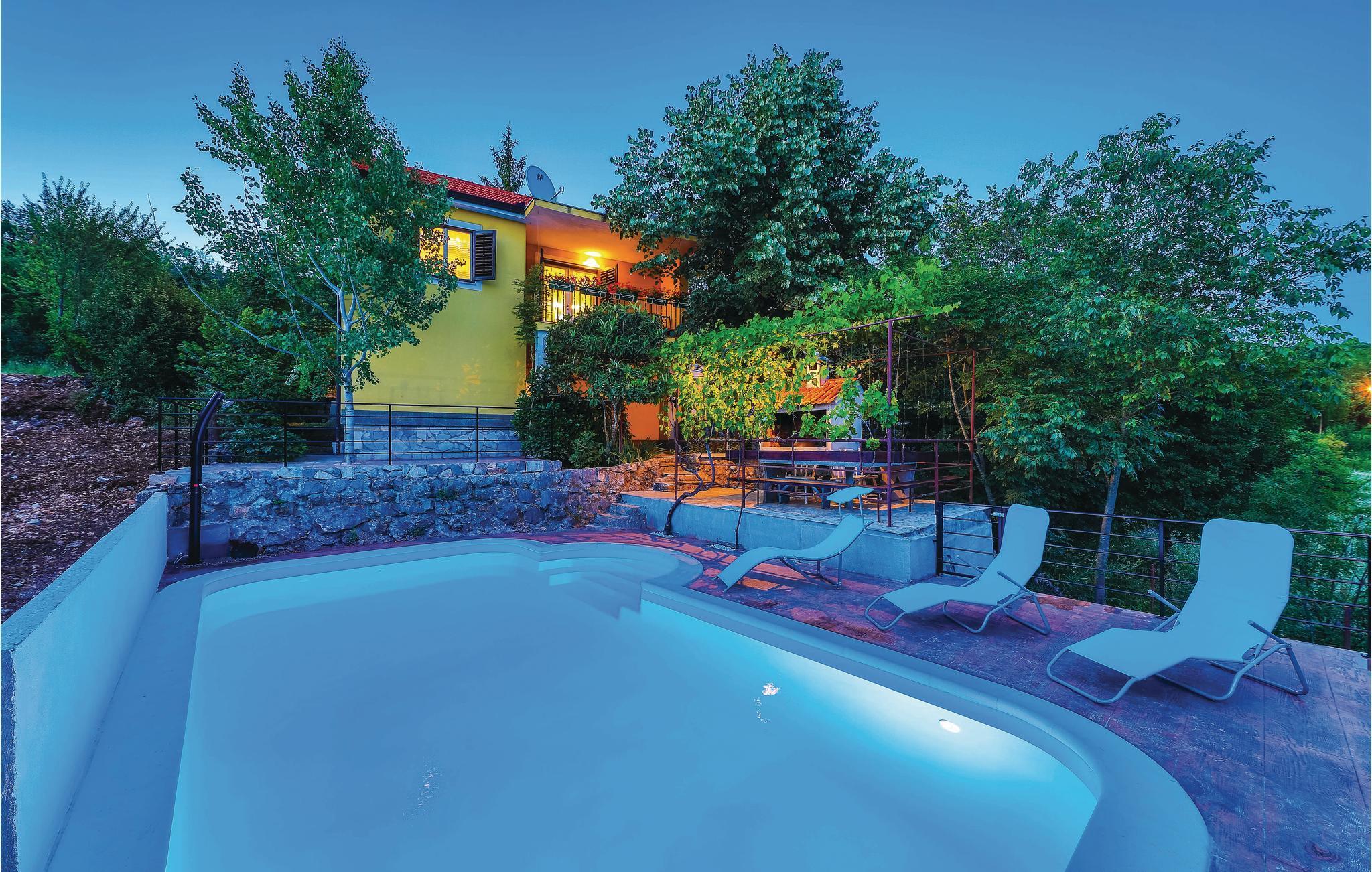 I det dalmatiske bagland, i smukke naturomgivelser, ligger dette feriehus med privat pool. Skønt og praktisk indrettet, velegnet til en behagelig og oplevelsesrig ferie, hvor I også kan tage jeres husdyr med. Huset er fordelt på kælder og stueplan, der er forbundet med en udendørs trappe. I stueplan er der et køkken med spisestue, et badeværelse og to soveværelser. I underetagen er det en stue og et fitnessrum. Huset ligger på en komplet indhegnet grund. Fra huset kan I glæde jer til en betagende udsigt over bjergene i horisonten.