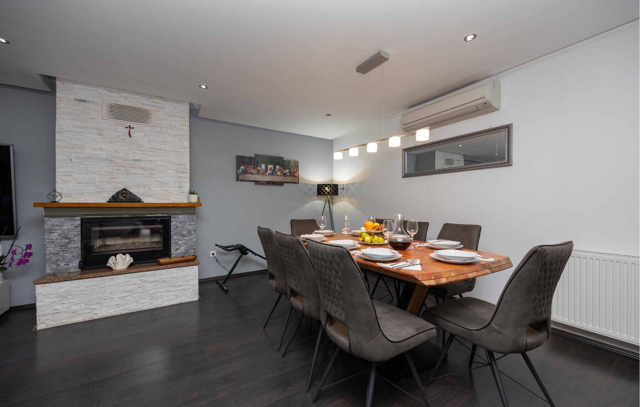 Bo i landlige omgivelser, nær floden Cetina i dette komfortable feriehus med helt egen pool. Husets indre er både smukt og afstemt indrettet med udstyr af god kvalitet. Her vil I føle jer hjemme fra første øjeblik. Den store terrasse ligger ud til de velplejede plæner, med den skønne pool. Huset er fordelt på to etager: i stueplan er der køkken i åben forbindelse med stuen og udgang til terrassen med grill og mini-udendørskøkken, mens soveværelser og det store bad med massagedyser ligger på første sal. Det tager kun ti minutter at gå til byens centrum. Her er der mange restauranter, hvor I bl.a. kan smage specialiteter som frøer og foreller. Tag til Cetinafloden og sus over vandet på zip-line, eller tag en udfordrende rafting-tur.