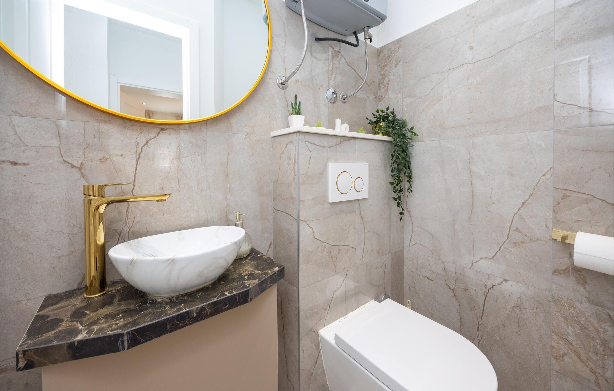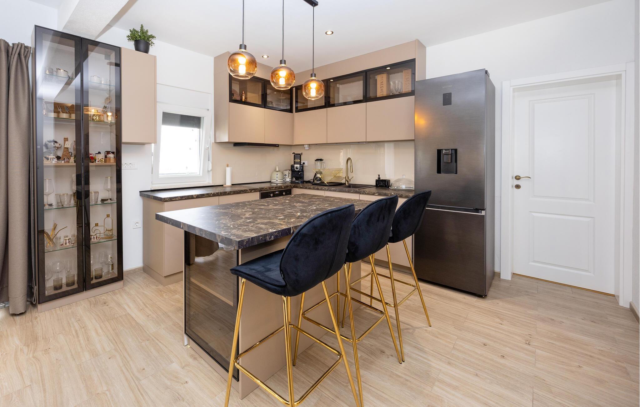 Denne charmerende lejlighed på første sal tilbyder alt, hvad I skal bruge for en afslappende familieferie. Den moderne indretning skaber en feel-good atmosfære, mens begge soveværelser har deres egne altaner med havemøbler, perfekt til afslappende stunder. Kombinationen af ??komfort og privatliv gør denne lejlighed til et ideelt tilflugtssted i Split.