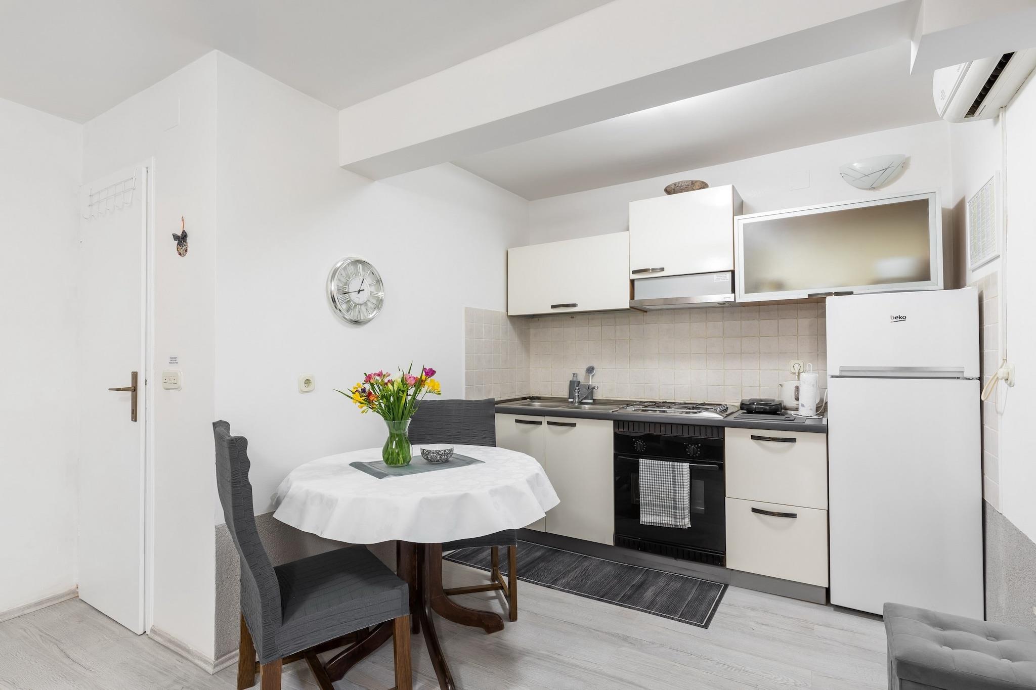Studio Toniko is located in the city of Split, famous for its great history and cultural heritage. Property has been renovated in 2023 and offers one self-catering accommodation. The apartment is situated in a beautiful, picturesque, old part of the city. Also, since the property is not located directly on the street, it offers more peace and quiet, but it is the modern at the same time. This apartment is located in the ancient part of the city in antique house on the ground floor with the small courtyard. Studio Toniko is fitted with an outdoor furniture as well as an shared garden are at your disposal. The nearest shop where you can buy the essentials is only 100 meters away from the accommodation. This lovely studio apartment is perfectly fit for up to two people. It features free WiFi, air conditioning as well as SAT LCD TV. The open space comes with bed and combined with the equipped kitchenette and dining area. The private bathroom comes with shower and toilet. Free toiletries (shampoo, soap and toilet paper), hair dryer as well as linens and towels are at your disposal. If you want to spend your vacation in a peaceful and quiet environment, far from the city crowds, and also to have nearby all you need during your holidays, Studio Toniko is the best choice for you. The nearest beach is 1,30 km away, while restaurant, café bar and market are 100 meters away. Split airport is 12 km away from Studio Toniko.
