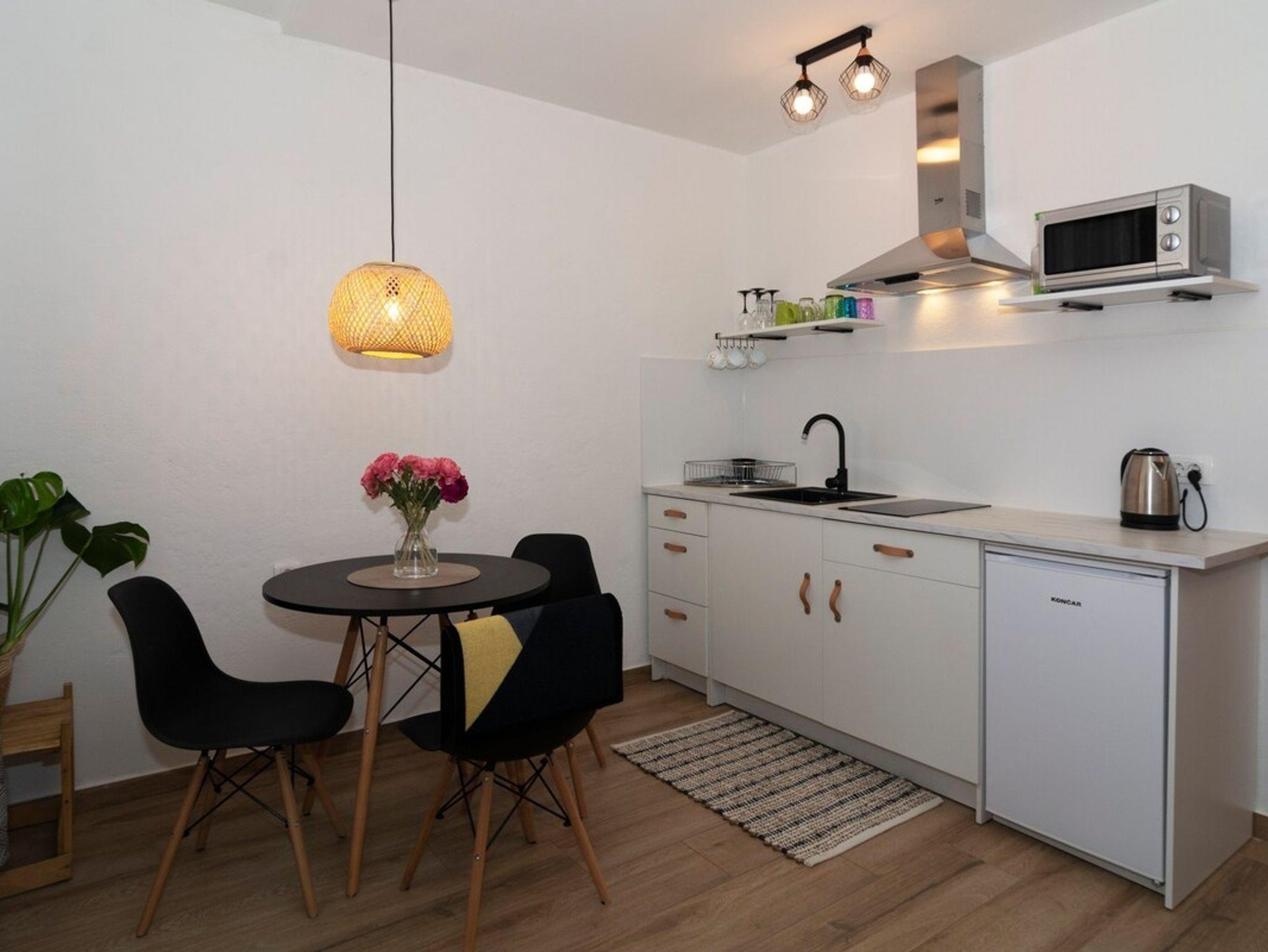 Studio bietet Platz für 2 Gäste. Die Betten sind in Schlafzimmern, die es 1 gibt, innerhalb einer Gesamtfläche von 23m2, angeordnet. Die Gäste haben eine eigene Terrasse zur Verfügung, auf der sie in warmen Sommernächten genießen können. Es ist erlaubt, Speisen auf dem Gemeinschafts-Grill vorzubereiten. IM PREIS INBEGRIFFEN: Kurtaxe, Endreinigung, Klimatisierung, Parkplatz, Internet. VERBINDLICHE ZUSÄTZLICHE KOSTEN: Aufzahlung für Kurzaufenthalte (prozentualer Zuschlag pro Nächtigungsanzahl: 30% - 1, 20% - 2, 10% - 3). Die Verfügbarkeit zusätzlicher Dienstleistungen in Ihrem reservierten Termin und die Preise derselben (falls nicht aufgeführt) müssen im Voraus überprüft werden. Zusätzliche Dienstleistungen die in der Zahlungsaufforderung nicht aufgeführt sind werden direkt beim Vermieter bezahlt, angenommen der Gast nutzt auch diese. Ermäßigung auf den Grundpreis: Gratistag 14=13 (bei einem Aufenthalt von 14 Tagen oder mehr erhalten Sie einen Gratistag für den Aufenthalt bis 31.12.26).