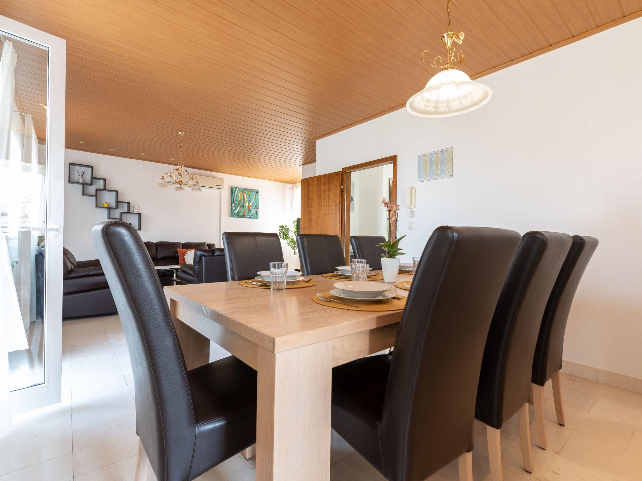 The lovingly maintained detached house made of natural stone has a large living and dining area on the ground floor with a sofa area and TV. There is also a fully equipped kitchen with a dishwasher, toaster, kettle and coffee machine. A dining area is also available here. There is also a separate WC on the ground floor. Upstairs there are two bedrooms, each with a double bed (1.80m x 2.00m) and a further bedroom with two single beds (0.90m x 2.00m). The bathroom on the upper floor is equipped with a shower and WC. All rooms as well as the living and dining area are air-conditioned. In the basement there is a bedroom, a kitchenette, a dining area and a bathroom. The basement can be reached via a staircase, but also has a separate entrance. It was renovated in 2014.
