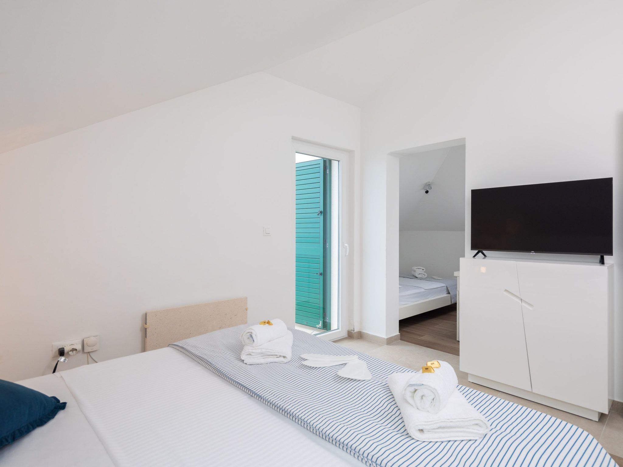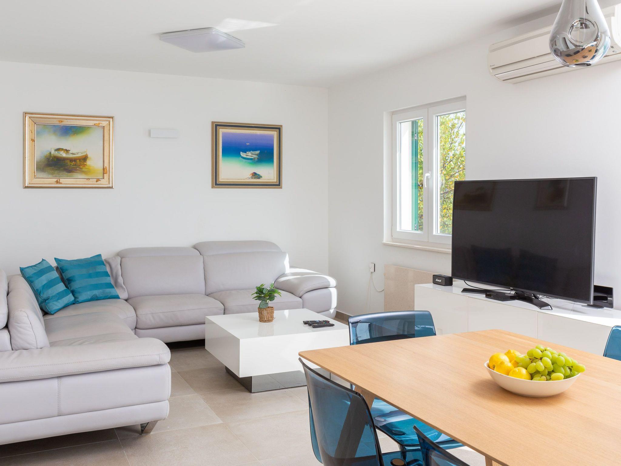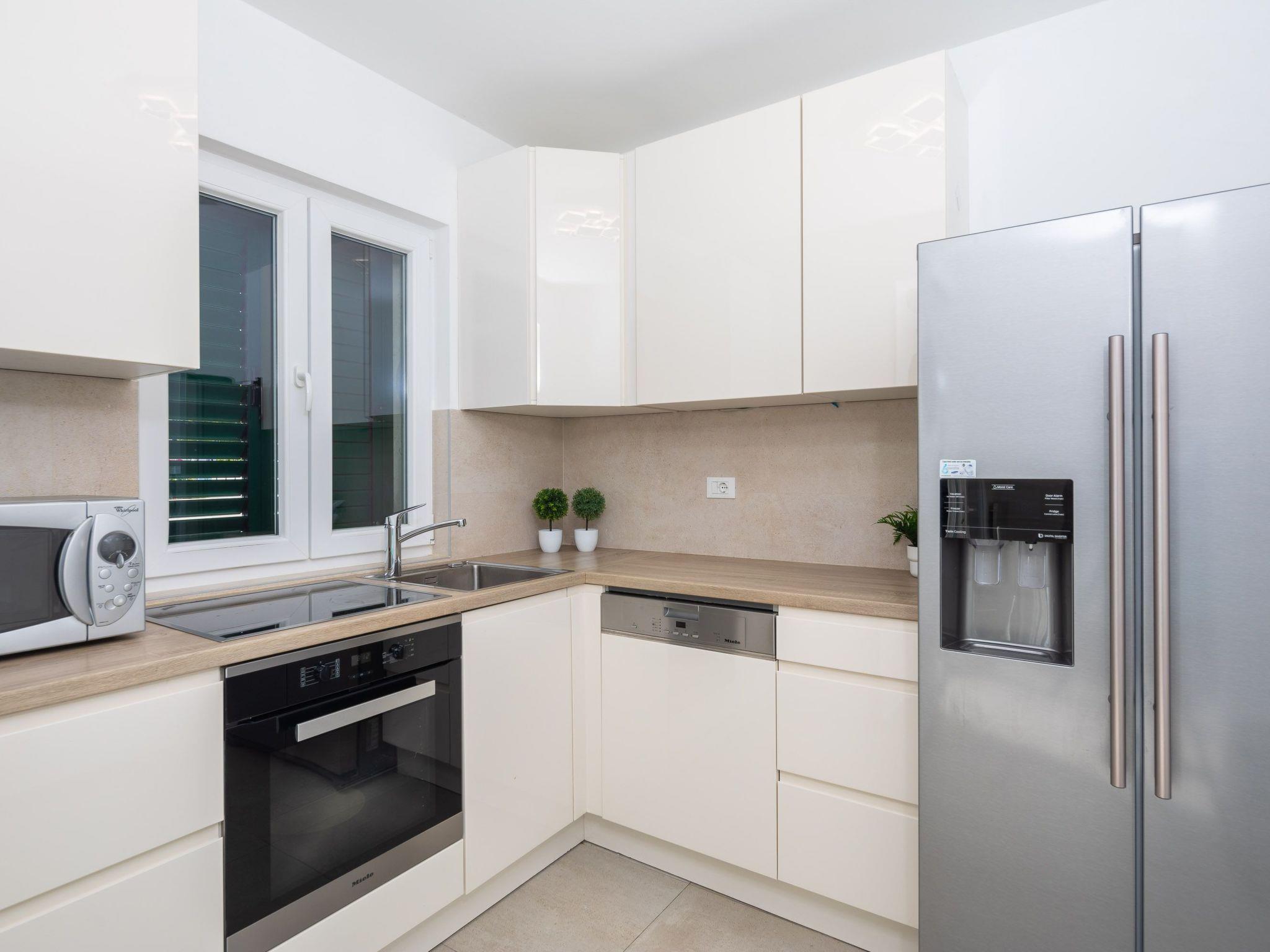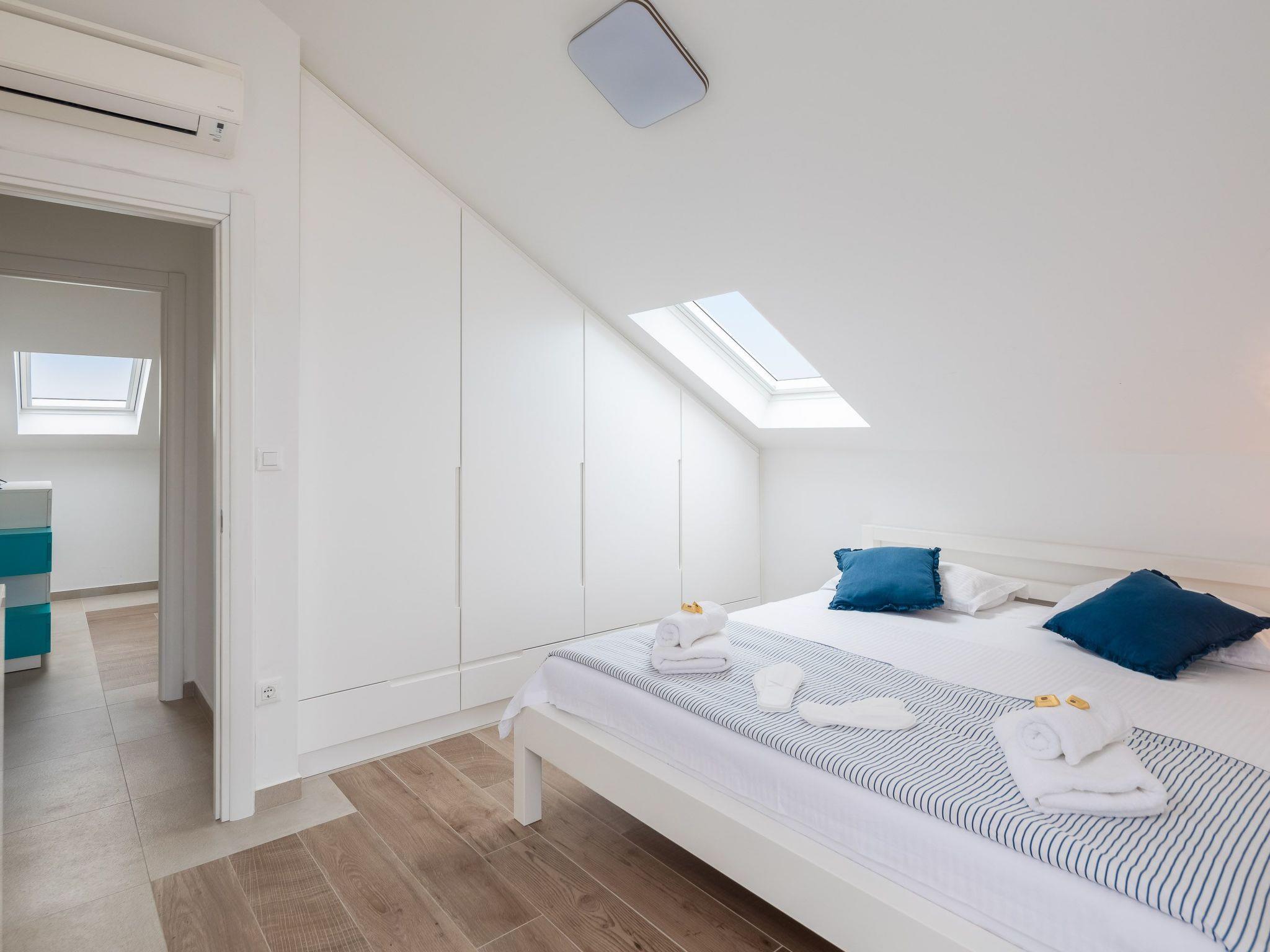 The property consists of 4 bedrooms, each with large double bed and all airconditioned. There is also an additional bedroom with Queen Size bed for children and there is a sofa bed in the Livingroom. The villa is intended for 10 people (maximum 8 adults). There are three bathrooms with shower, two washing machines and clothes dryer. The kitchen is fully equipped with dishes and cutlery, there is a refrigerator with freezing department, stove, oven, dishwasher, coffee maker and dining area.