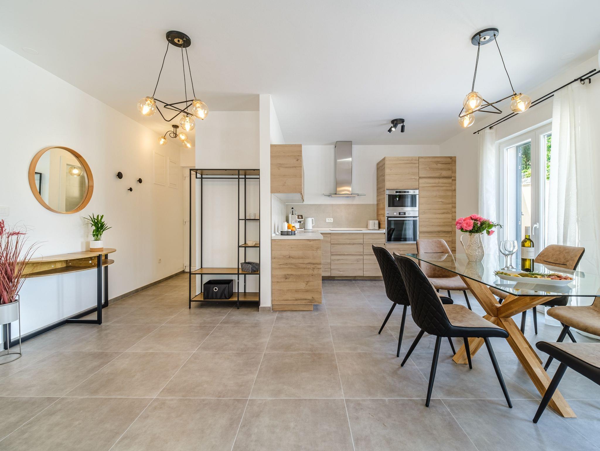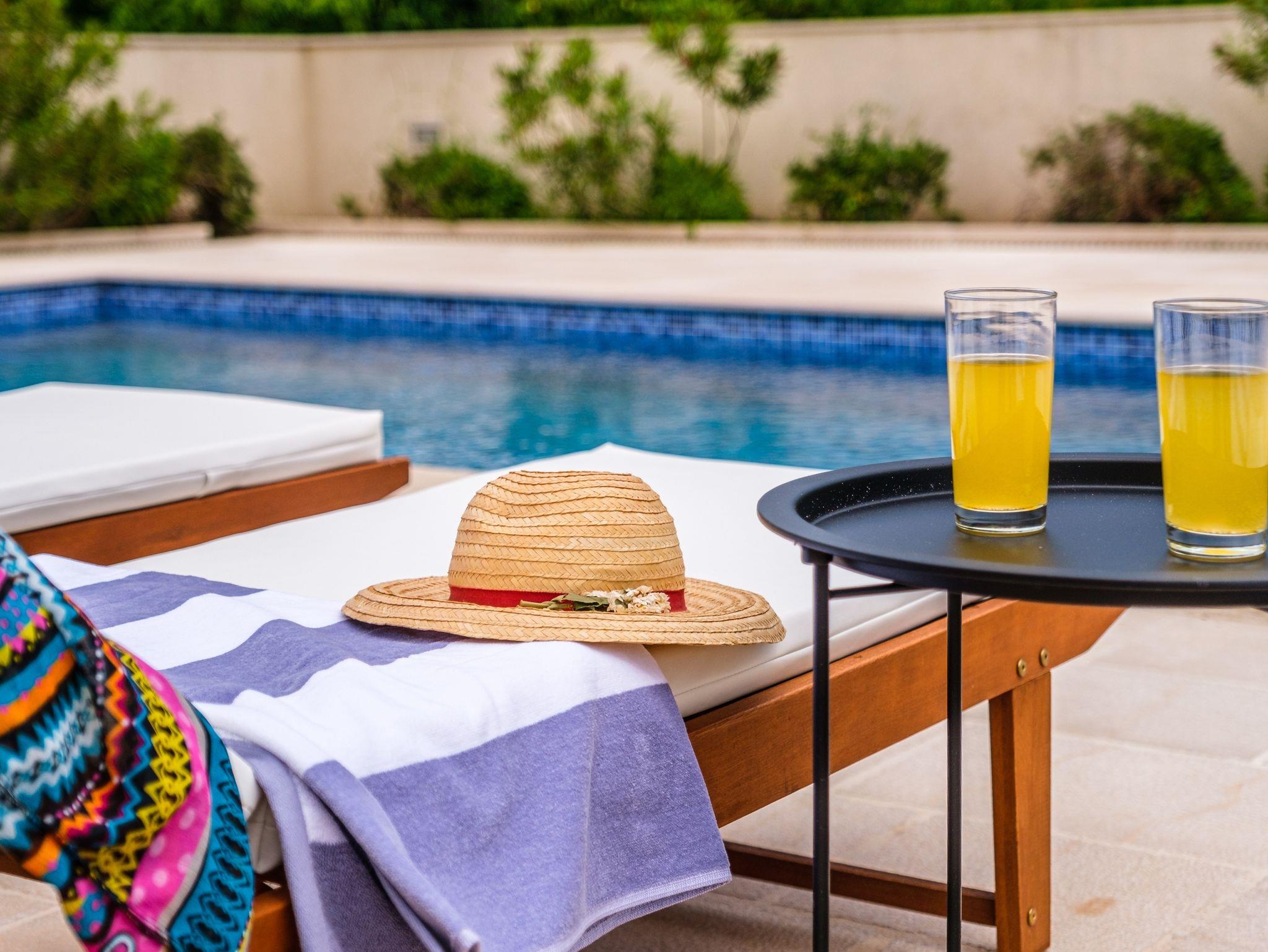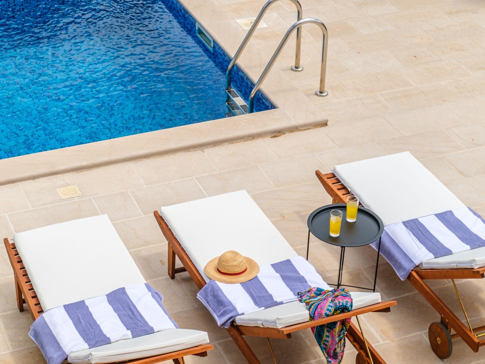 Haus bietet Platz für 16 Gäste. Die Betten sind in Schlafzimmern, die es 6 gibt, und in Wohnzimmer, innerhalb einer Gesamtfläche von 231m2, angeordnet. Die Gäste haben eine eigene Terrasse zur Verfügung, auf der sie in warmen Sommernächten genießen können. Das Haus bietet Meerblick. Für vollen Genuss und Entspannung gibt es einen privaten Grill für Gäste dieser Unterkunft. Während ihres Aufenthalts können sich Gäste im privaten Schwimmbad entspannen. In der Unterkunftseinheit besteht die Möglichkeit des Mitbringens von Haustieren gegen Aufpreis. Räume der gebuchten Unterkunftseinheit werden nicht in eine Ganze verbunden. In der gebuchten Unterkunftseinheit zahlt man am Ort ein Depositum ( der Preis ist an der Internetseite angeführt ). IM PREIS INBEGRIFFEN: Kurtaxe, Endreinigung, Klimatisierung, Pool, Parkplatz, Internet, Kinderbett, Bügeleisen, Bügelbrett, Föhn, Sonnenschirm, Liegestühle. VERBINDLICHE ZUSÄTZLICHE KOSTEN: Kaution (500,00 € Einmalzahlung), Aufzahlung für Kurzaufenthalte (prozentualer Zuschlag pro Nächtigungsanzahl: 30% - 1, 20% - 2, 10% - 3). UNVERBINDLICHE ZUSÄTZLICHE KOSTEN: Haustiere (20,00 € pro Nacht). Die Verfügbarkeit zusätzlicher Dienstleistungen in Ihrem reservierten Termin und die Preise derselben (falls nicht aufgeführt) müssen im Voraus überprüft werden. Zusätzliche Dienstleistungen die in der Zahlungsaufforderung nicht aufgeführt sind werden direkt beim Vermieter bezahlt, angenommen der Gast nutzt auch diese.
