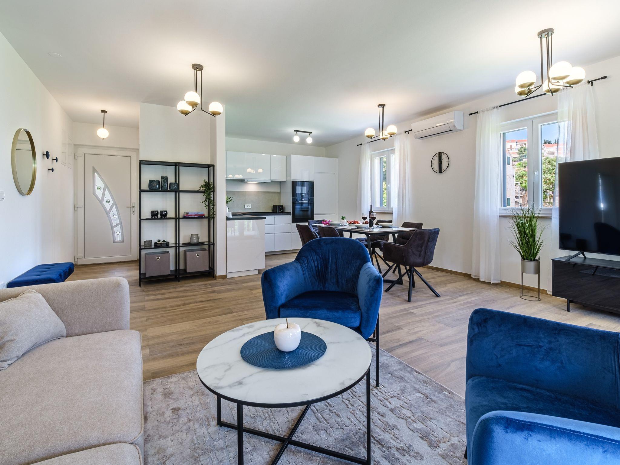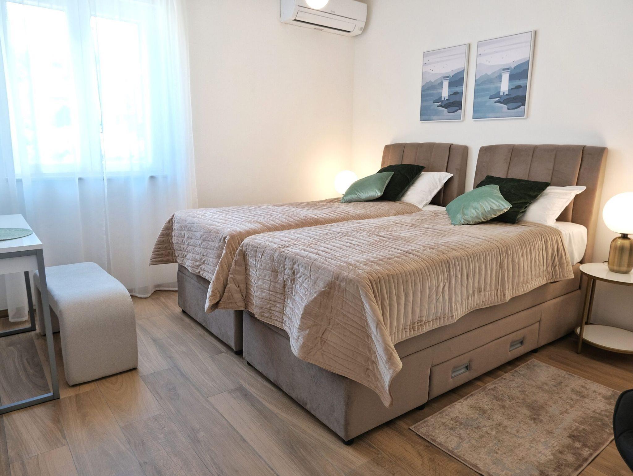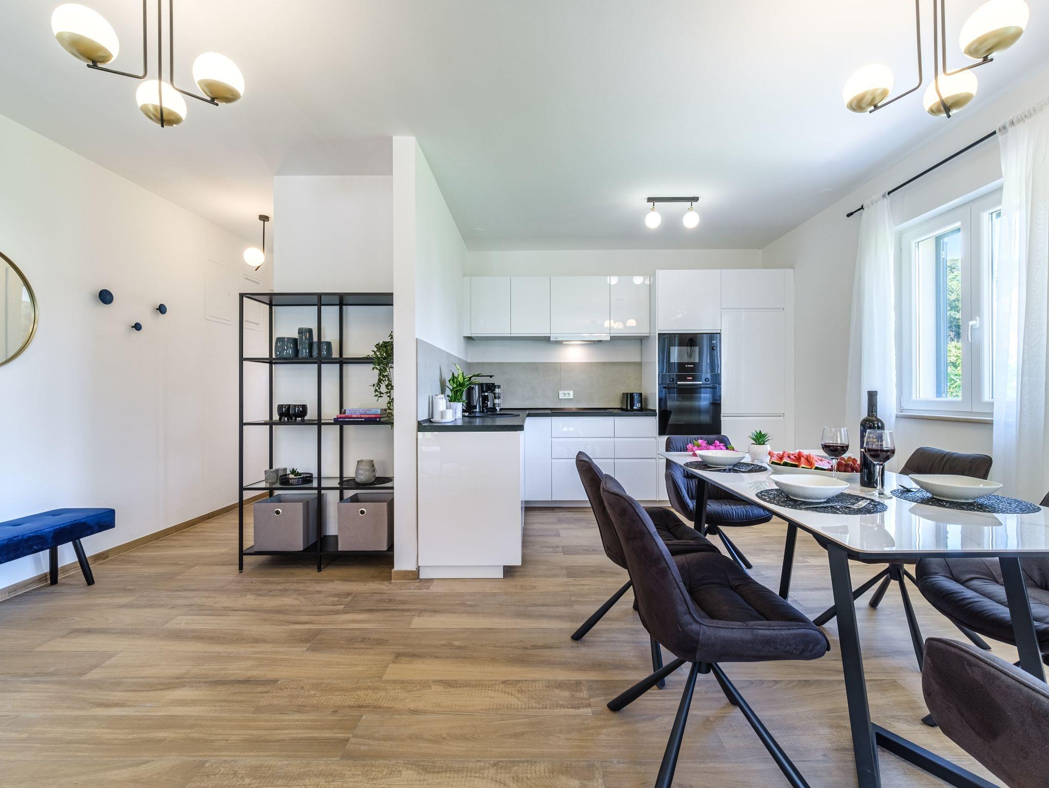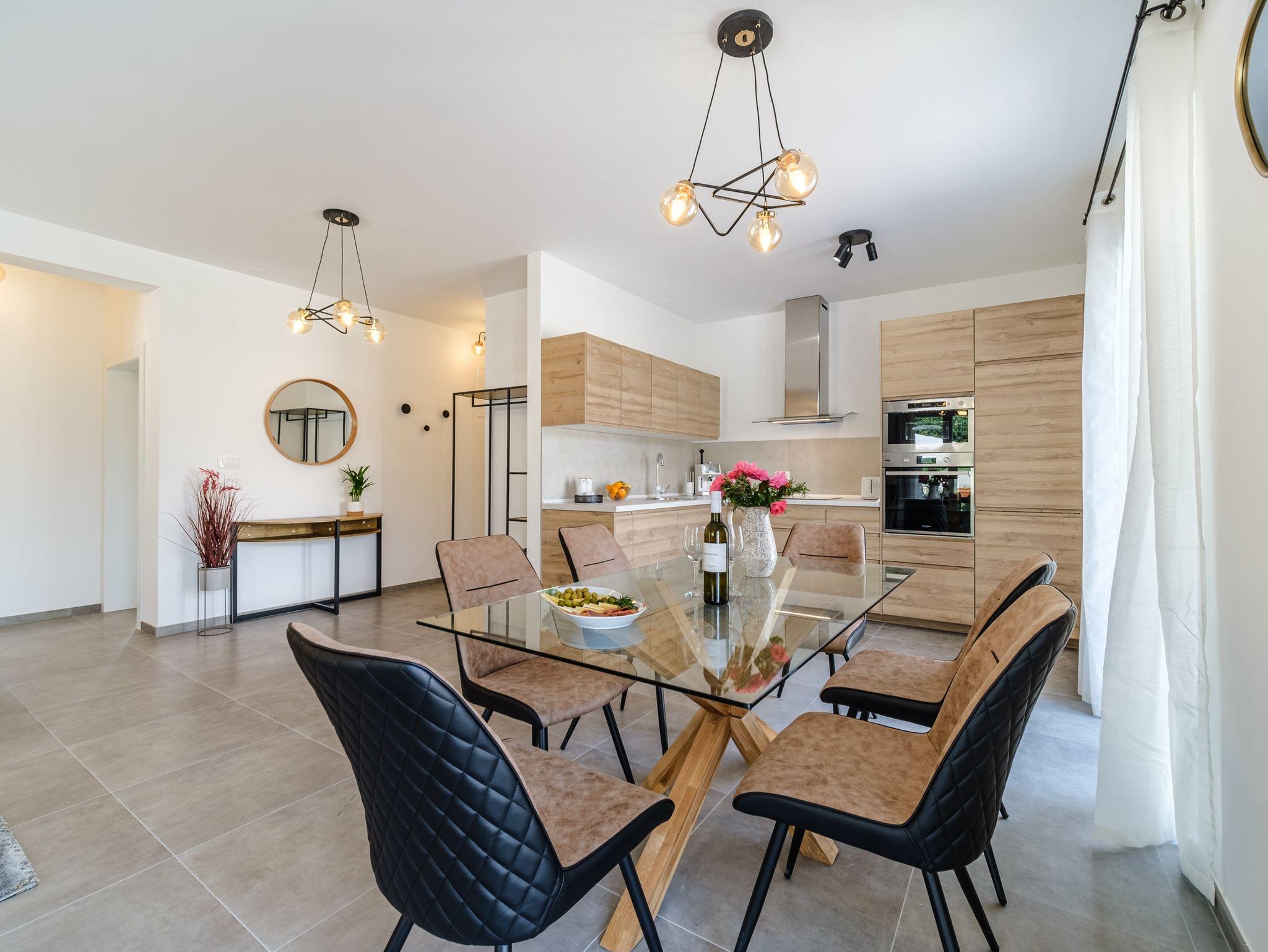 Haus bietet Platz für 16 Gäste. Die Betten sind in Schlafzimmern, die es 6 gibt, und in Wohnzimmer, innerhalb einer Gesamtfläche von 231m2, angeordnet. Die Gäste haben eine eigene Terrasse zur Verfügung, auf der sie in warmen Sommernächten genießen können. Das Haus bietet Meerblick. Für vollen Genuss und Entspannung gibt es einen privaten Grill für Gäste dieser Unterkunft. Während ihres Aufenthalts können sich Gäste im privaten Schwimmbad entspannen. In der Unterkunftseinheit besteht die Möglichkeit des Mitbringens von Haustieren gegen Aufpreis. Räume der gebuchten Unterkunftseinheit werden nicht in eine Ganze verbunden. In der gebuchten Unterkunftseinheit zahlt man am Ort ein Depositum ( der Preis ist an der Internetseite angeführt ). IM PREIS INBEGRIFFEN: Kurtaxe, Endreinigung, Klimatisierung, Pool, Parkplatz, Internet, Kinderbett, Bügeleisen, Bügelbrett, Föhn, Sonnenschirm, Liegestühle. VERBINDLICHE ZUSÄTZLICHE KOSTEN: Kaution (500,00 € Einmalzahlung), Aufzahlung für Kurzaufenthalte (prozentualer Zuschlag pro Nächtigungsanzahl: 30% - 1, 20% - 2, 10% - 3). UNVERBINDLICHE ZUSÄTZLICHE KOSTEN: Haustiere (20,00 € pro Nacht). Die Verfügbarkeit zusätzlicher Dienstleistungen in Ihrem reservierten Termin und die Preise derselben (falls nicht aufgeführt) müssen im Voraus überprüft werden. Zusätzliche Dienstleistungen die in der Zahlungsaufforderung nicht aufgeführt sind werden direkt beim Vermieter bezahlt, angenommen der Gast nutzt auch diese.