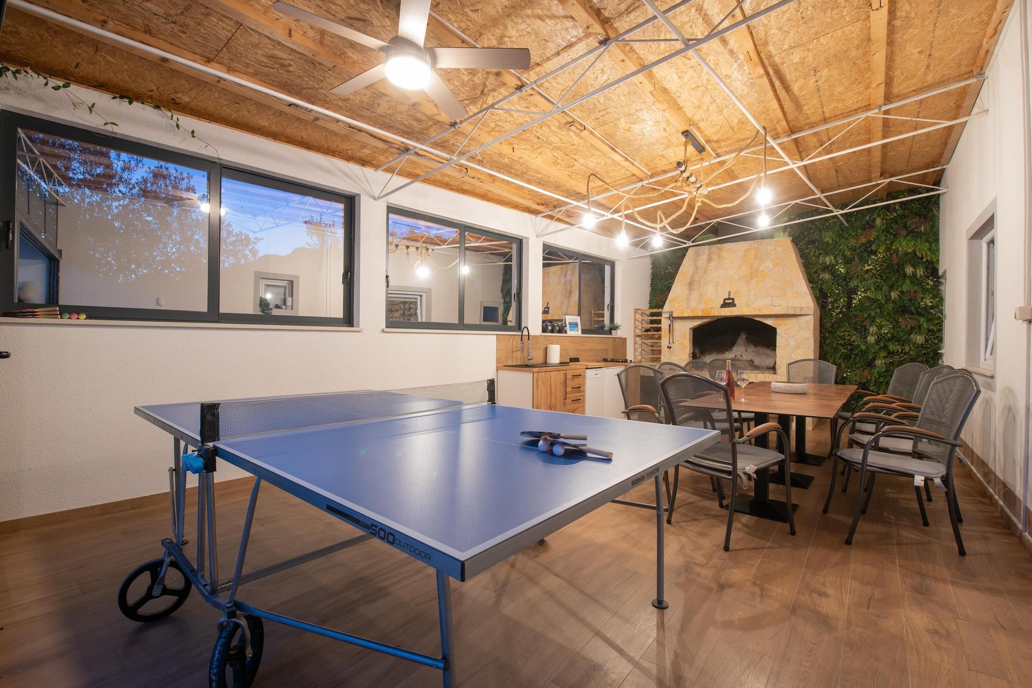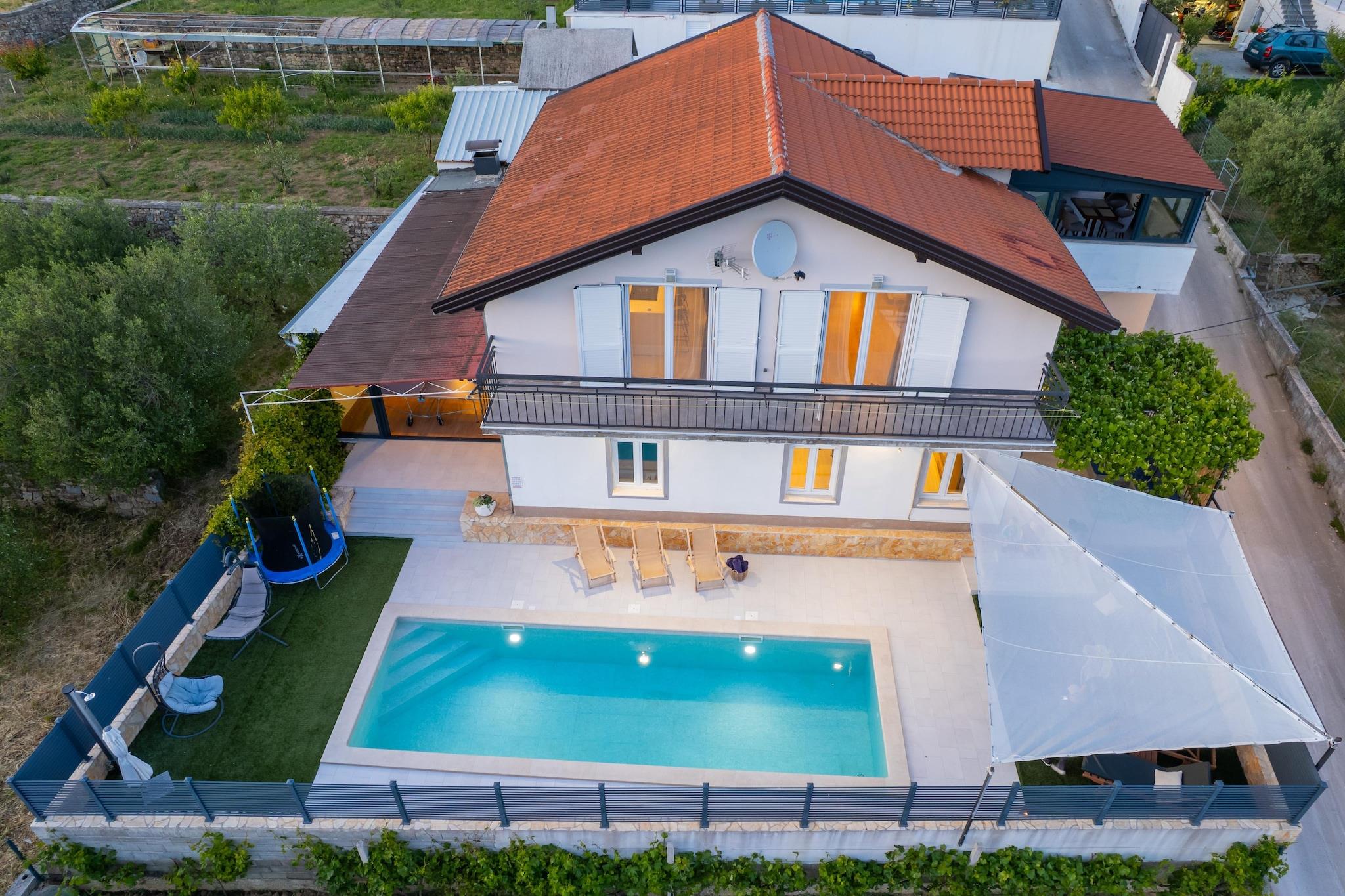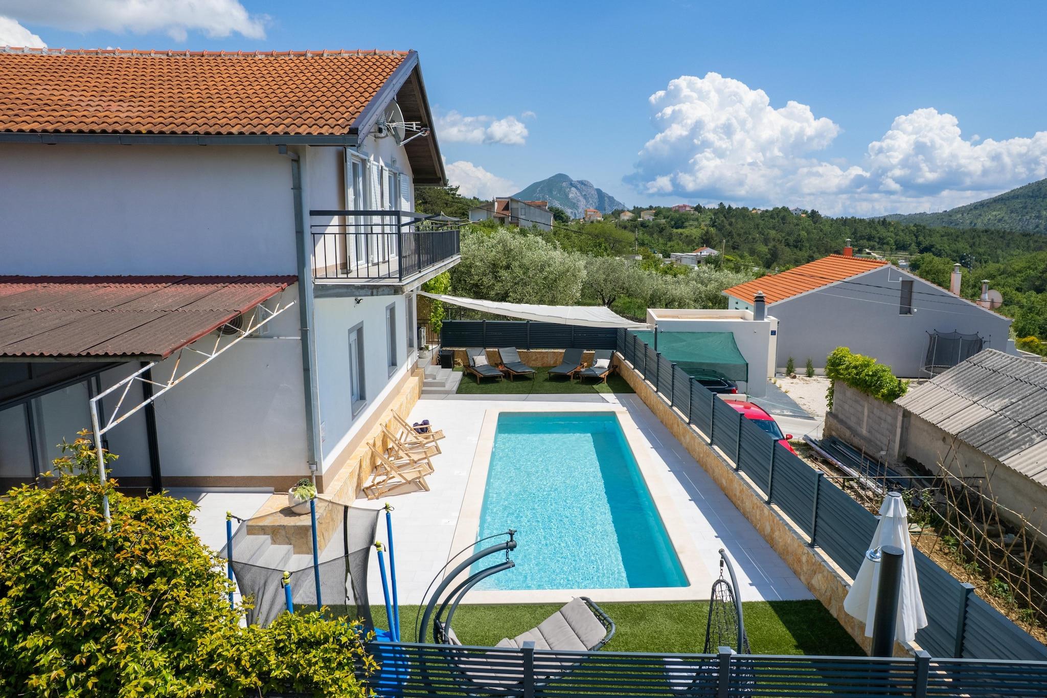 Villa Kristina ligger gemt væk i den fredelige landsby Tugare, kun en kort køretur fra strandene og eventyrene ved Omiš-kysten, og er designet til familier, der ønsker plads, privatliv og friheden til virkelig at slappe af sammen. Med plads til op til 12 gæster ligger dette rummelige hus på 240 m² i en privat have og tilbyder den perfekte blanding af komfort, leg og ro. Fra det øjeblik du ankommer, er alt sat op til et nemt familieliv. Med seks airconditionerede dobbeltværelser fordelt på to etager har alle deres eget rolige tilflugtssted efter lange dage ved poolen eller havet. Tre komplette badeværelser er placeret i stueetagen, mens øverste etage tilbyder yderligere 2 badeværelser for komfort. Flere opholdsrum inkluderer en stue i stueetagen med et tv og et spisebord samt et andet opholdsområde ovenpå. Dagliglivet flyder naturligt gennem villaens mange spise- og køkkenrum. Med tre køkkener, inklusive et udendørs sommerkøkken, bliver familiemåltiderne ubesværede - morgenmad indenfor, frokost ved poolen og afslappede aftengrillfester under åben himmel. Udenfor bliver villaen virkelig en legeplads for familien. Den opvarmede private pool er havens hjerte, omgivet af liggestole til forældre og masser af plads til børnene, hvor de kan plaske sikkert. En trampolin og bordtennis holder energiniveauet højt, mens skyggefulde siddeområder indbyder til rolige stunder med en bog eller kaffe i hånden. Med højhastigheds-Wi-Fi, en spillekonsol og sikker privat parkering understøtter hver eneste detalje et problemfrit og stressfrit ophold. Og når eventyret kalder, er strande, rafting, ø-ture og familievenlige udflugter inden for rækkevidde. Villa Kristina er ikke bare der, hvor din familie bor - det er der, dine bedste ferieminder begynder.