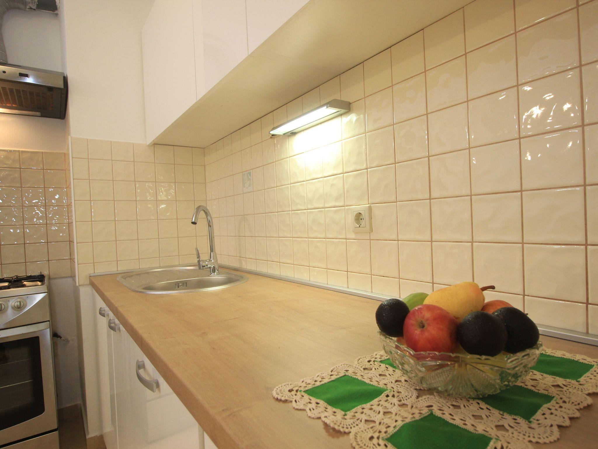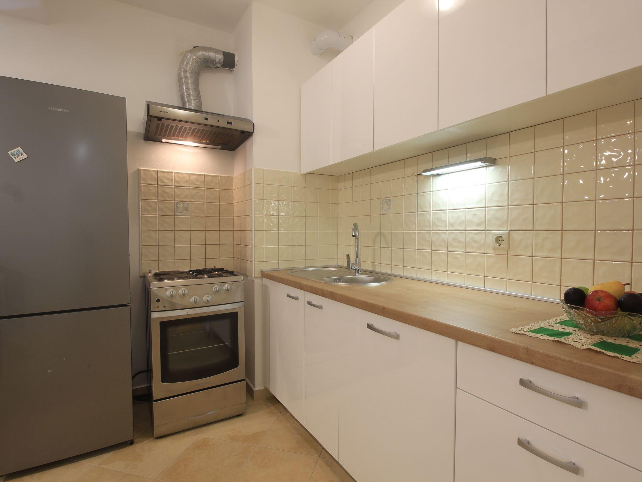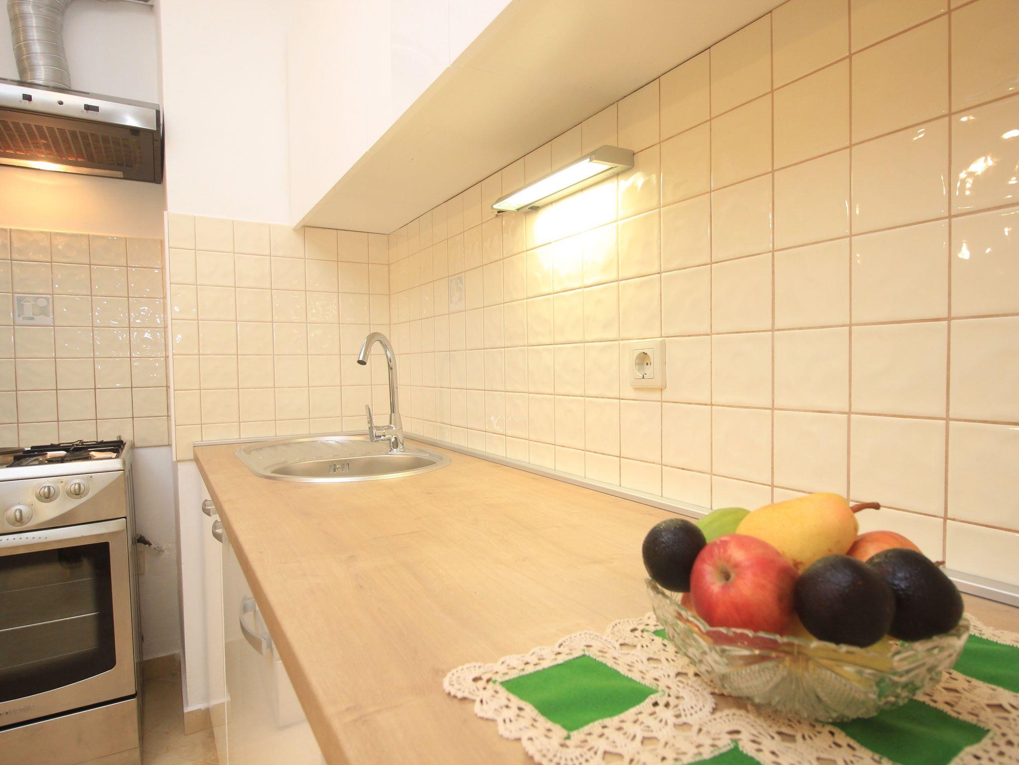 Ferienwohnung bietet Platz für 4 Gäste. Die Betten sind in Schlafzimmern, die es 1 gibt, und in Wohnzimmer, innerhalb einer Gesamtfläche von 42m2, angeordnet. Die Gäste haben eine eigene Terrasse zur Verfügung, auf der sie in warmen Sommernächten genießen können. In der Unterkunftseinheit besteht die Möglichkeit des Mitbringens von Haustieren, und die Dienstleistung ist im Preis der Unterkunft enthalten. IM PREIS INBEGRIFFEN: Kurtaxe, Endreinigung, Klimatisierung, Zentralheizung, Parkplatz, Internet, Haustiere, Kinderbett, Bügeleisen, Bügelbrett. Die Verfügbarkeit zusätzlicher Dienstleistungen in Ihrem reservierten Termin und die Preise derselben (falls nicht aufgeführt) müssen im Voraus überprüft werden. Zusätzliche Dienstleistungen die in der Zahlungsaufforderung nicht aufgeführt sind werden direkt beim Vermieter bezahlt, angenommen der Gast nutzt auch diese. Ermäßigung auf den Grundpreis: Gratistag 28=25 (bei einem Aufenthalt von 28 oder mehr Tagen erhalten Sie 3 kostenlose Tage für den Aufenthalt bis 31.12.26).