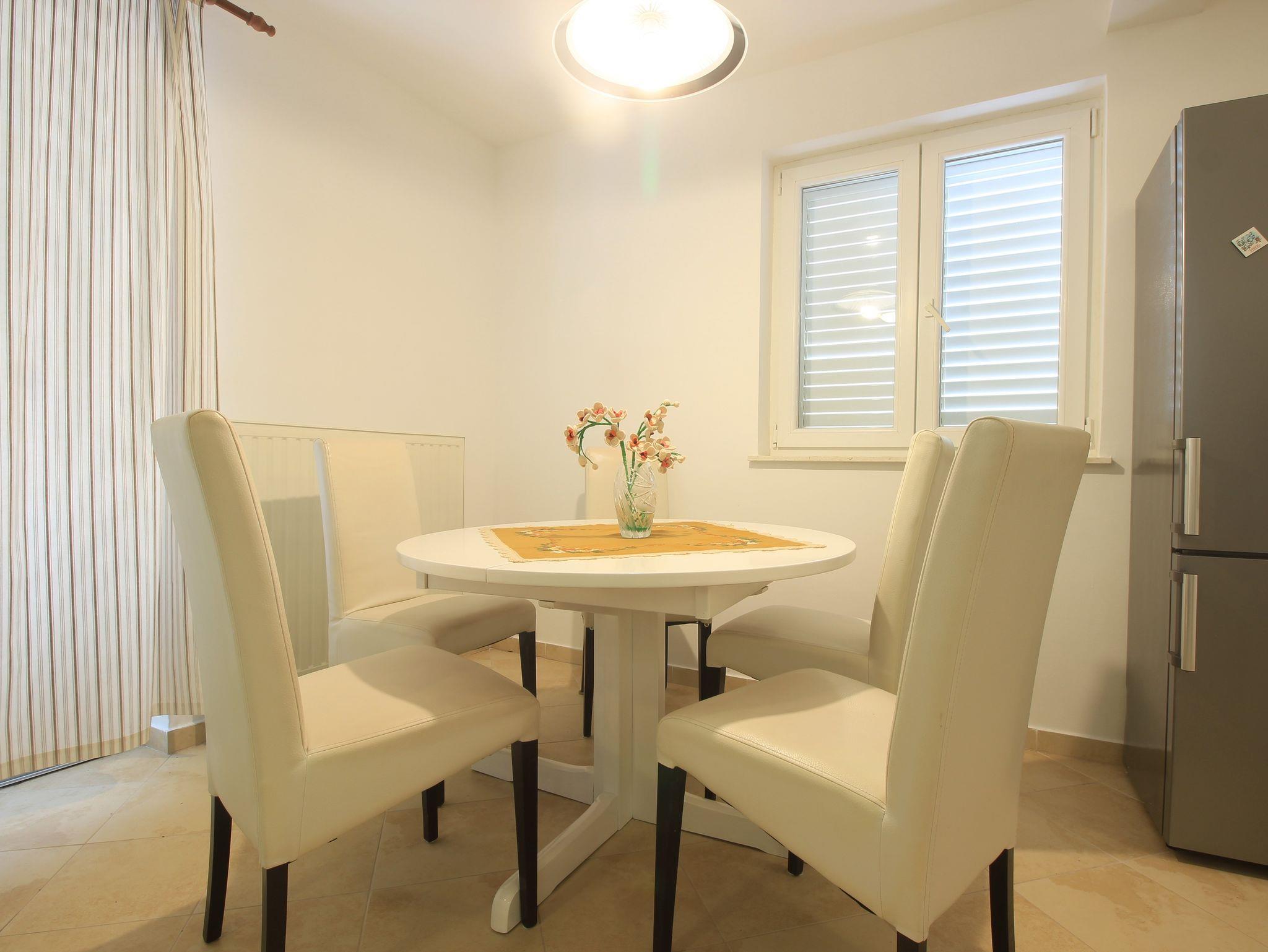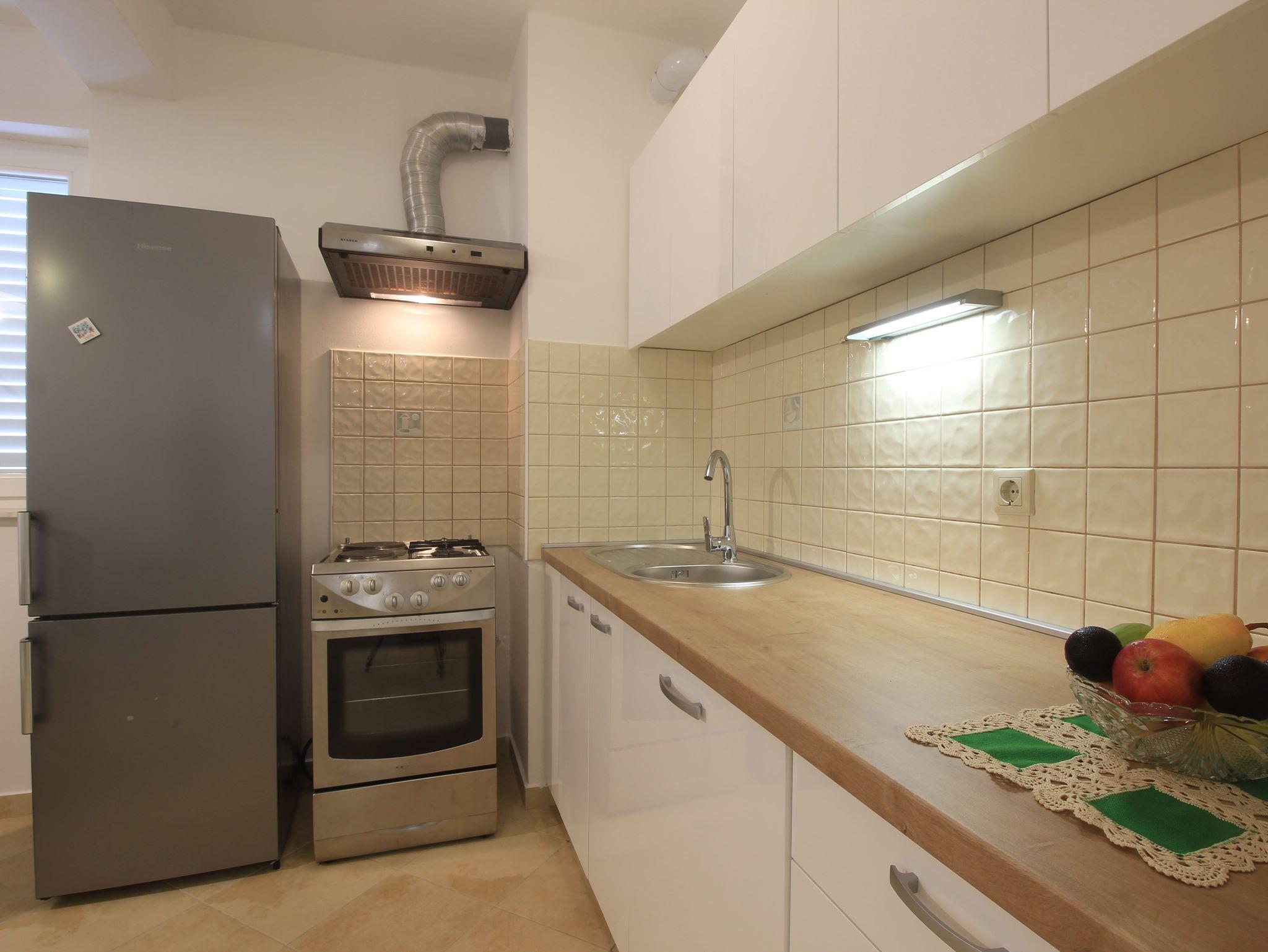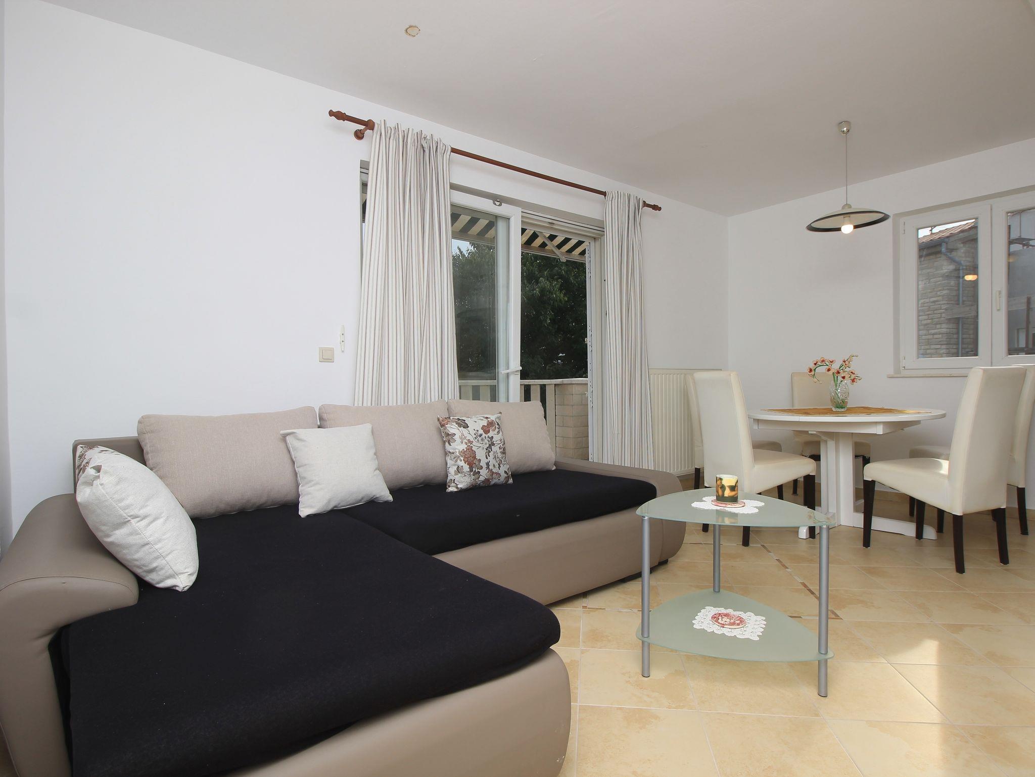 Ferienwohnung bietet Platz für 4 Gäste. Die Betten sind in Schlafzimmern, die es 1 gibt, und in Wohnzimmer, innerhalb einer Gesamtfläche von 42m2, angeordnet. Die Gäste haben eine eigene Terrasse zur Verfügung, auf der sie in warmen Sommernächten genießen können. In der Unterkunftseinheit besteht die Möglichkeit des Mitbringens von Haustieren, und die Dienstleistung ist im Preis der Unterkunft enthalten. IM PREIS INBEGRIFFEN: Kurtaxe, Endreinigung, Klimatisierung, Zentralheizung, Parkplatz, Internet, Haustiere, Kinderbett, Bügeleisen, Bügelbrett. Die Verfügbarkeit zusätzlicher Dienstleistungen in Ihrem reservierten Termin und die Preise derselben (falls nicht aufgeführt) müssen im Voraus überprüft werden. Zusätzliche Dienstleistungen die in der Zahlungsaufforderung nicht aufgeführt sind werden direkt beim Vermieter bezahlt, angenommen der Gast nutzt auch diese. Ermäßigung auf den Grundpreis: Gratistag 28=25 (bei einem Aufenthalt von 28 oder mehr Tagen erhalten Sie 3 kostenlose Tage für den Aufenthalt bis 31.12.26).