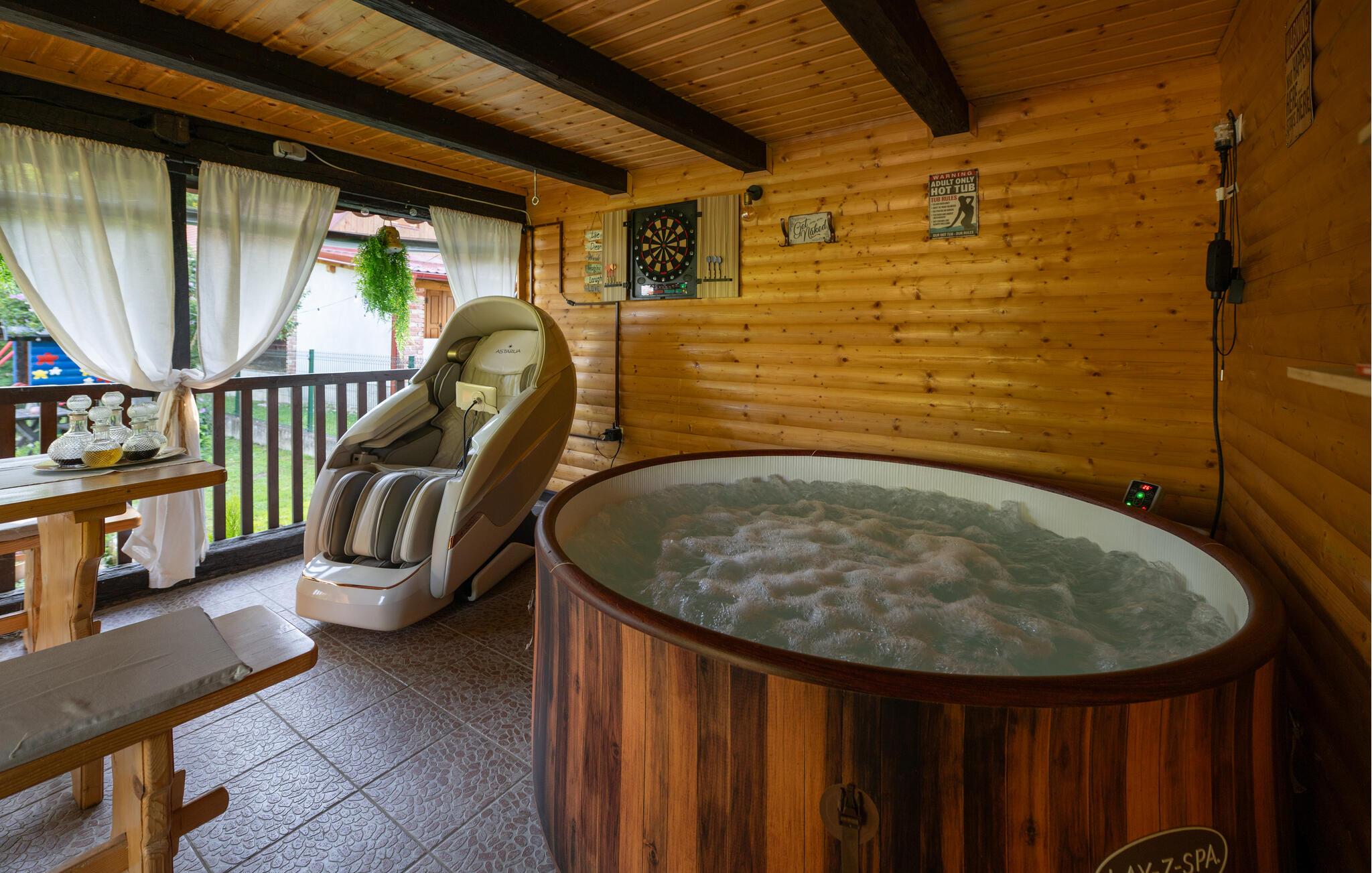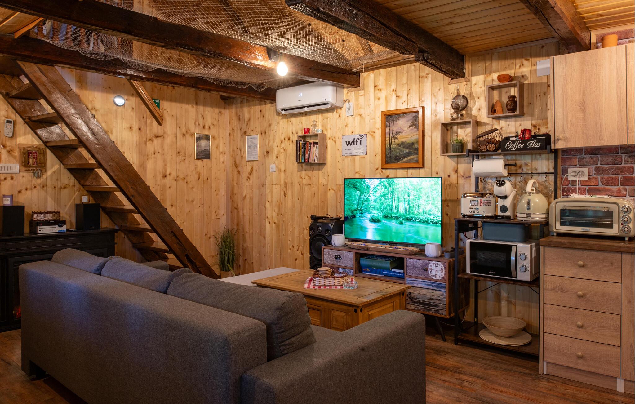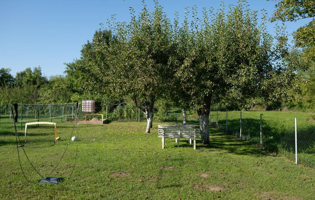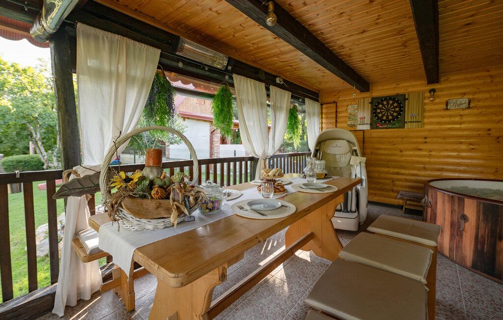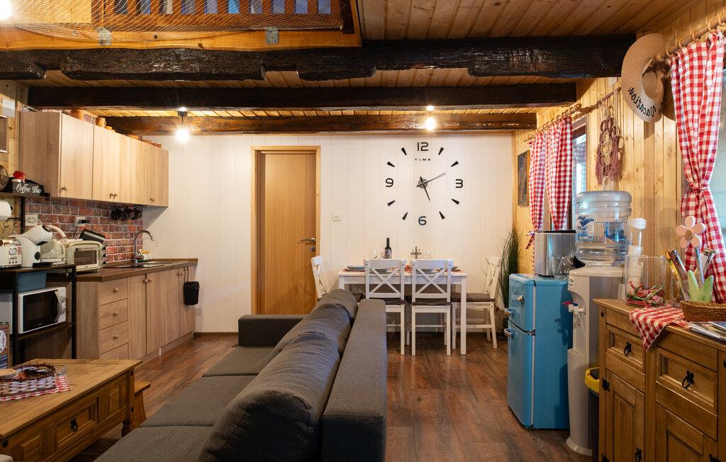 Nyd en afslappende ferie i dette charmerende feriehus med spabad og sauna. Dette smukke hus kombinerer rustik charme og moderne komfort på en indbydende måde. Et varmt trælook, en rummelig sofagruppe og gennemtænkte detaljer skaber et hyggeligt hjem væk fra hjemmet fra første øjeblik. Tilbered lækre måltider i det moderne køkken og server dem med et glas vin. Forkæl jer selv med afslappende timer i spabadet eller saunaen, og lad pejsen skabe en hyggelig og behagelig atmosfære på køligere aftener. Den idylliske have inviterer jer til at slappe af hele dagen. Start morgenen med morgenmad på terrassen omgivet af grønne områder eller nyd en hyggelig middag under stjernerne. Mens børnene spiller badminton eller fodbold så meget de vil, kan I læne jer tilbage og slappe af med en kop kaffe. Vandet er lige uden for døren og inviterer jer til en forfriskende dukkert eller tilbringe afslappende øjeblikke ved bredden. Udforsk den omkringliggende natur på en vandretur eller cykeltur langs maleriske flodlandskaber. Tag en tur til den nærliggende by Petrinja og oplev dens charmerende gamle bydel med historiske bygninger og hyggelige caféer. Prøv regionale specialiteter i traditionelle kroer og bliv betaget af den varme gæstfrihed.