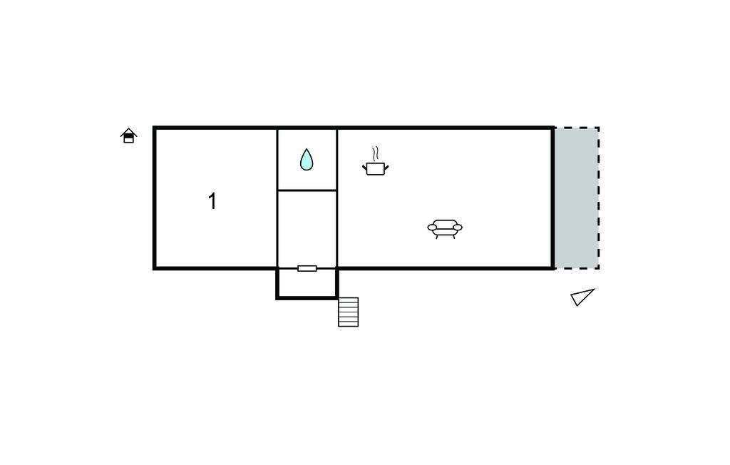Komb. spisestue/køkken 15m2 - 1 Soveplads. (Sofa, madras eller lignende).