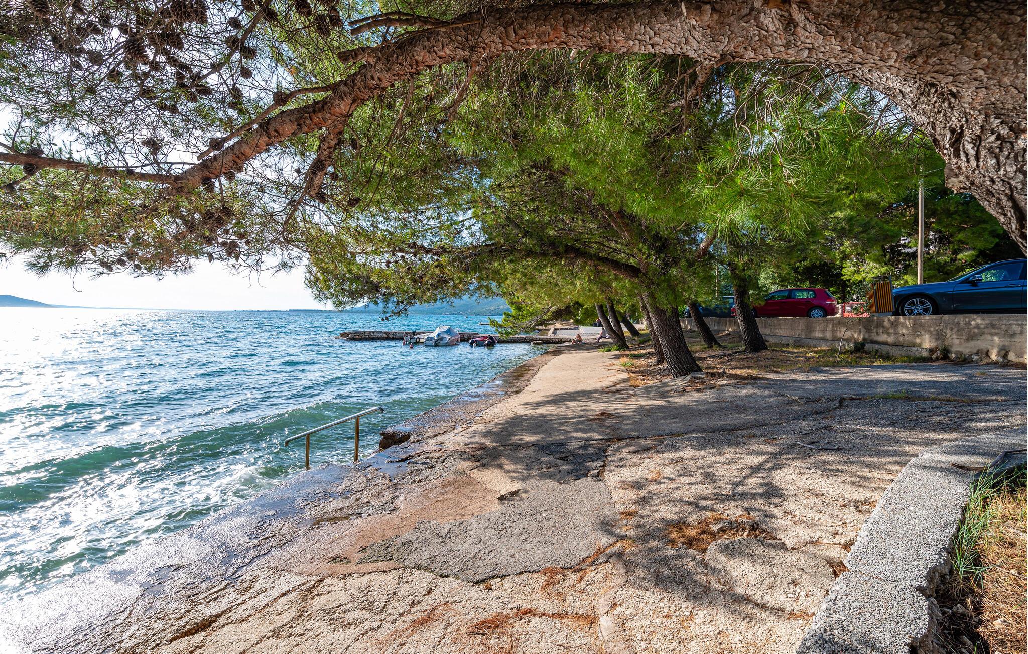 Stranden er kun et kort stenkast væk, så der er gode muligheder for friske dukkerter i det glasklare vand fra morgenstund til solnedgang. I bor i et område med smuk natur, strande og mange fine udflugtsmål i baglandet i Dalmatien. Tag på sceniske dagsture til nationalparkerne, som I kan opleve til fods, på to hjul eller med klatregrejet, og for kulturliv og historiske seværdigheder anbefales en tur til skønne Zadar.