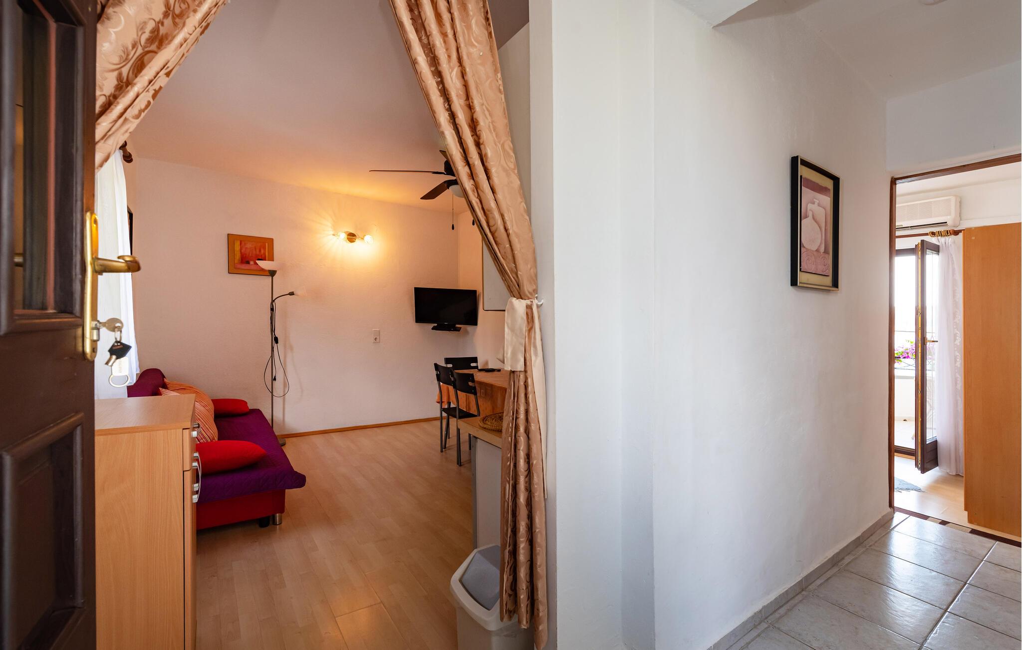 Tag den lille familie eller din partner under armen og rejs til Rovajnska, hvor der venter jer et allelunde dejligt ophold i denne fine lejlighed. Boligen er pænt indrettet med et rustikt strejf og gode møbler, der gør det nemt at slappe af med det samme, I stiller kufferterne. Tilbered en lækker morgenmad i det funktionelle køkken og nyd måltidet på altanen med en vidunderlig udsigt over havet.