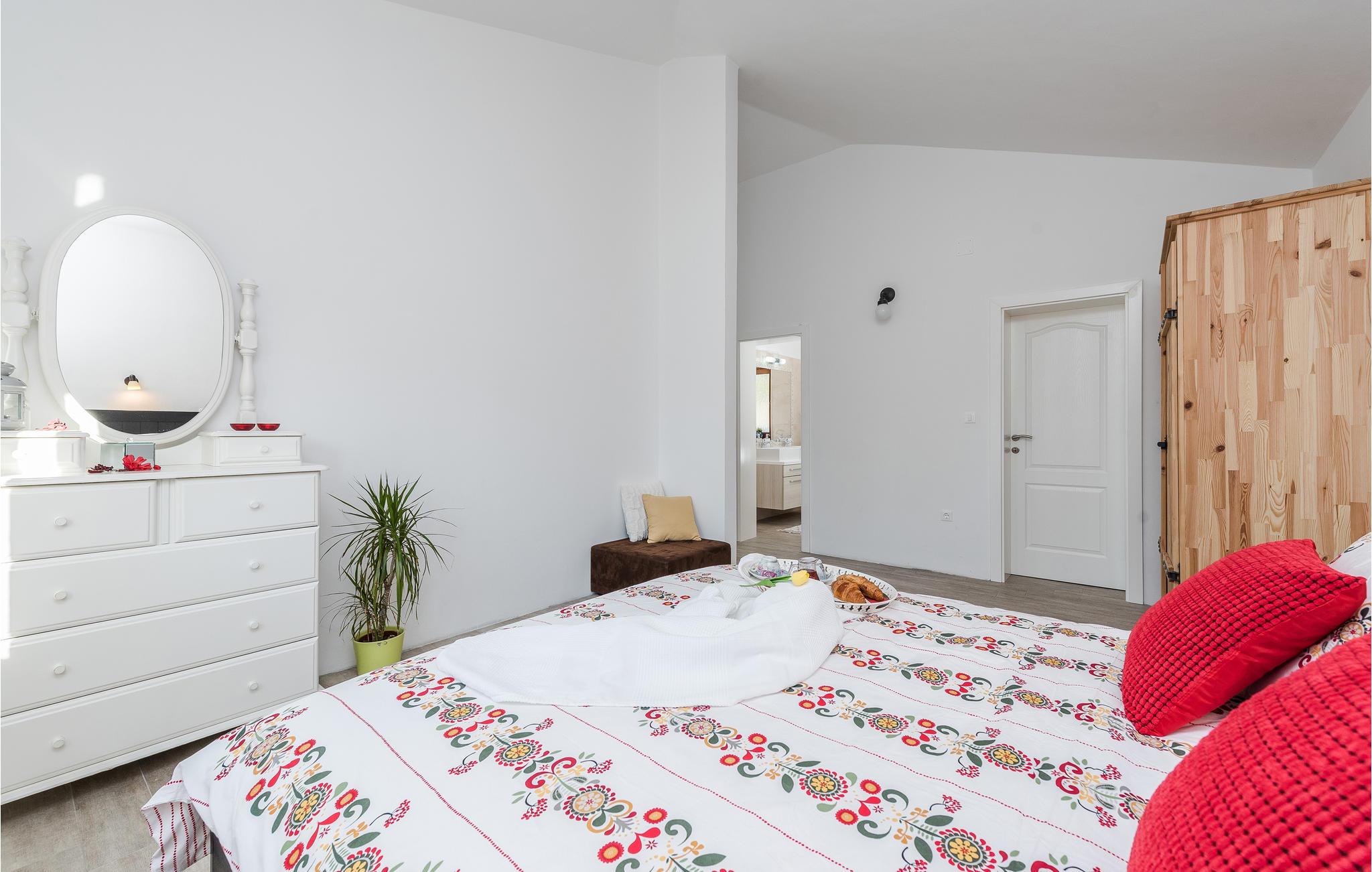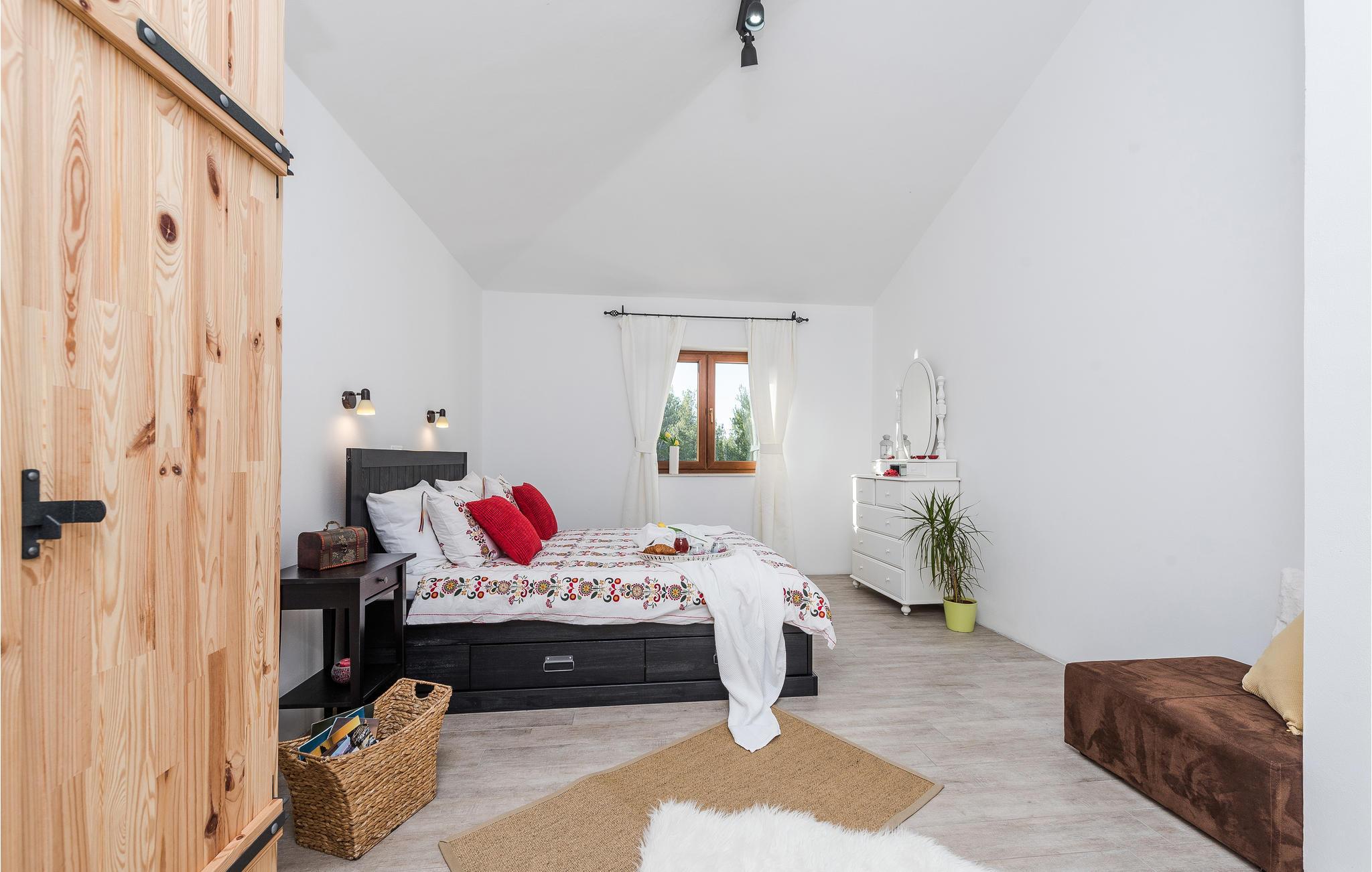 Dette dejlige feriehus ligger i den lille by Rovanjska, i nærheden af linjeskoven og kun omkring 200 m fra havet. I stueetagen ligger et soveværelse og et badeværelse samt et aktivitetsrum med bordtennisplade. Fra stueetagen kommer I op til overetagen, der også har en særskilt indgang udefra. Deroppe er der to badeværelser mere, to soveværelser og en stor dagligstue med køkken. Fra den store terrasse har I udsigt til havet. I stueetagen ligger swimmingpoolen. Dette feriemål er kendt for nationalparken Paklenica samt floden Zrmanje, hvor I kan prøve kræfter med rafting.