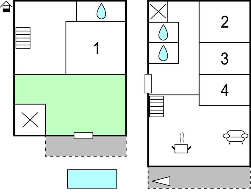 Opholdsstue/køkken - 2 Sovepladser. (Sofa, madras eller lignende).