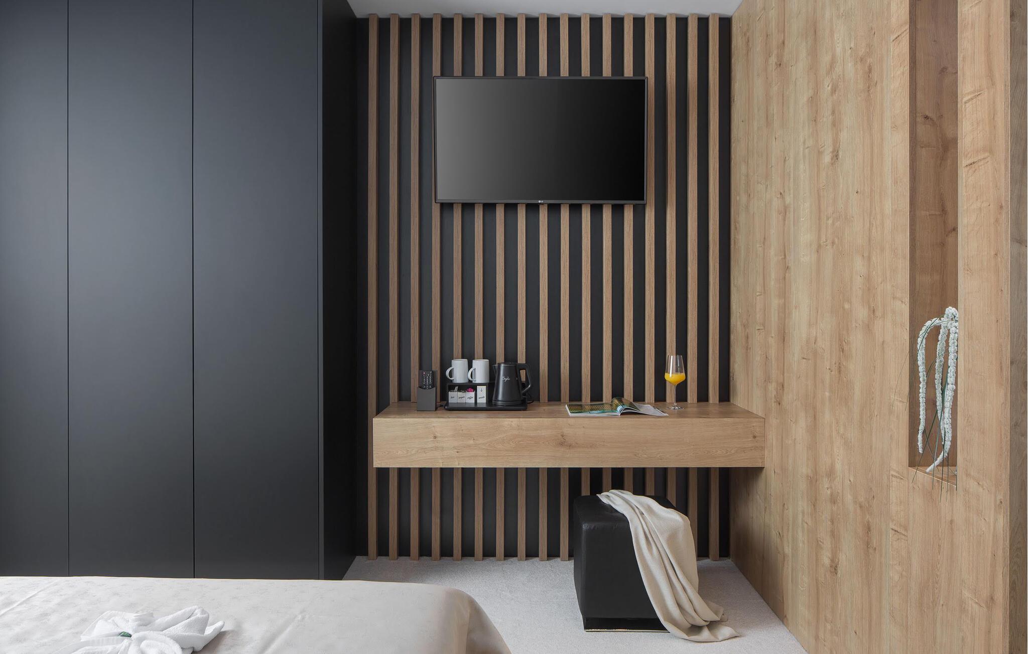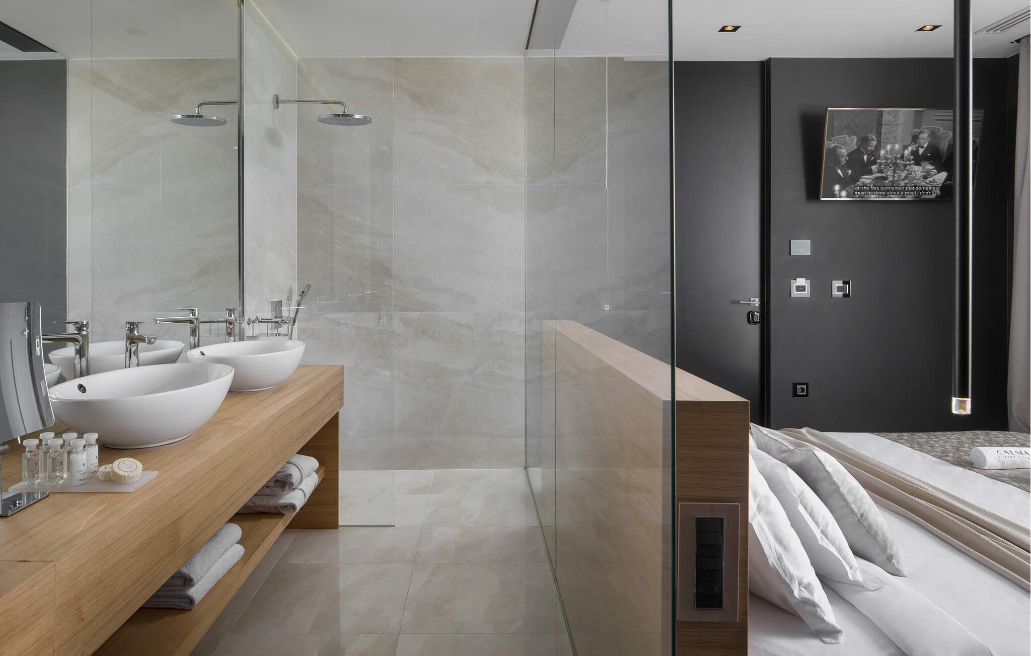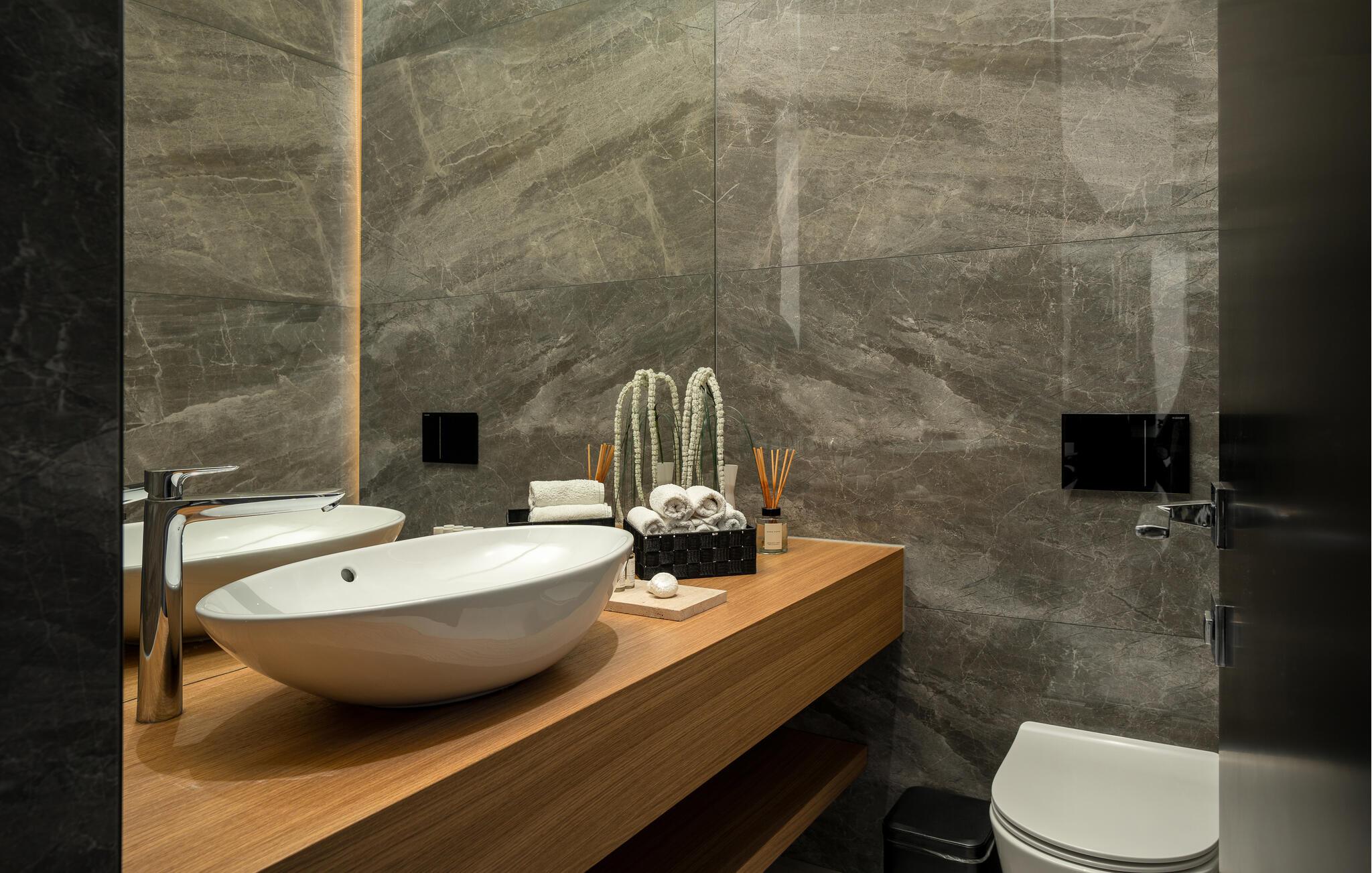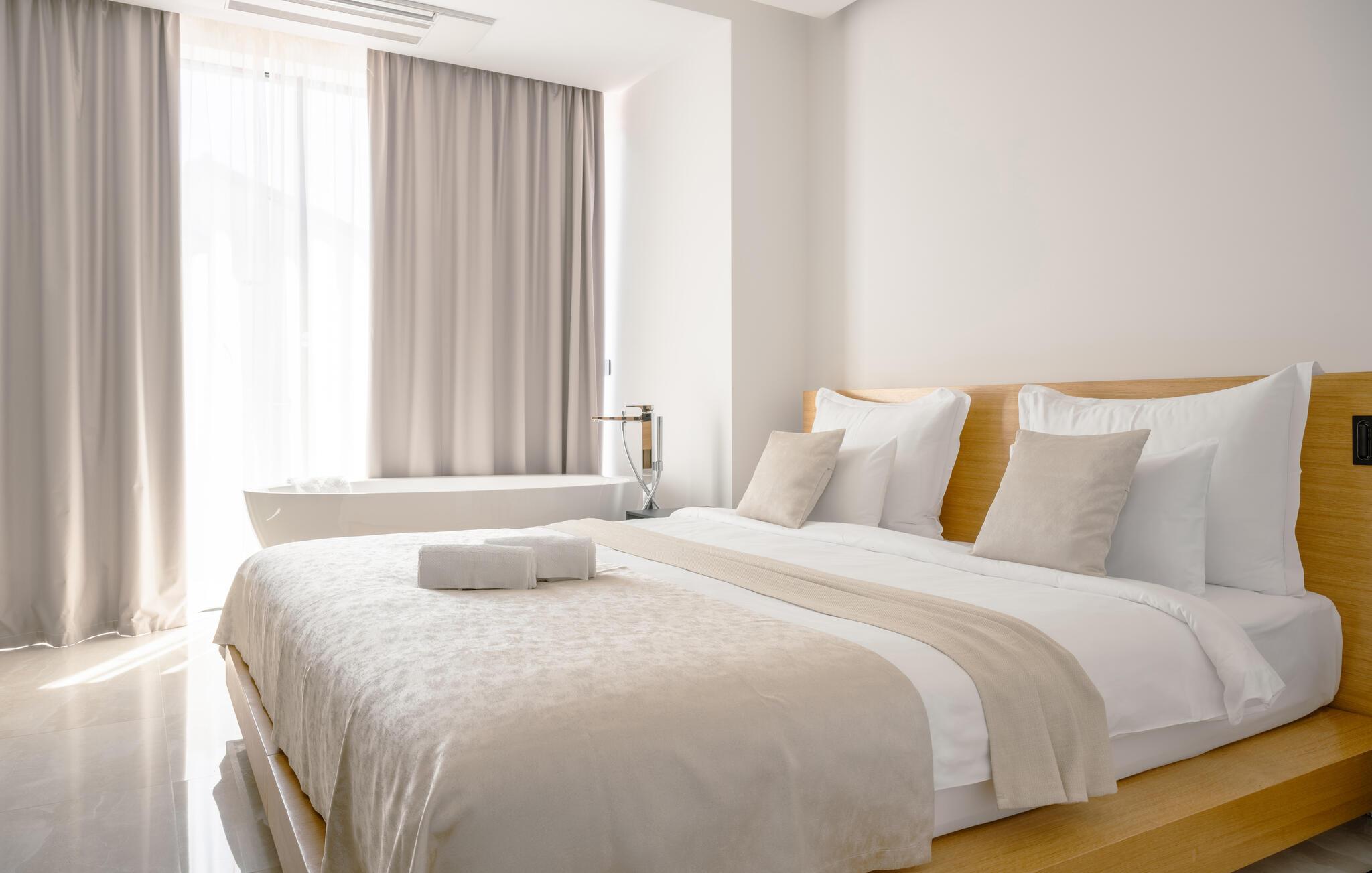 På terrassen og i haven venter en smuk privat saltvandspool på jer, omgivet af palmer og med liggestole. Wellness-området med bio-sauna og spabad på balkonen fuldender tilbuddene.