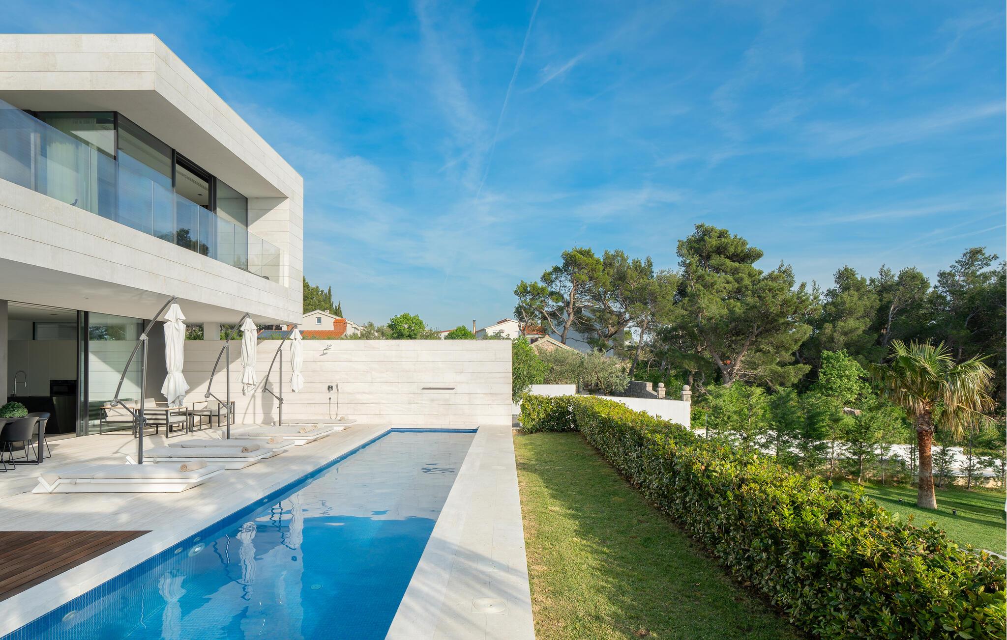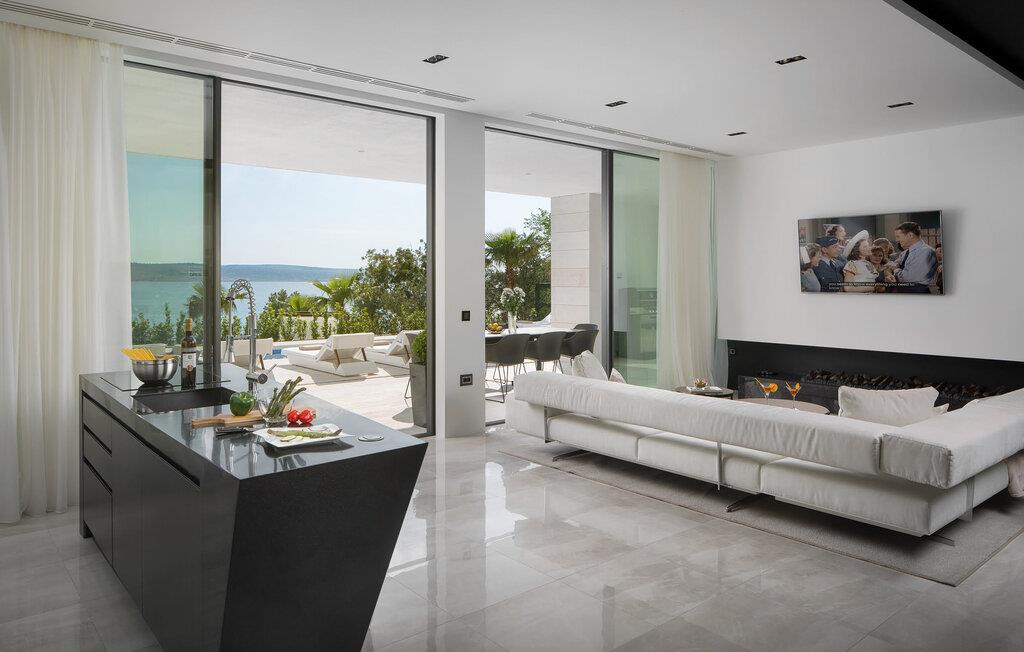 Bare få skridt fra det glitrende hav inviterer den moderne luksus Villa Anastazia i Starigrad jer til en uforglemmelig ferieoplevelse. Nyd panoramaudsigten over Velebit-kanalen direkte fra de fritstående badekar i to af soveværelserne. Oplev det høje komfortniveau og det stilfulde design, der er kendetegnet ved vægmalerier og møbler af høj kvalitet. Det stilfuldt udstyrede køkken og den rummelige stue med pejs skaber en hyggelig atmosfære.