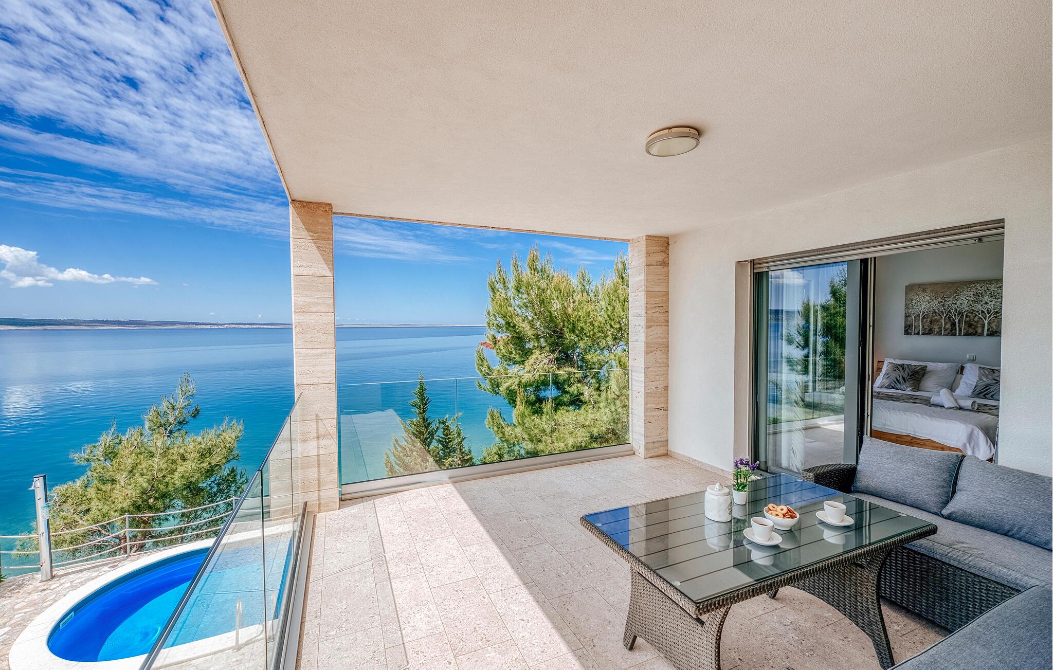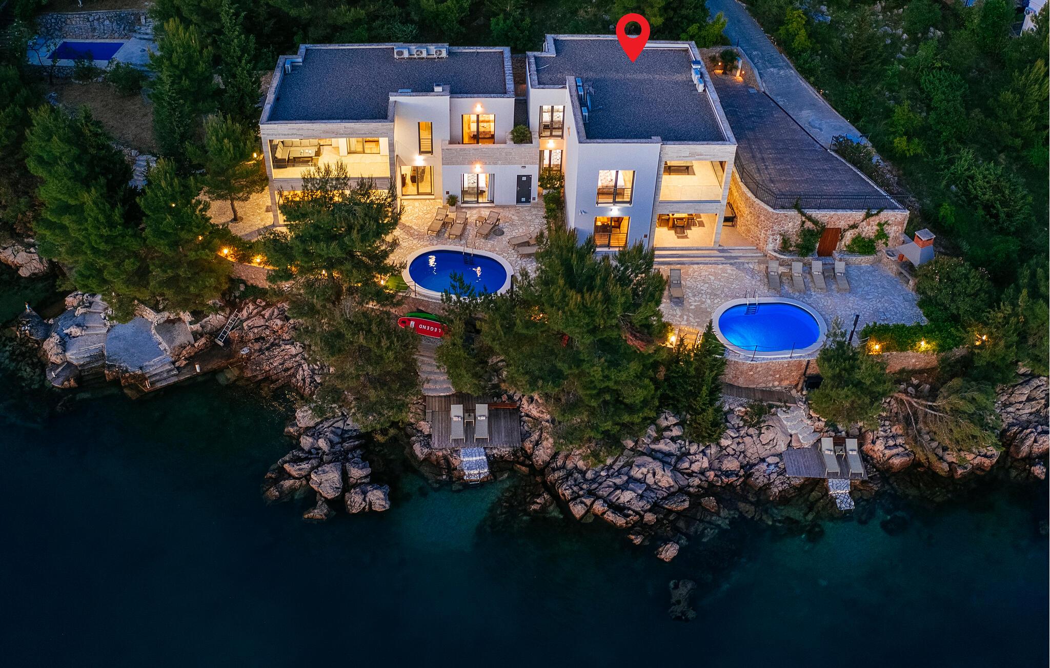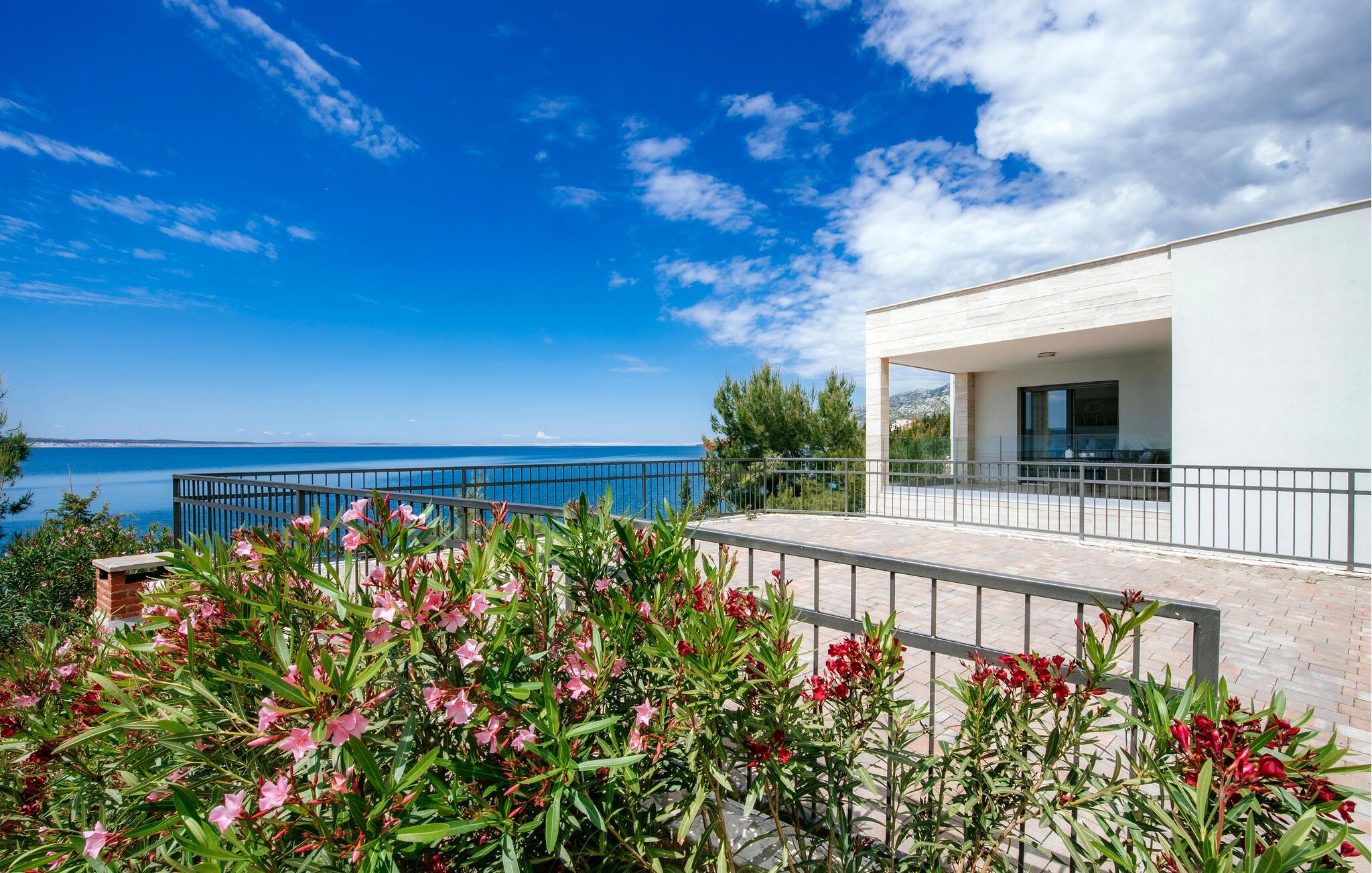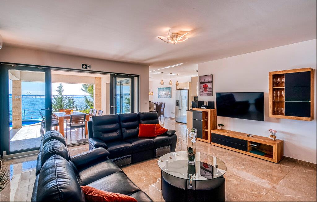 Tilbring jeres drømmeferie i dette luksuriøse feriehus med pool og sensationel havudsigt. Villa Poseidon byder jer velkommen til en unik beliggenhed direkte ved Adriaterhavet og for foden af Velebit Naturpark og forkæler jer med smagfuldt møbleret interiør af høj kvalitet. Store vinduer sikrer rigeligt naturligt dagslys og tilbyder en fortryllende udsigt over det blå hav. Nyd harmoniske måltider i den stilfulde spisestue, og efter en lang dag i solen kan I slå jer ned i den indbydende stue til stimulerende samtaler med et glas vin. Udendørsområdet tilbyder også attraktive muligheder for spisning under åben himmel. snup en frisk dukkert i poolen, når I har lyst – takket være den stemningsfulde belysning er selv natbadning en sand oplevelse – genoplad batterierne på de komfortable liggestole og nyd en solnedgang på jeres private anløbsbro eller tag en kajaktur herfra. Der er en grill til stemningsfuld fest på lune sommernætter. Udforsk de spektakulære kløfter i Paklenica Nationalpark ved at vandre eller klatre, tag en bådtur for at opdage skjulte bugter og strande, og udforsk undervandsverdenen ved at snorkle eller svømme. Cykl gennem olivenlunde og vinmarker, prøv lokale specialiteter i traditionelle landsbyer, og slentre gennem Zadars historiske gamle bydel med det berømte Havorgel og "Hilsen til Solen".