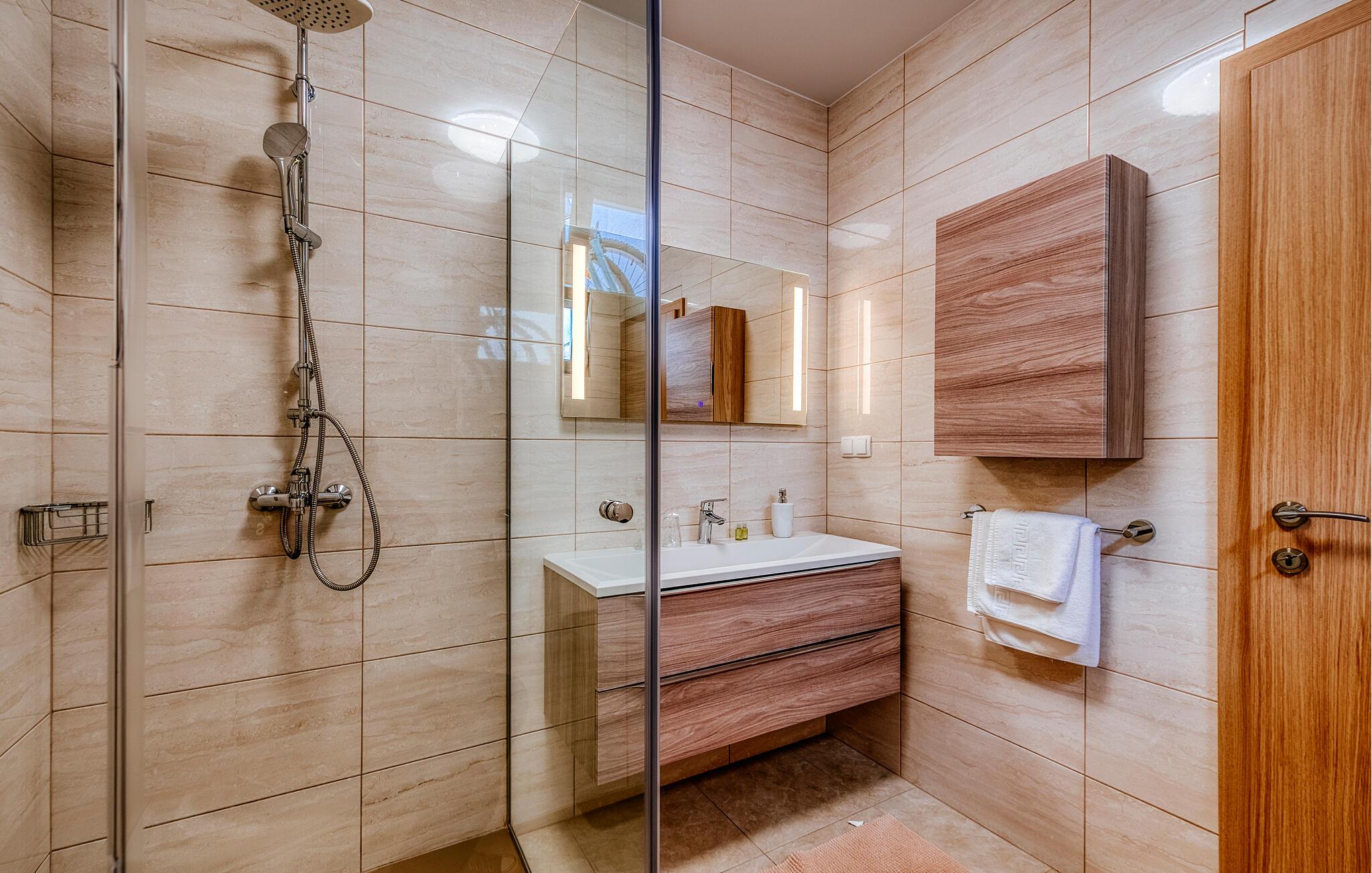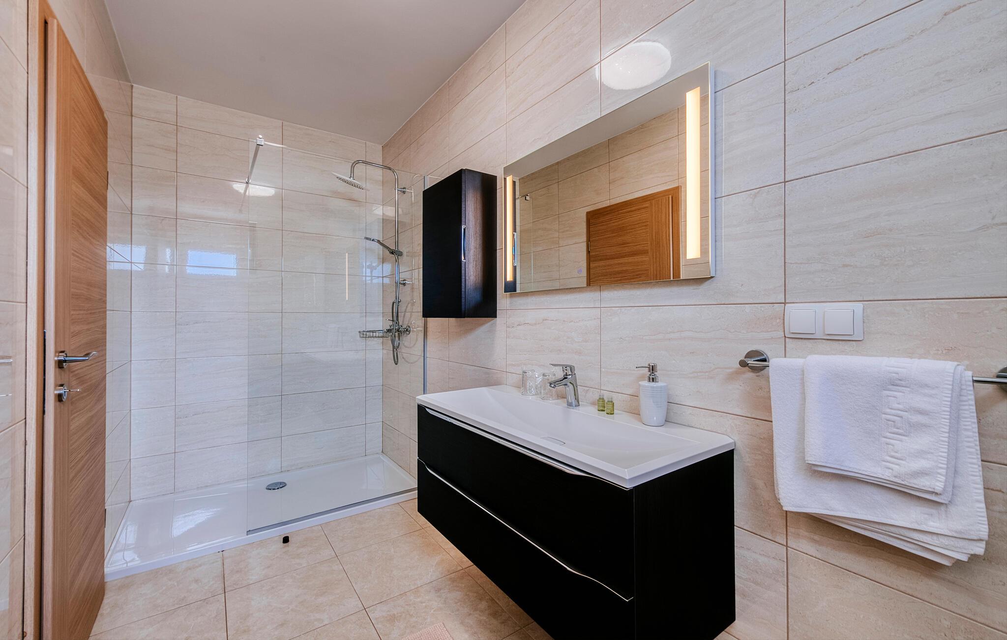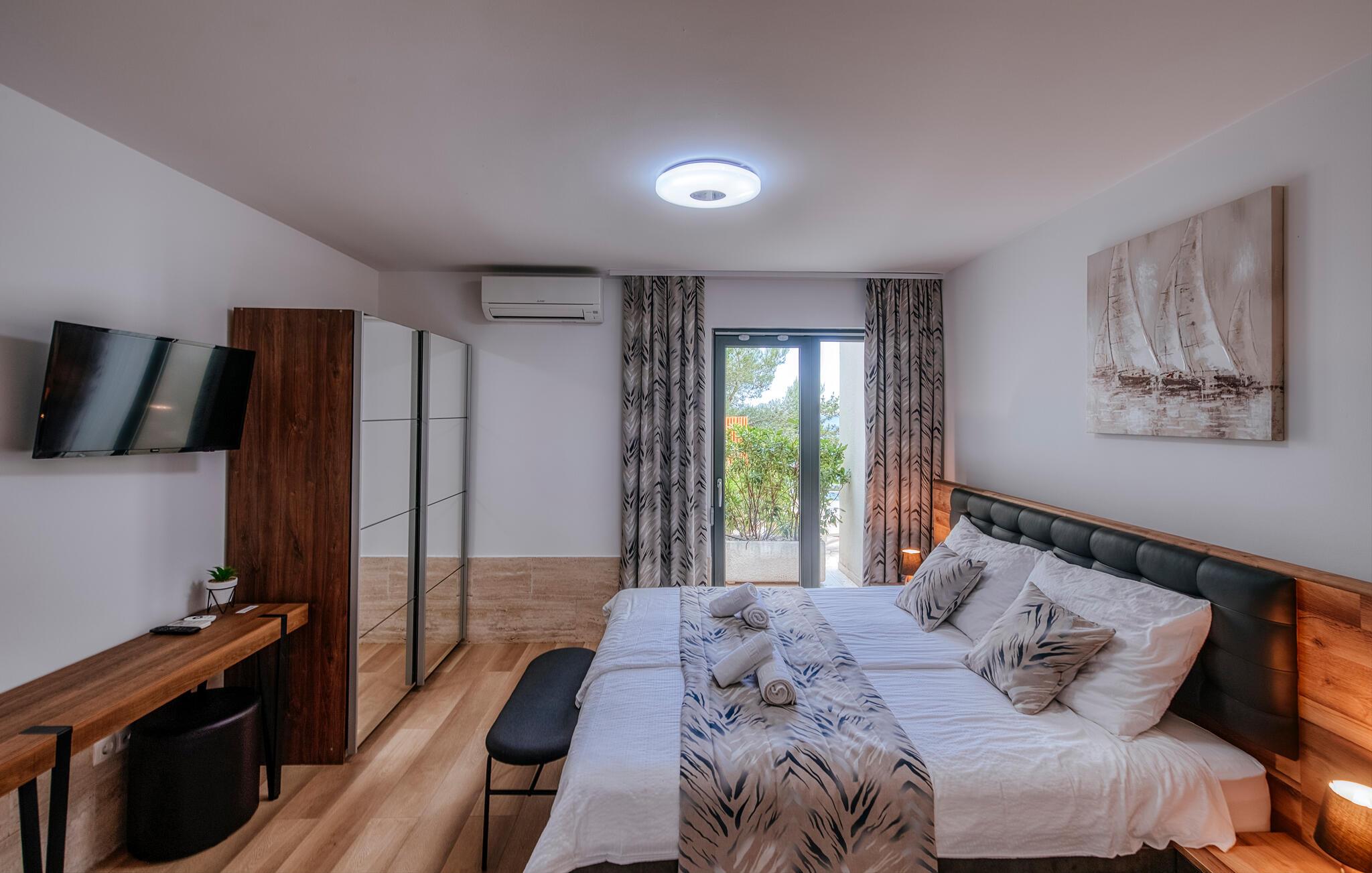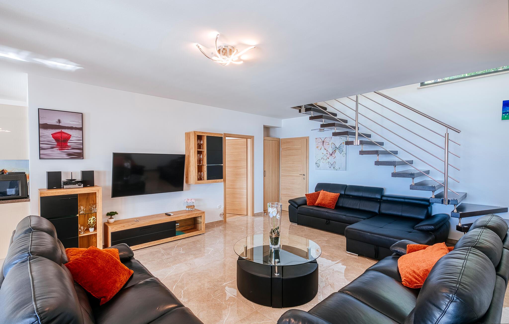 Tilbring jeres drømmeferie i dette luksuriøse feriehus med pool og sensationel havudsigt. Villa Poseidon byder jer velkommen til en unik beliggenhed direkte ved Adriaterhavet og for foden af Velebit Naturpark og forkæler jer med smagfuldt møbleret interiør af høj kvalitet. Store vinduer sikrer rigeligt naturligt dagslys og tilbyder en fortryllende udsigt over det blå hav. Nyd harmoniske måltider i den stilfulde spisestue, og efter en lang dag i solen kan I slå jer ned i den indbydende stue til stimulerende samtaler med et glas vin. Udendørsområdet tilbyder også attraktive muligheder for spisning under åben himmel. snup en frisk dukkert i poolen, når I har lyst – takket være den stemningsfulde belysning er selv natbadning en sand oplevelse – genoplad batterierne på de komfortable liggestole og nyd en solnedgang på jeres private anløbsbro eller tag en kajaktur herfra. Der er en grill til stemningsfuld fest på lune sommernætter. Udforsk de spektakulære kløfter i Paklenica Nationalpark ved at vandre eller klatre, tag en bådtur for at opdage skjulte bugter og strande, og udforsk undervandsverdenen ved at snorkle eller svømme. Cykl gennem olivenlunde og vinmarker, prøv lokale specialiteter i traditionelle landsbyer, og slentre gennem Zadars historiske gamle bydel med det berømte Havorgel og "Hilsen til Solen".