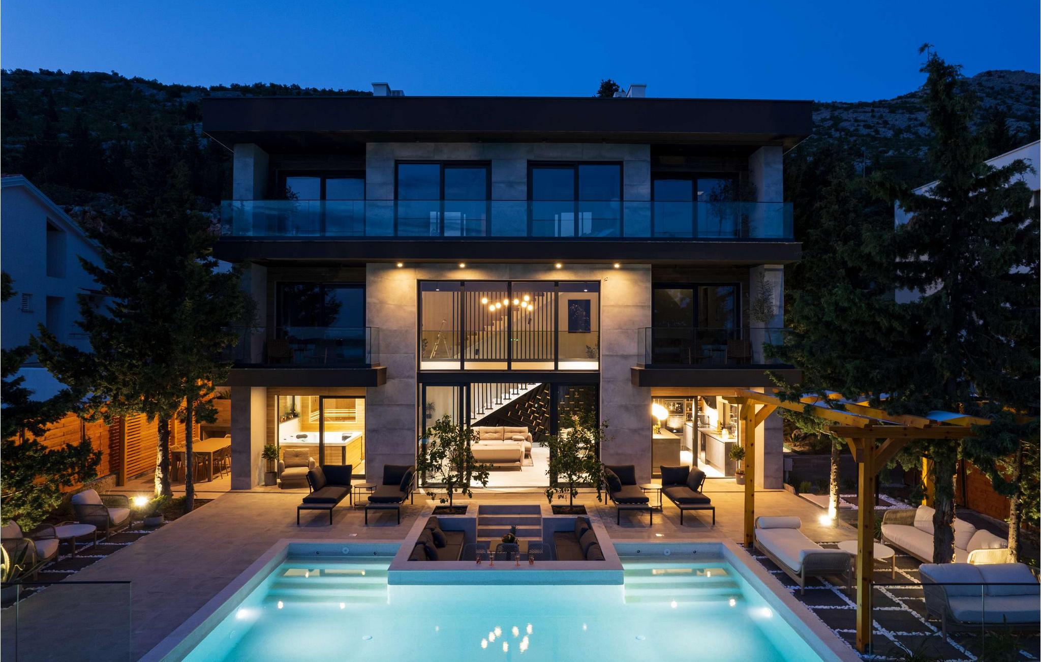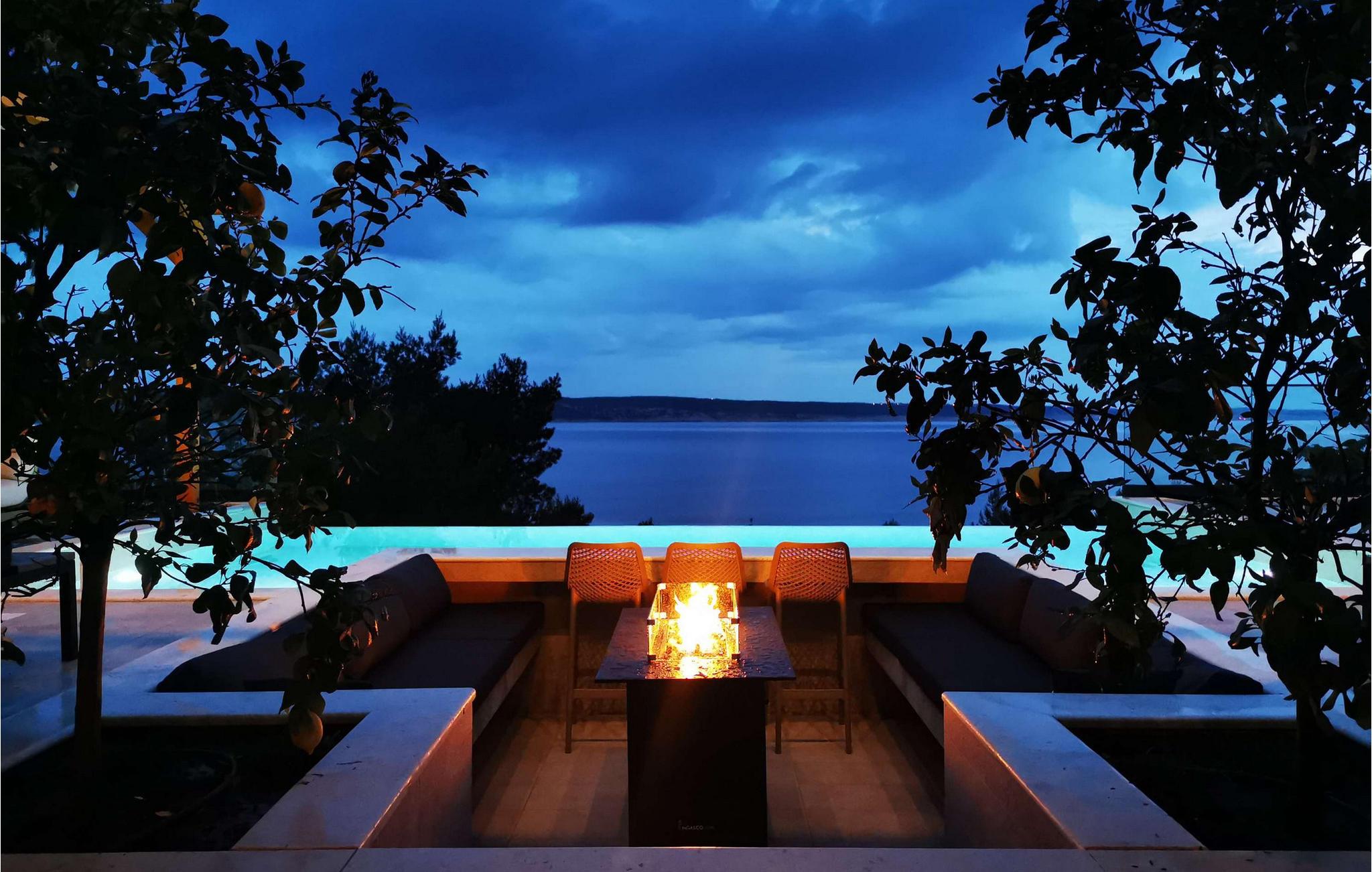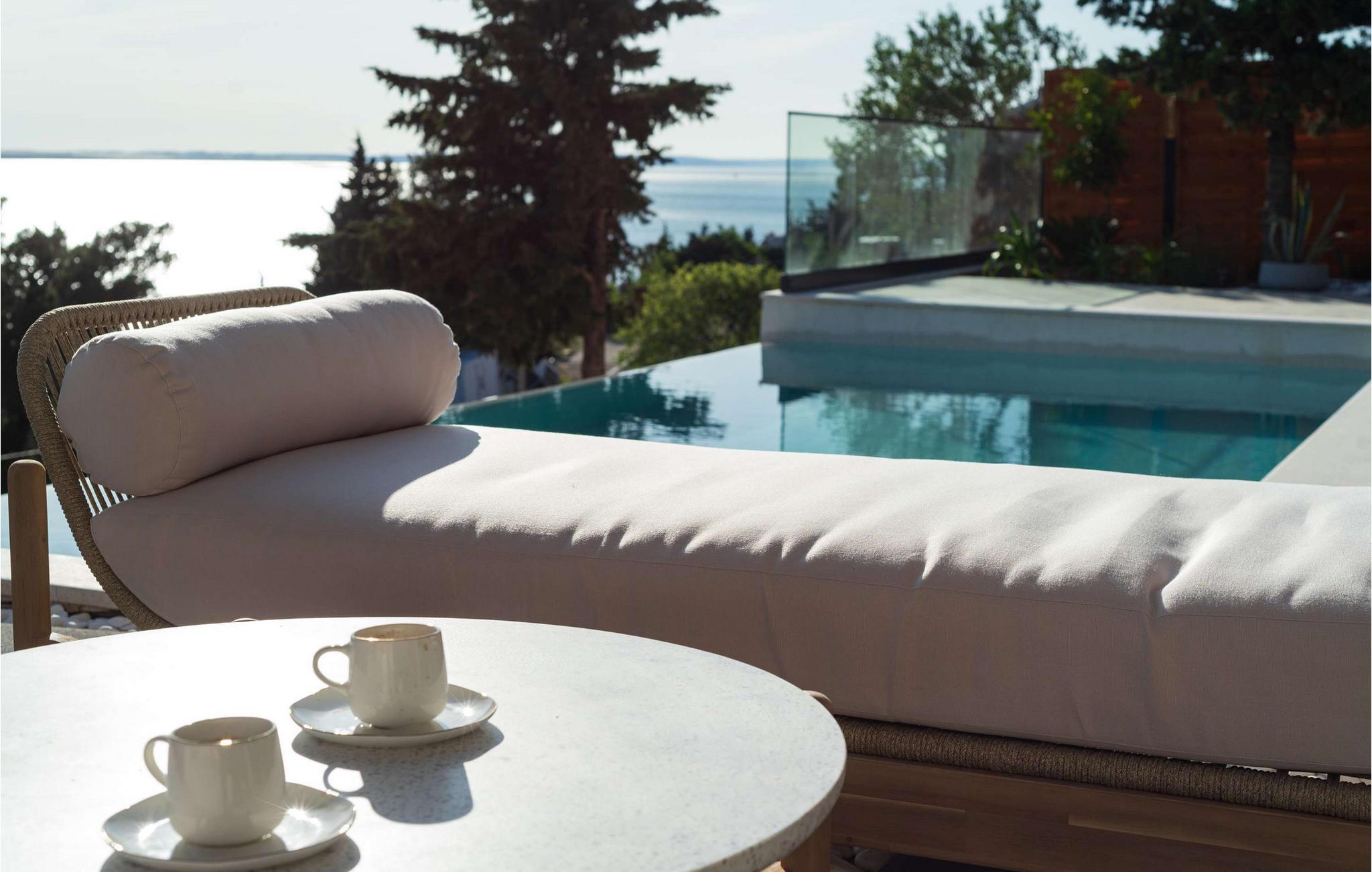 Nyd den storslåede udsigt over Adriaterhavet, mens I svømmer baner i poolen. Slap af på de komfortable liggestole eller træk jer tilbage til det skyggefulde loungeområde. I kan også benytte jer af den udendørs grill og sommerkøkkenet.