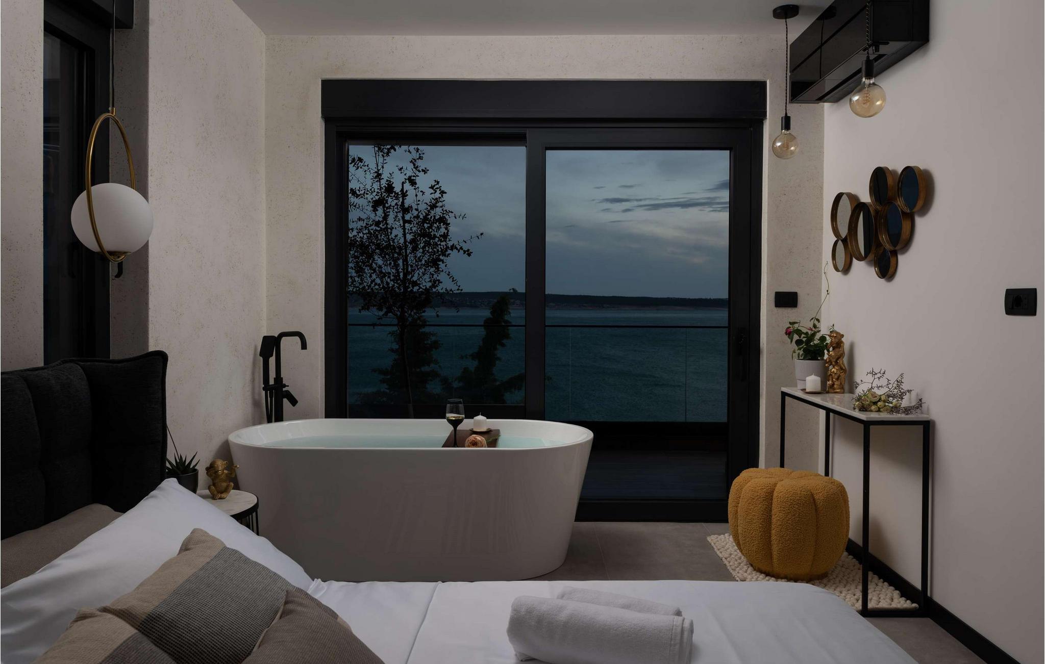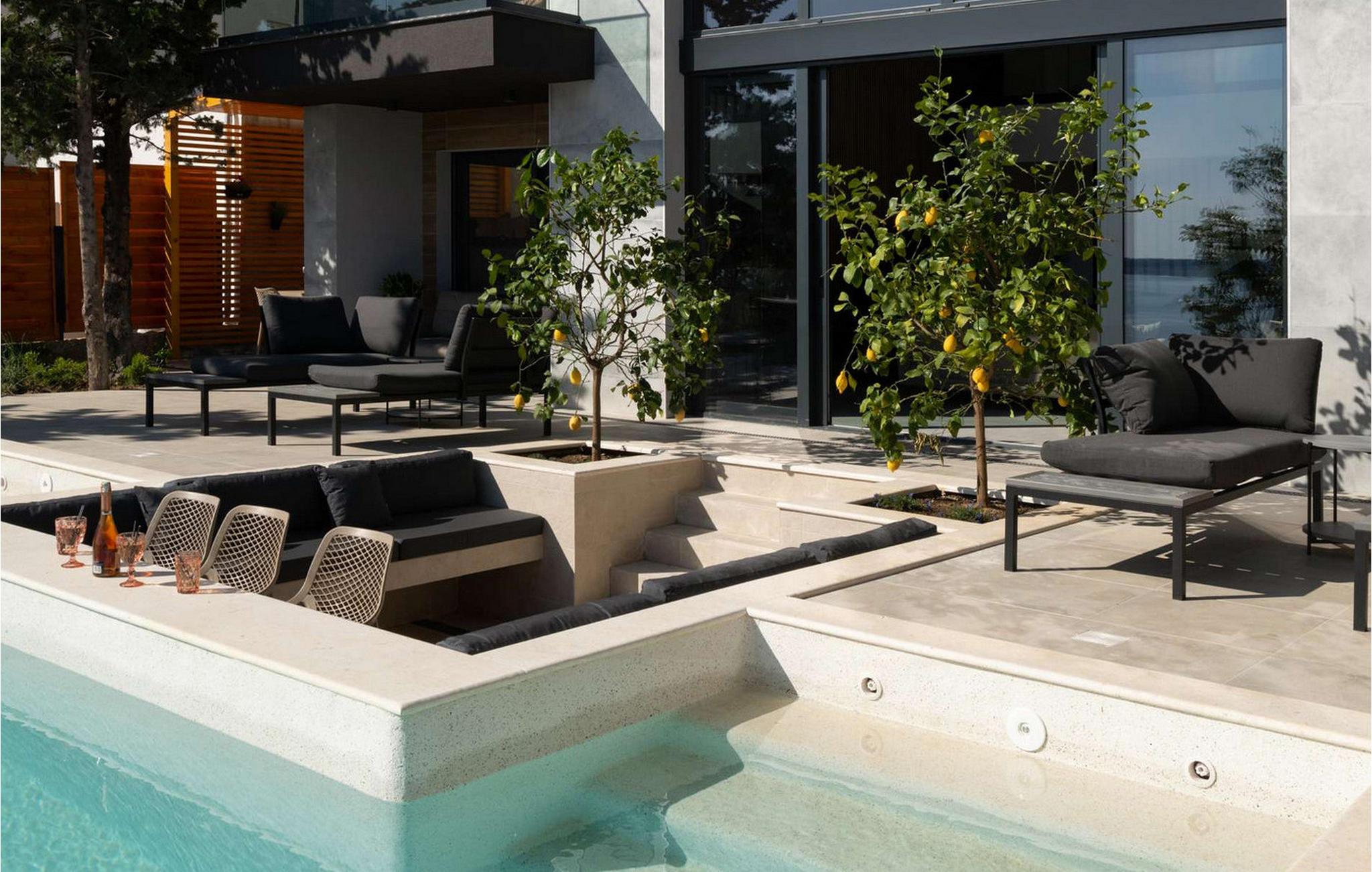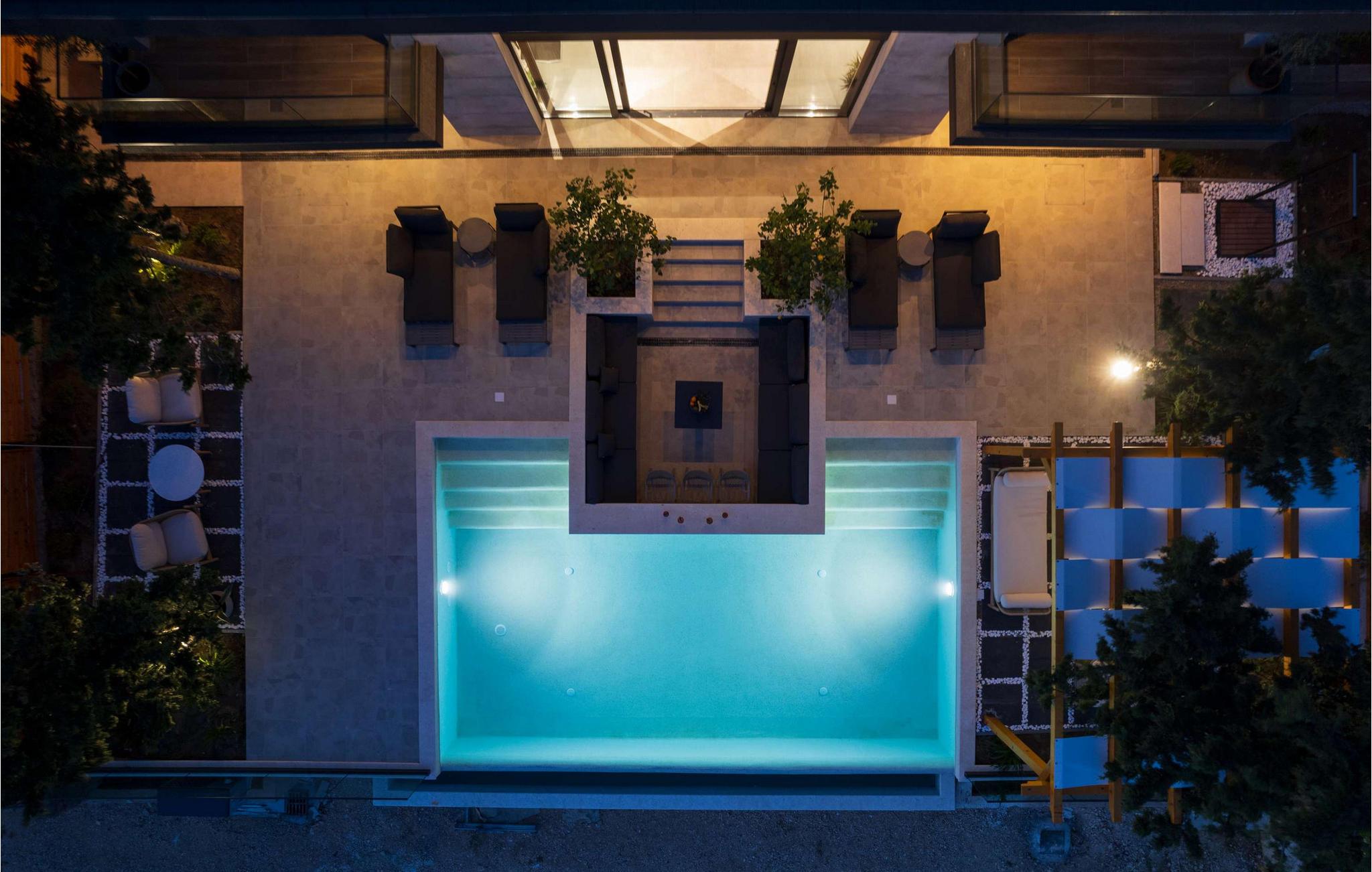 Nyd den storslåede udsigt over Adriaterhavet, mens I svømmer baner i poolen. Slap af på de komfortable liggestole eller træk jer tilbage til det skyggefulde loungeområde. I kan også benytte jer af den udendørs grill og sommerkøkkenet.