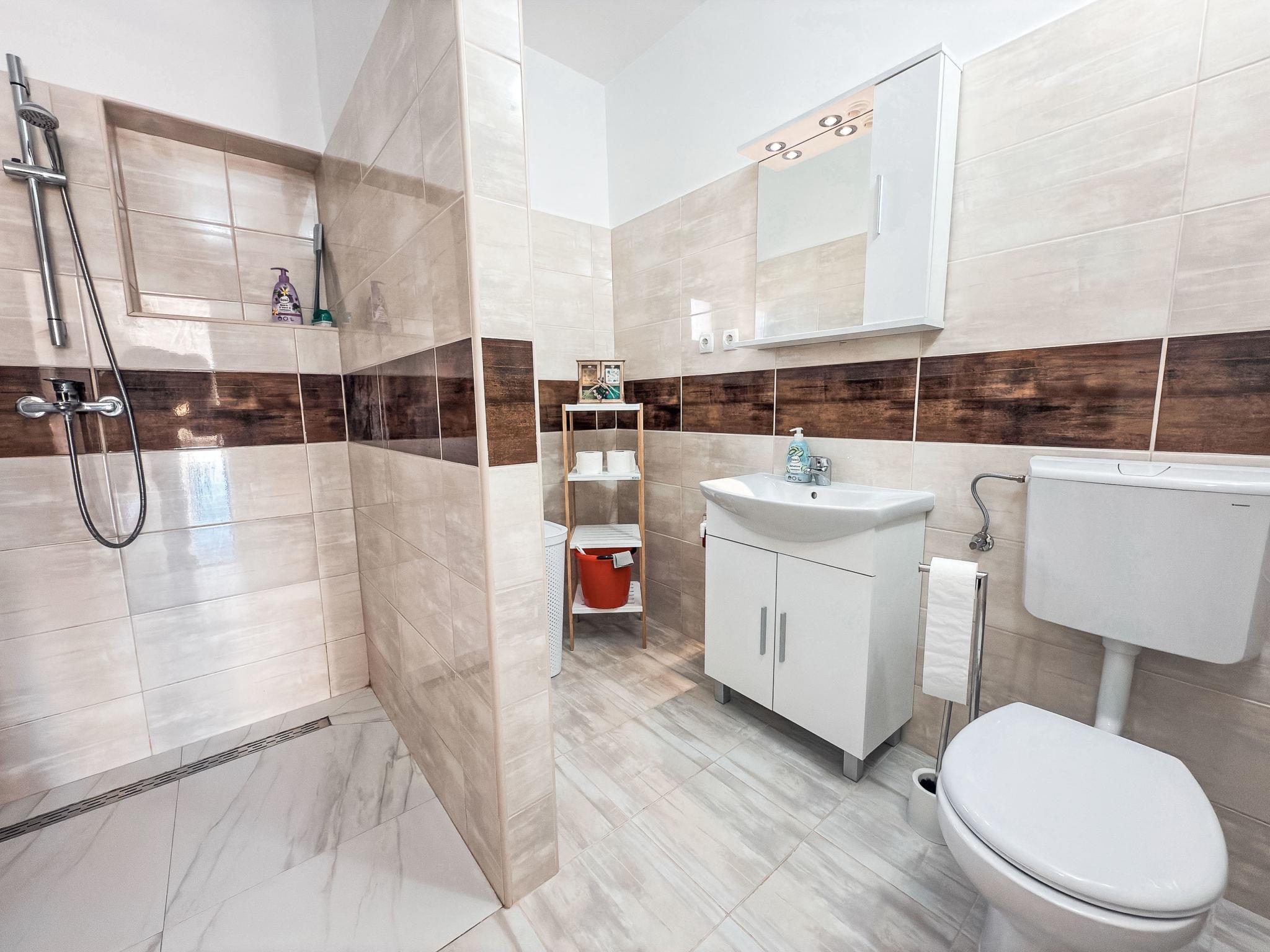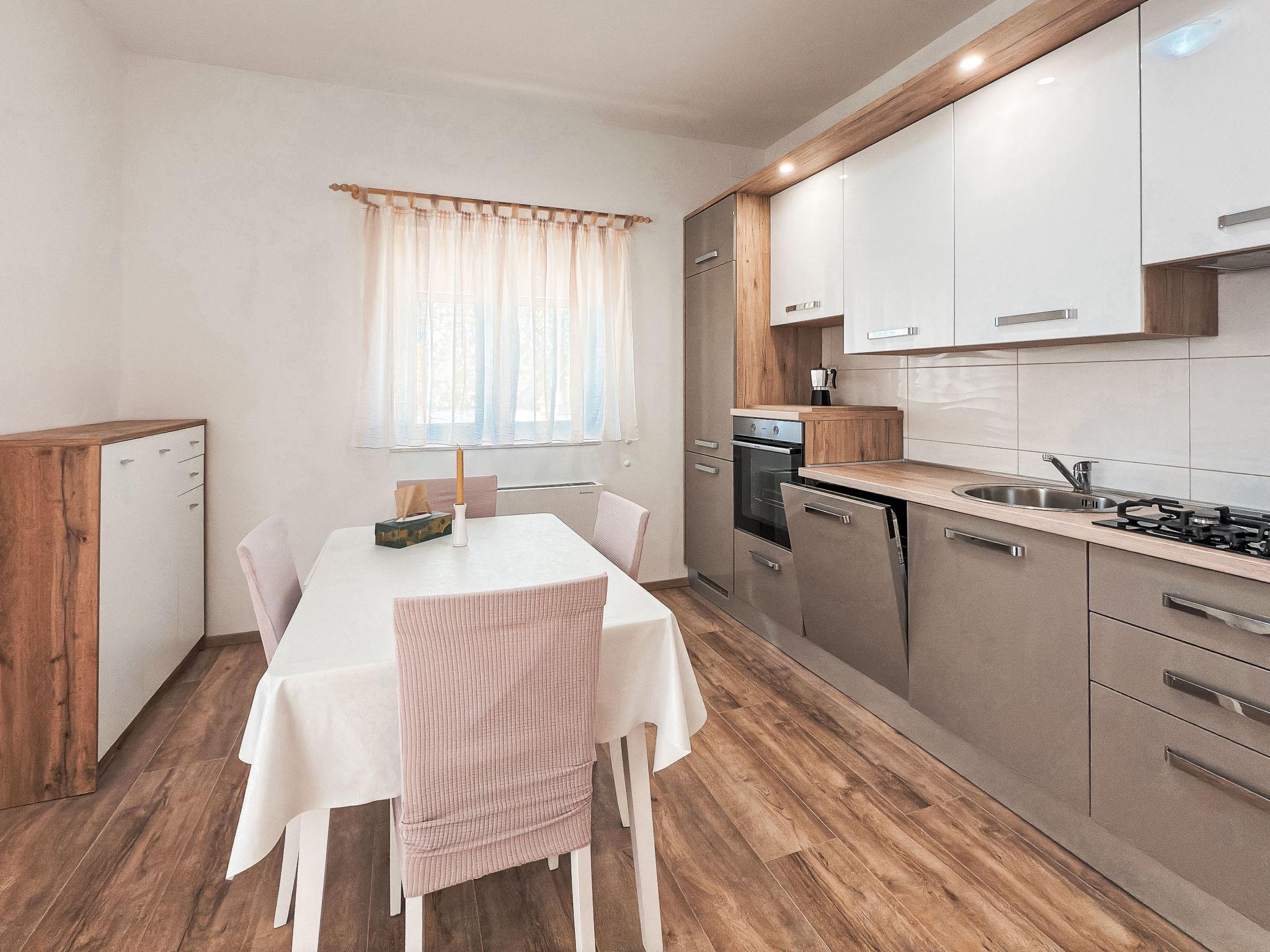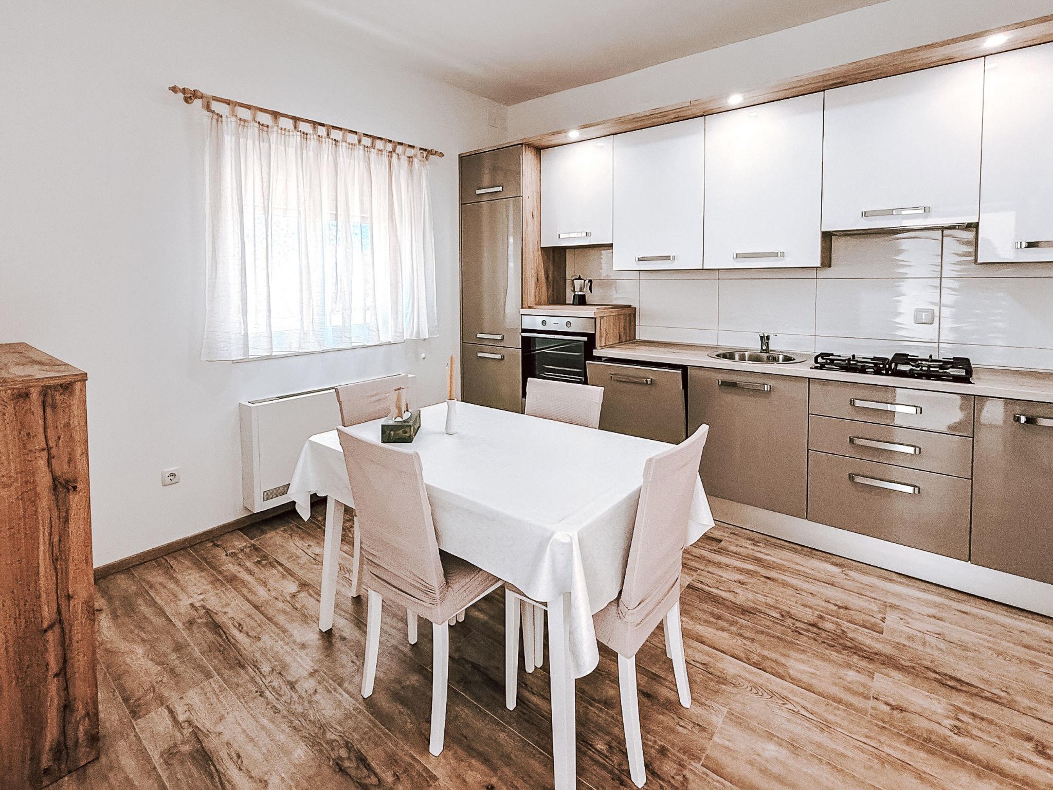 Seline: Semi-detached house "Josip". 4 km from the centre of Starigrad-Paklenica: in a sunny position, 550 m from the sea, 550 m from the beach. For shared use: property 800 m2. In the house: internet access, washing machine. Parking (for 2 cars) at the house on the premises. Shop, restaurant 400 m, bus stop 1 km, pebble beach 550 m. Nearby attractions: NP Paklenica 2.5 km, Cave Modric 8 km.