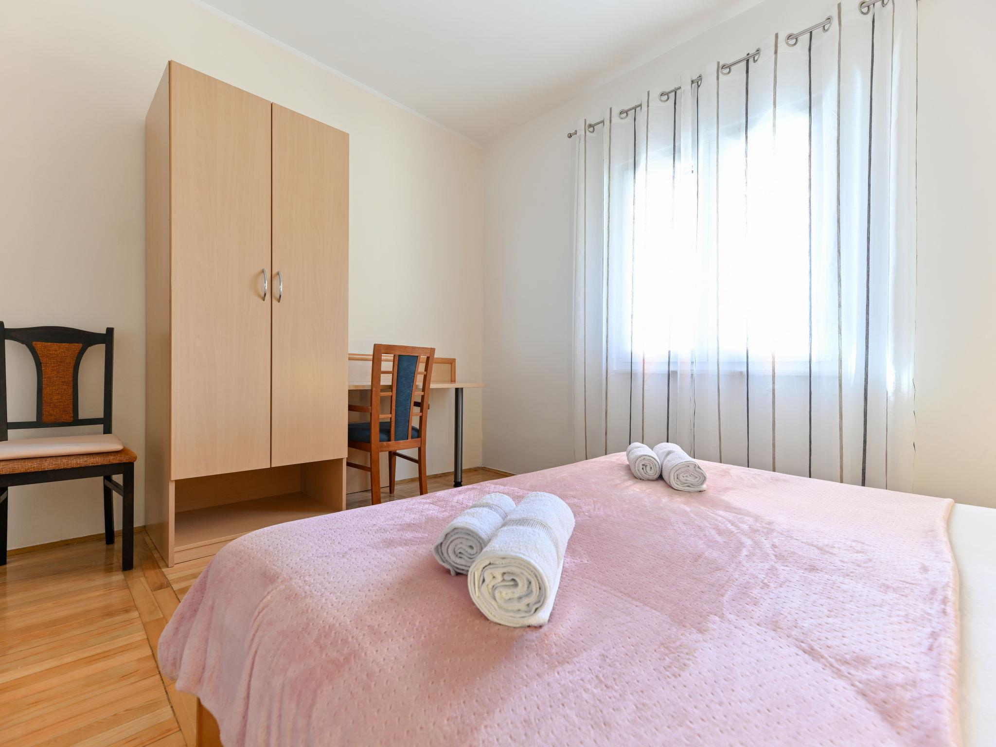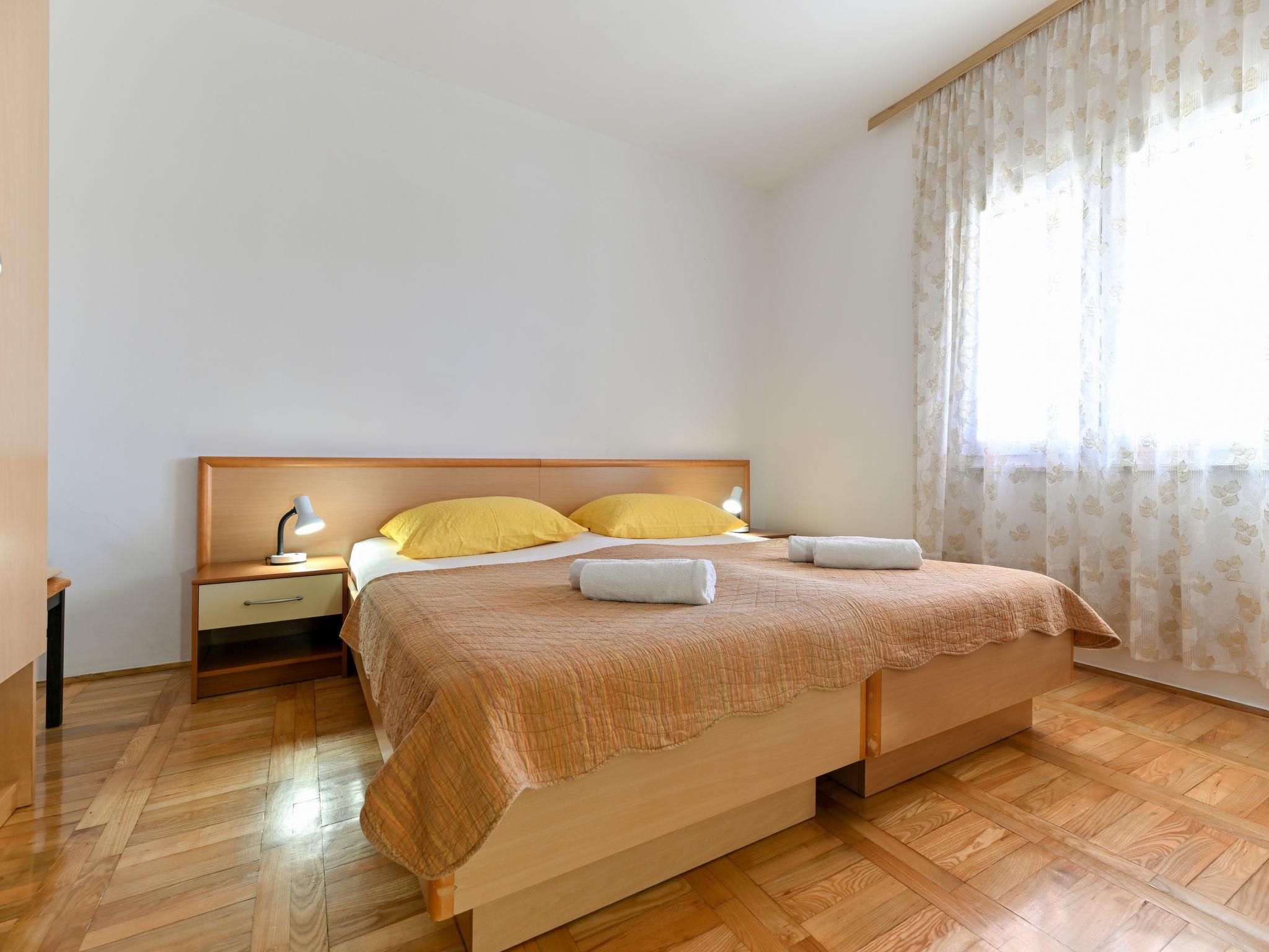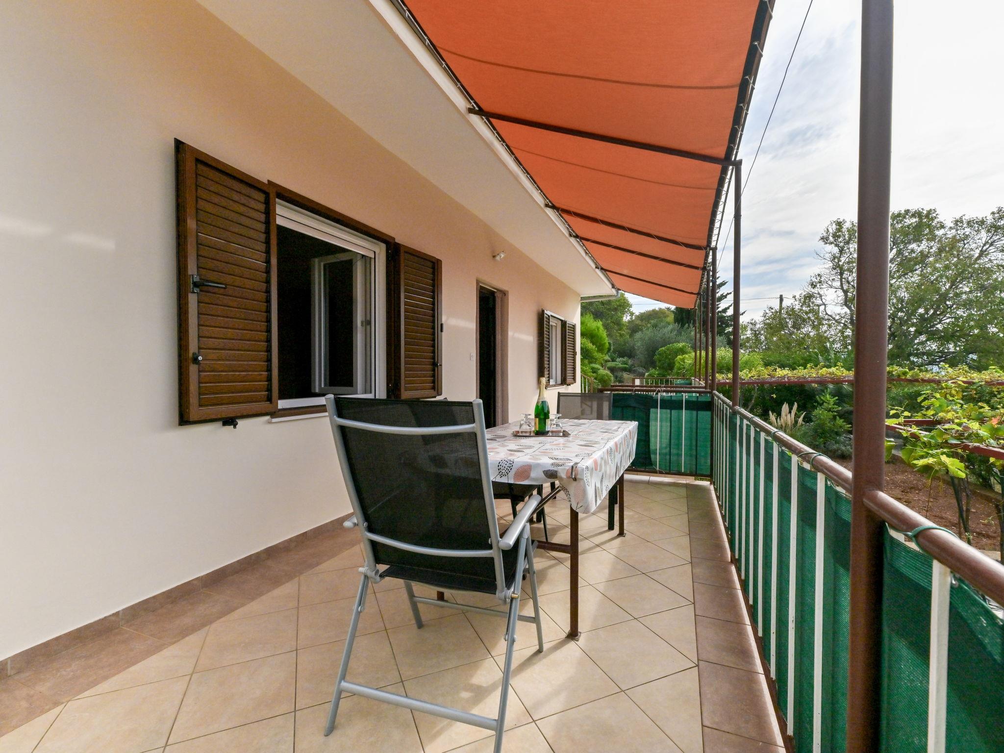 2-room apartment 54 m2, on the upper ground floor. 1 room with 1 bed (90 cm, length 200 cm), 1 double bed (2 x 90 cm, length 200 cm). 1 room with 1 bed (90 cm, length 200 cm), 1 french bed (180 cm, length 200 cm), air conditioning. Kitchen (1 hot plate, oven, 3 gas rings, toaster, kettle, freezer, electric coffee machine) with dining table, satellite TV (flat screen). Shower/WC. Air-conditioning (extra). No heating option. Terrace 20 m2 partly. Terrace furniture, barbecue (portable). View of the sea. Facilities: washing machine, hair dryer. Internet (WiFi, free). Please note: non-smokers only. Maximum 1 pet/ dog allowed.