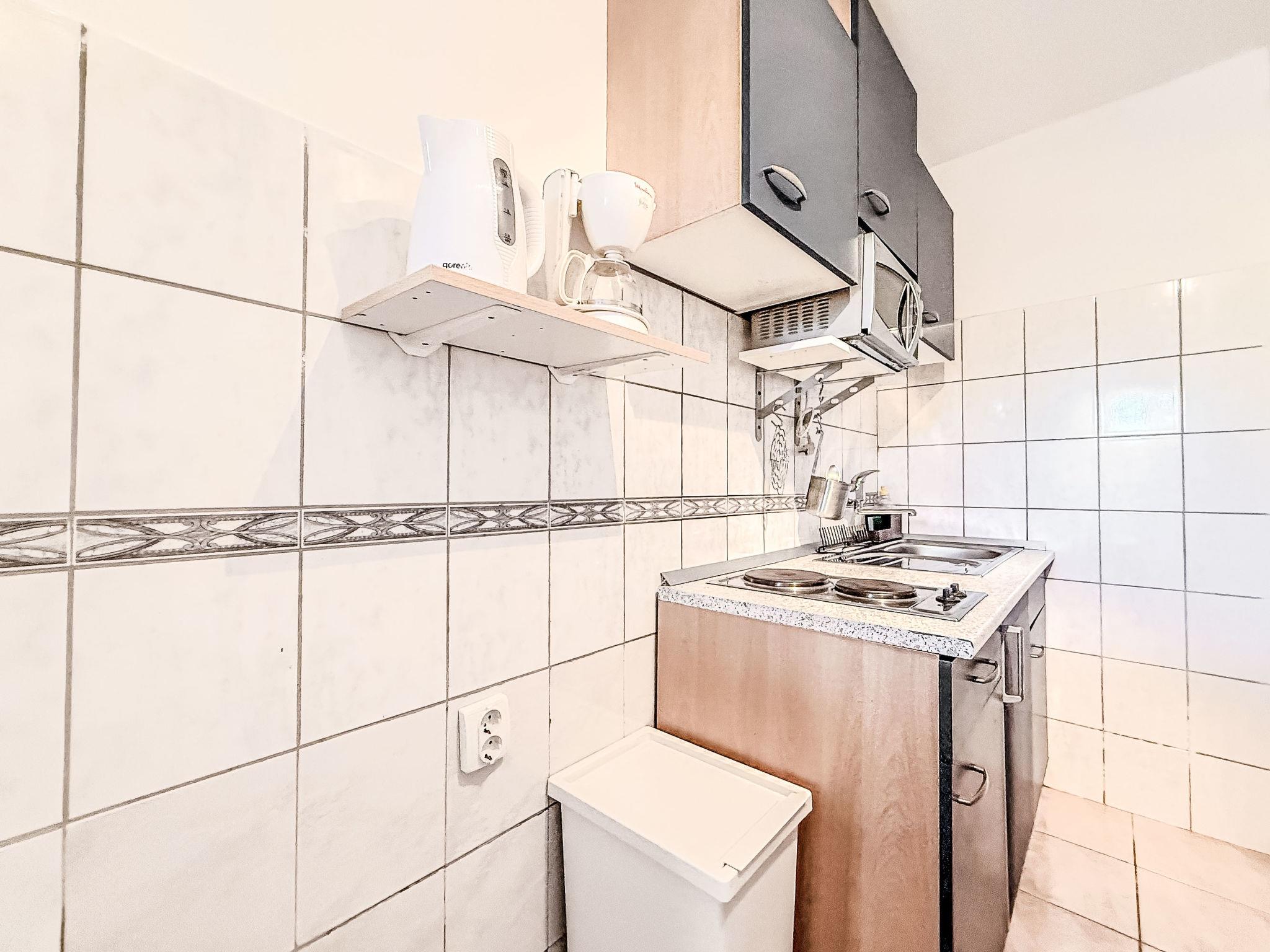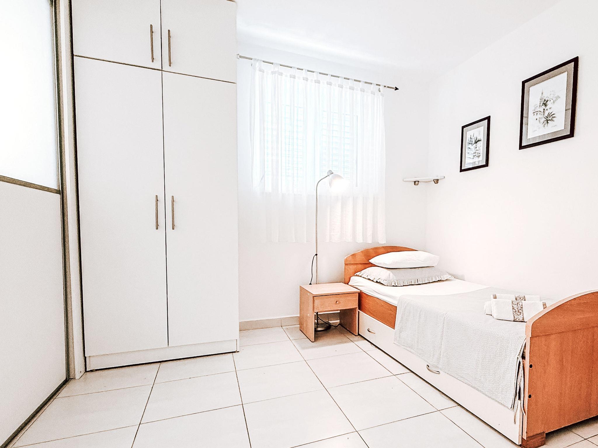 "Gottwald", 6-room apartment 100 m2, on the ground floor. Living/dining room with kitchen corner, satellite TV and air conditioning. Walk-through room with 1 bed (90 cm, length 200 cm). 1 small room with 1 french bed (140 cm, length 200 cm). Living/dining room with satellite TV and air conditioning. Walk-through room with 1 bed (90 cm, length 200 cm). 1 small room with 1 french bed (140 cm, length 200 cm). Open kitchen (2 hot plates, kettle, electric coffee machine). 2 showers/WC. No heating option. Facilities: Internet (WiFi, free). The apartment consists of 2 apartments on the ground floor, rented as one unit. Each apartment with living/dining area, open kitchen and 2 bedrooms. Each apartment with external and separate entrance.
