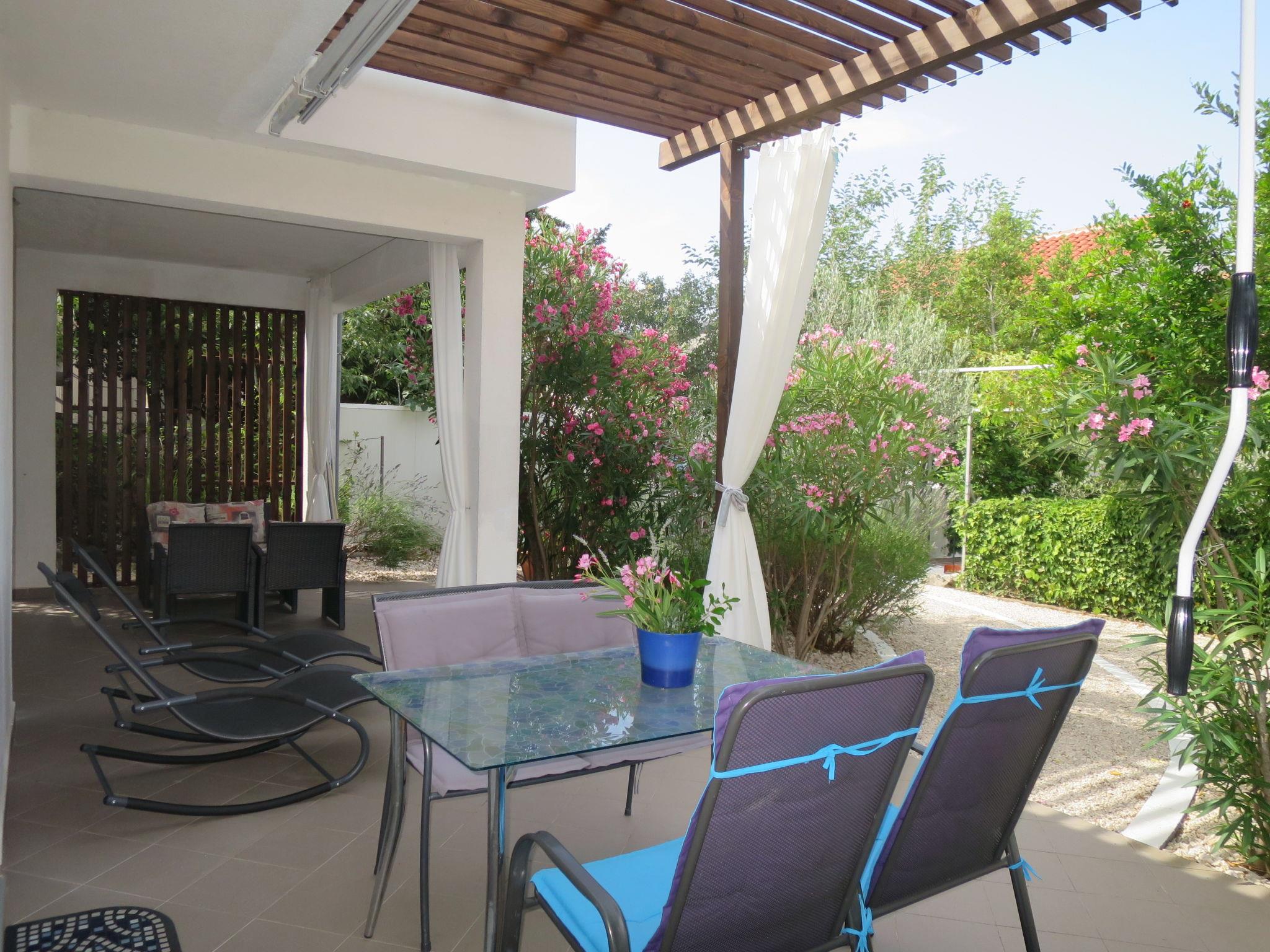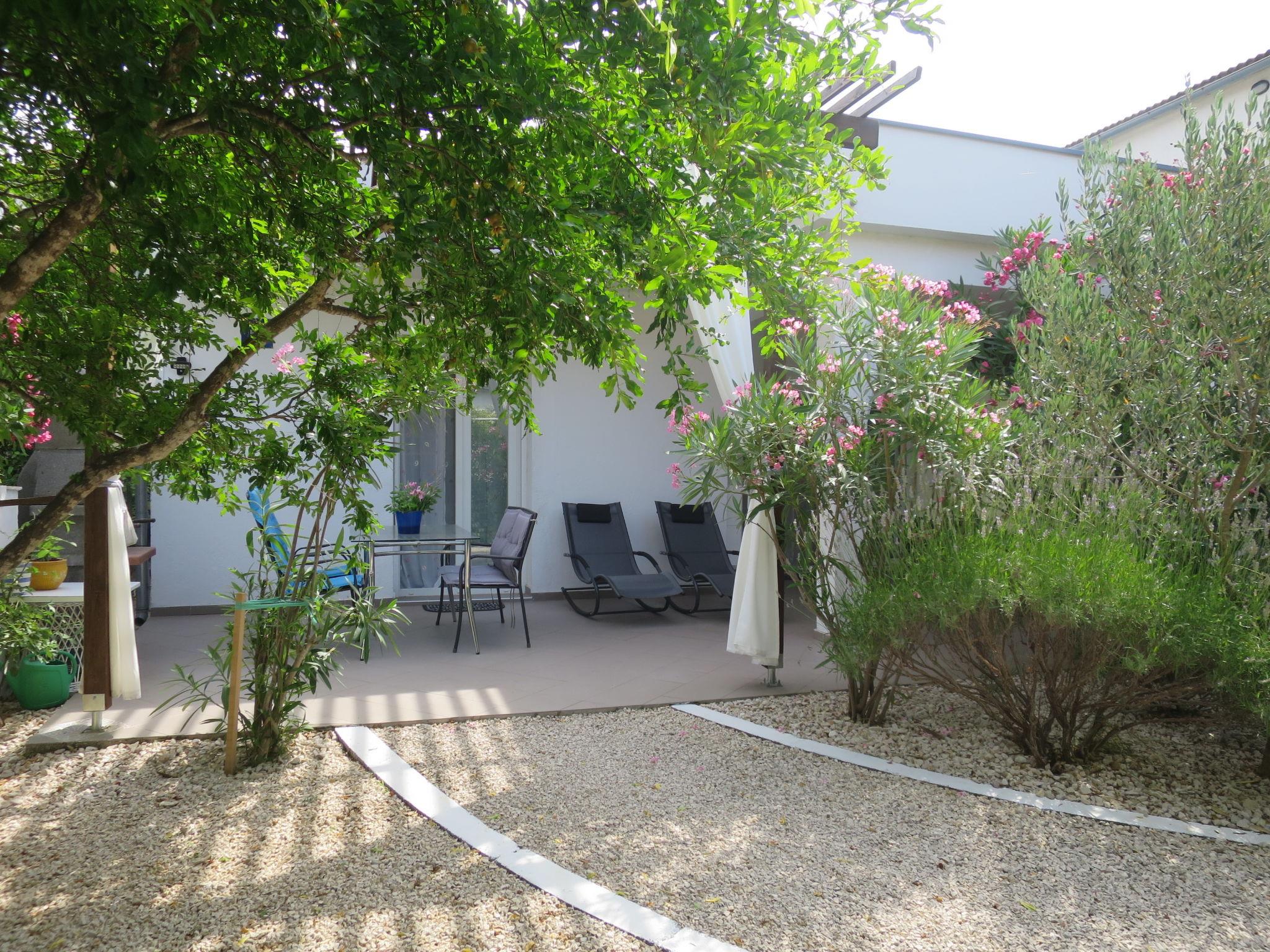 Single-family house "Katarina". 12 km from the centre of Starigrad, 200 m from the centre of Rovanjska, 35 km from the centre of Zadar, 250 m from the sea, 250 m from the beach. Private: property 180 m2 (fenced) with wildlife garden. Terrace (20 m2), garden furniture, barbecue. In the house: internet access, washing machine. Parking at the house on the premises. Shop 200 m, supermarket 12 km, bus stop 300 m, rocky beach 250 m.