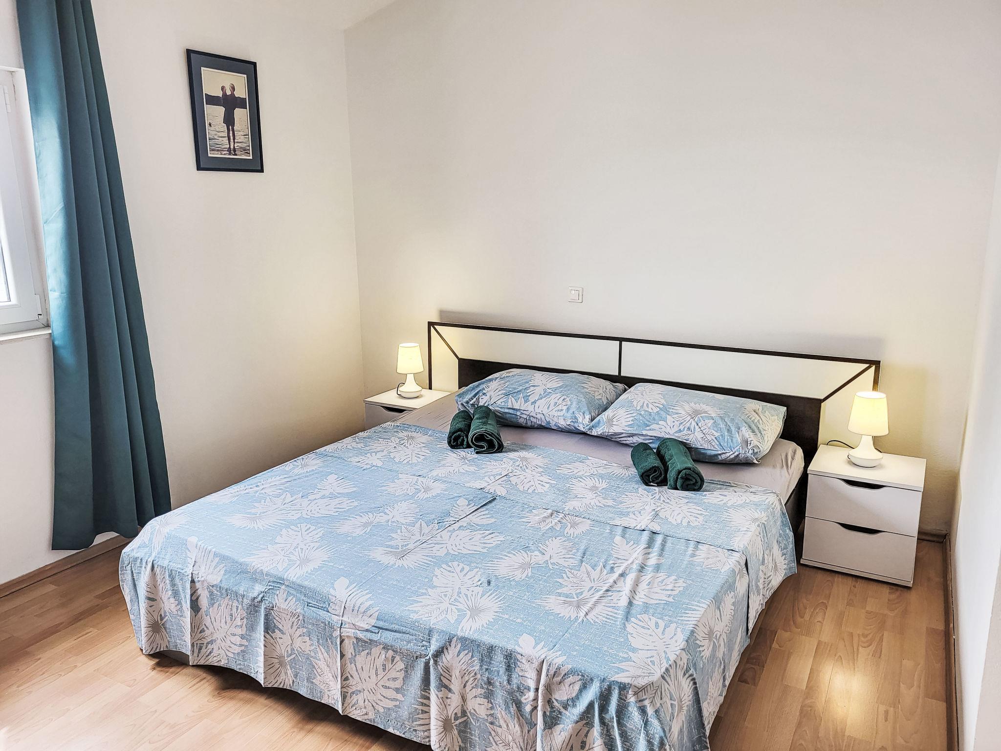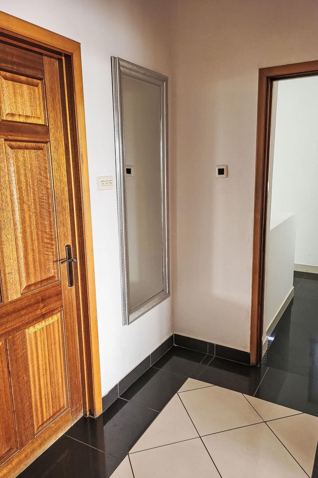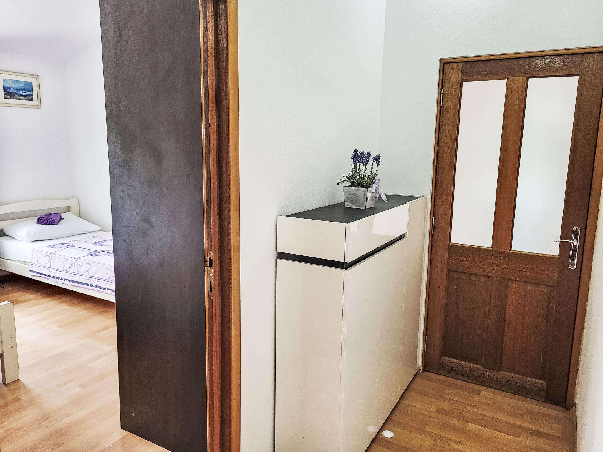 "Mirjana", 4-room apartment 100 m2 on 1st floor. Living/dining room with satellite TV and air conditioning. Exit to the balcony. 1 room with 1 double bed (180 cm, length 200 cm), air conditioning. 2 rooms, each room with 2 beds (90 cm, length 200 cm). Open kitchen (2 hot plates, oven, dishwasher, 2 gas rings, toaster, kettle, freezer, electric coffee machine). Shower/WC, sep. WC. No heating option. Balcony. Balcony furniture. Beautiful view of the sea. Facilities: washing machine. Internet (WiFi, free). Please note: private entrance.