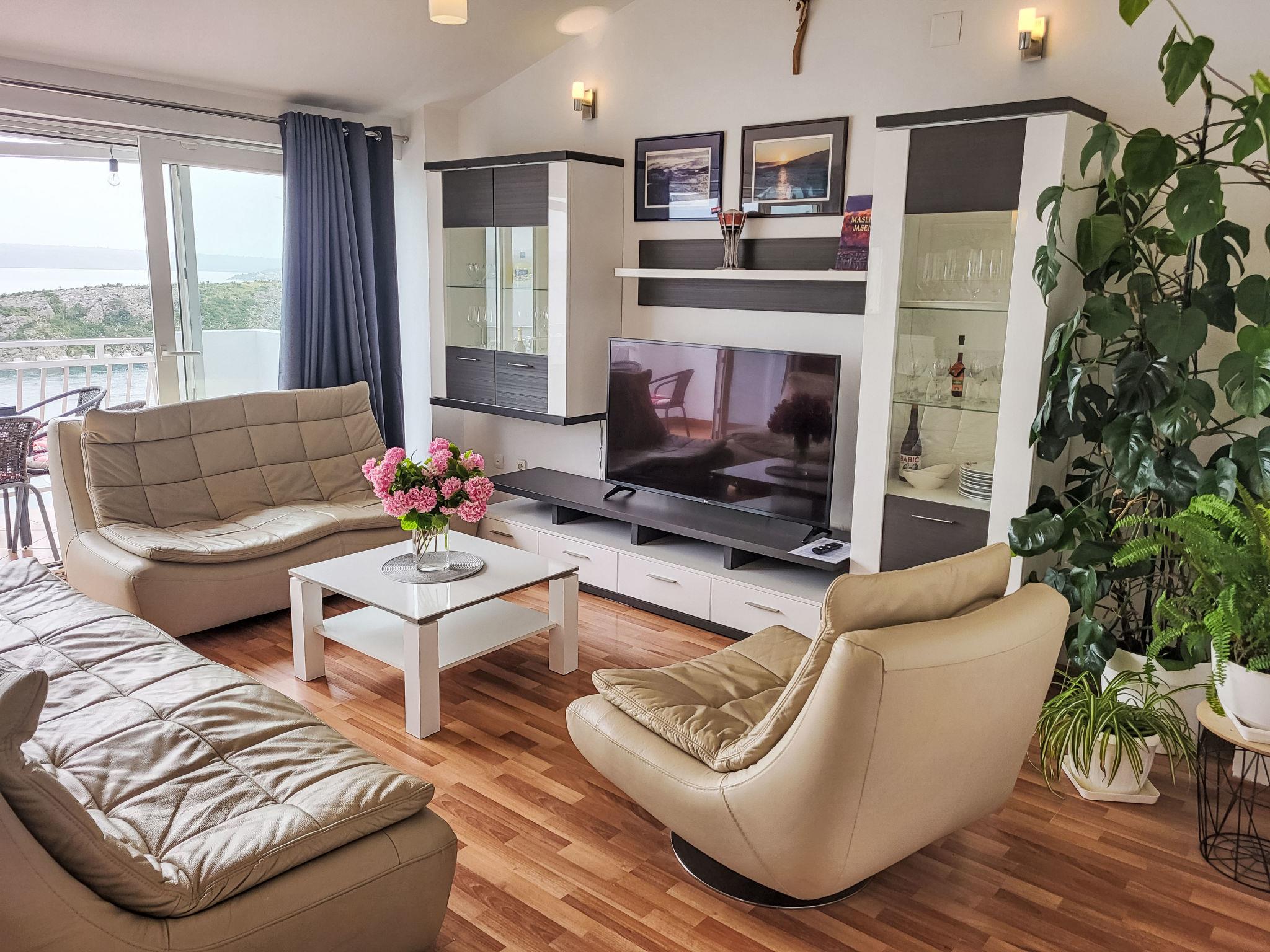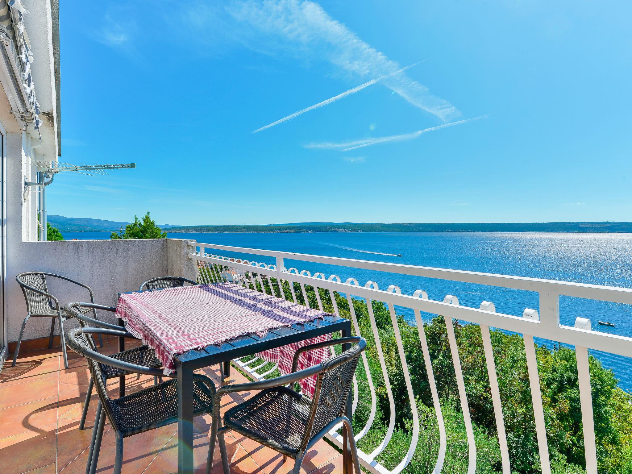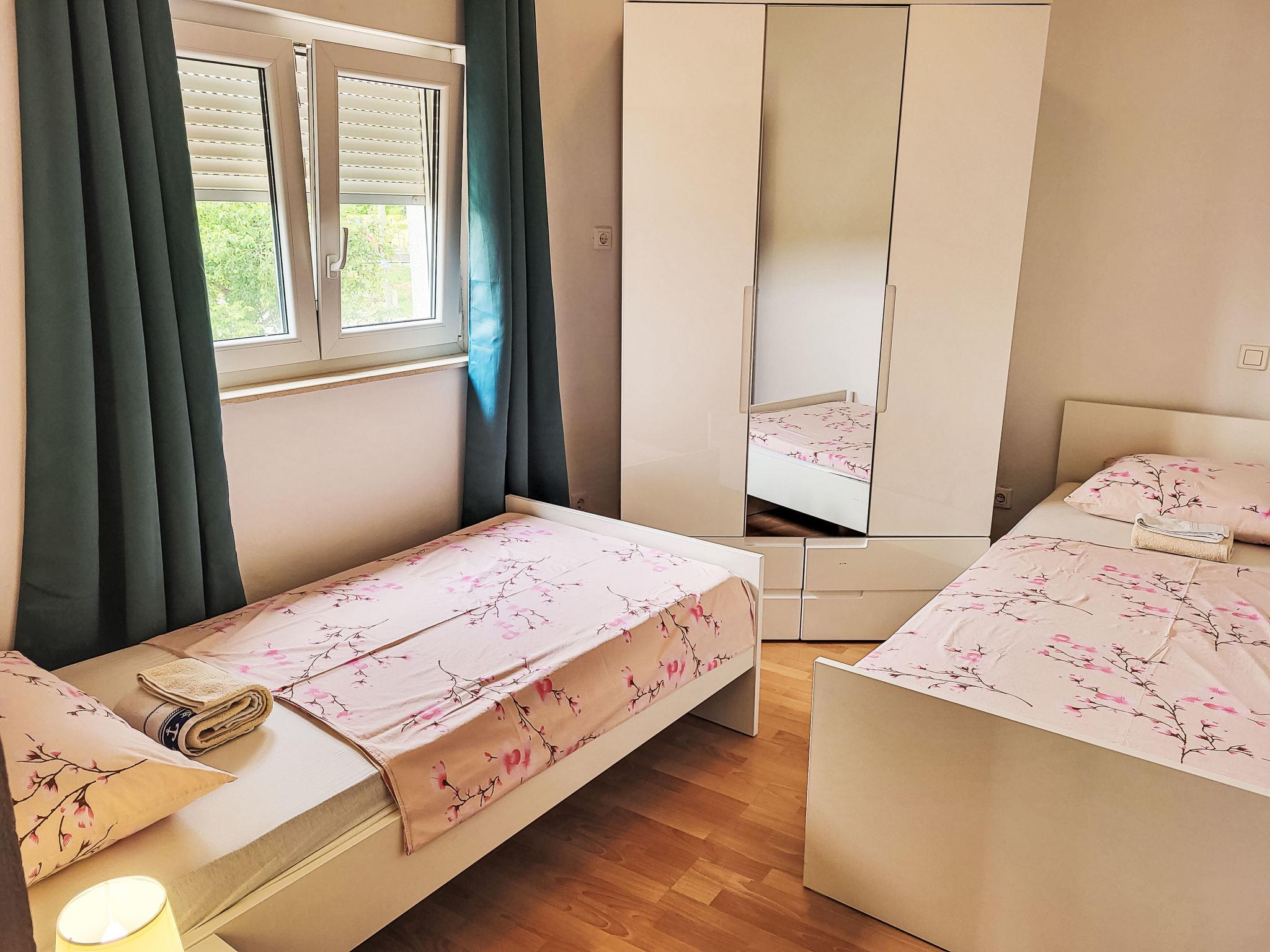 "Mirjana", 4-room apartment 100 m2 on 1st floor. Living/dining room with satellite TV and air conditioning. Exit to the balcony. 1 room with 1 double bed (180 cm, length 200 cm), air conditioning. 2 rooms, each room with 2 beds (90 cm, length 200 cm). Open kitchen (2 hot plates, oven, dishwasher, 2 gas rings, toaster, kettle, freezer, electric coffee machine). Shower/WC, sep. WC. No heating option. Balcony. Balcony furniture. Beautiful view of the sea. Facilities: washing machine. Internet (WiFi, free). Please note: private entrance.