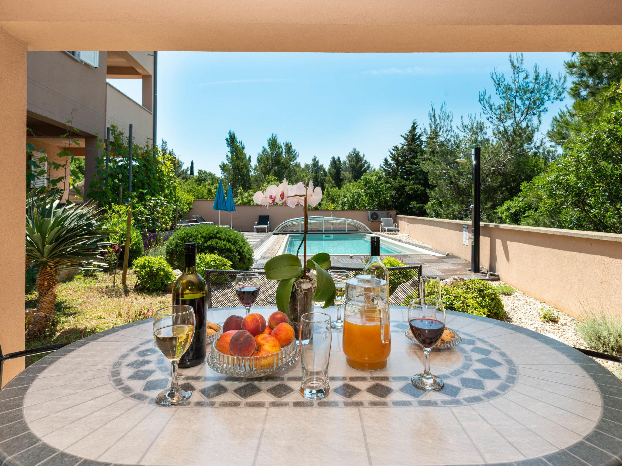Apartment house "Matas". 12 km from the centre of Starigrad, 300 m from the centre of Rovanjska, 35 km from the centre of Zadar, 200 m from the sea, 200 m from the beach, in a cul-de-sac. For shared use: property 500 m2 (fenced) with trees, swimming pool angular heated (8 x 3 m, 30 m2, depth 150 cm, seasonal availability: 28.Mar. - 17.Oct.) with internal staircase and shutter cover. Outdoor shower, terrace, garden furniture, barbecue, pool maintenance by the owner/gardener. In the house: internet access. Parking on the premises, public parking. Shop 300 m, restaurant 500 m, bus stop 350 m, rocky beach 200 m. Swimming pool with counterflow.