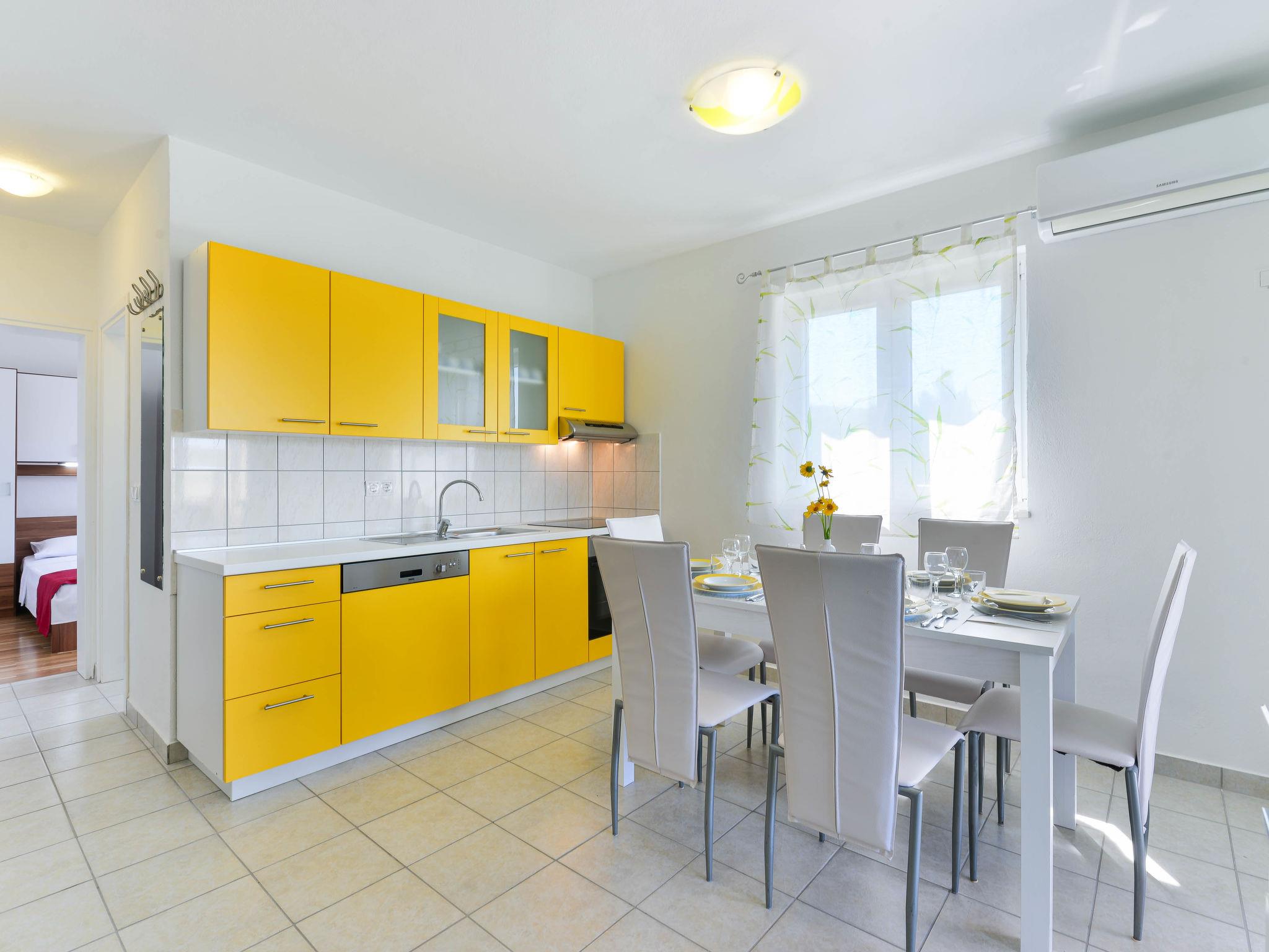 "Matas", 3-room apartment 40 m2 on 1st floor. Living/dining room with 1 double sofabed (145 cm, length 200 cm), satellite TV and air conditioning. Exit to the balcony. 1 room with 1 double bed (2 x 80 cm, length 200 cm). 1 room with 1 double bed (2 x 90 cm, length 200 cm). Open kitchen (oven, dishwasher, 4 ceramic glass hob hotplates, toaster, kettle, freezer, electric coffee machine). Shower/WC. No heating option. Balcony 10 m2. Balcony furniture. Facilities: washing machine, hair dryer. Internet (WiFi, free). Please note: non-smoking house.