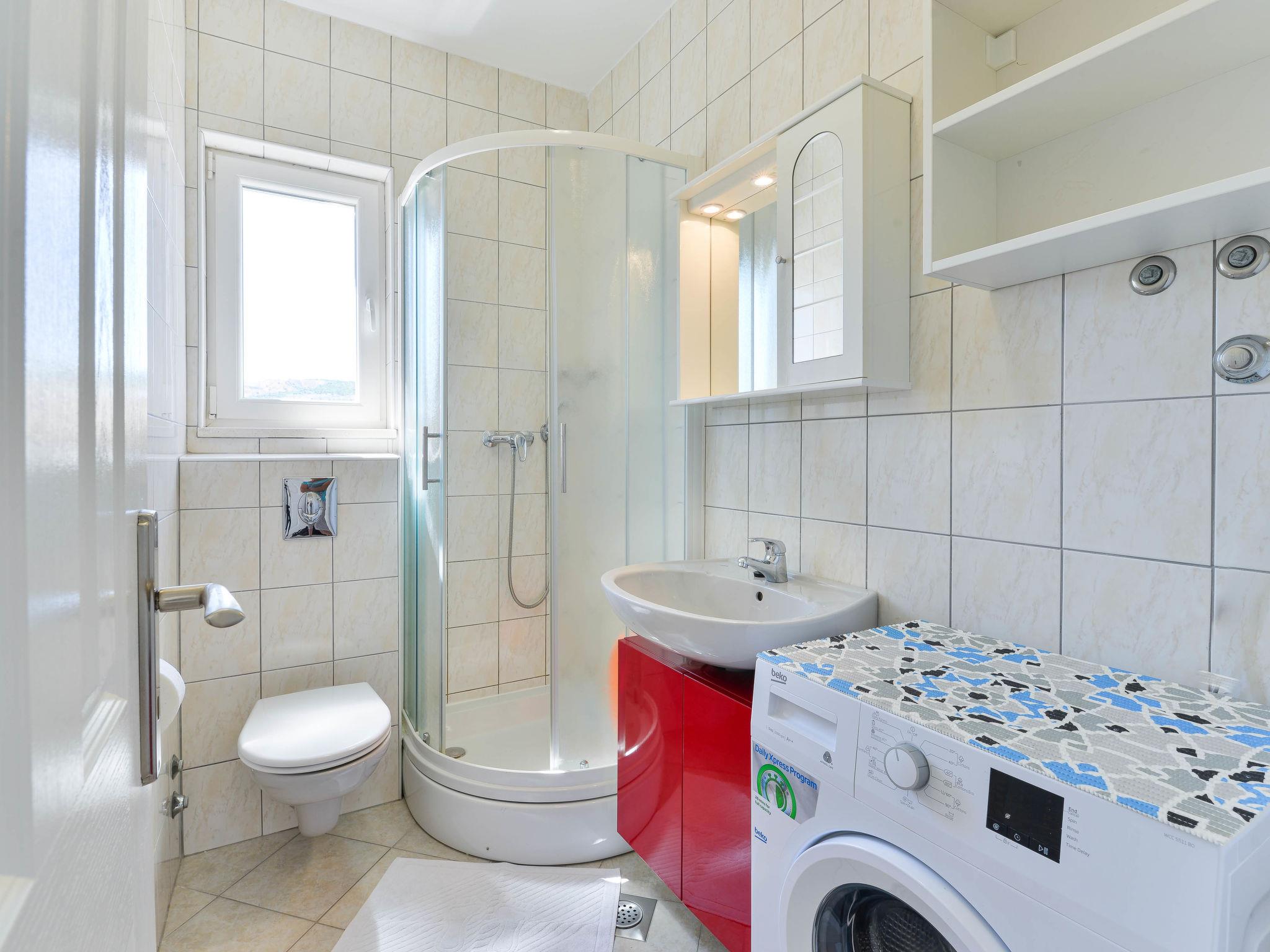 "Matas", 3-room apartment 40 m2 on 2nd floor. Living/dining room with 1 double sofabed (145 cm, length 200 cm), satellite TV and air conditioning. Exit to the balcony. 1 room with 1 double bed (2 x 80 cm, length 200 cm). 1 room with 1 double bed (2 x 90 cm, length 200 cm). Open kitchen (oven, dishwasher, 4 ceramic glass hob hotplates, toaster, kettle, freezer, electric coffee machine). Shower/WC. No heating option. Balcony 10 m2. Balcony furniture. Partial view of the sea. Facilities: washing machine, hair dryer. Internet (WiFi, free). Please note: non-smoking house.
