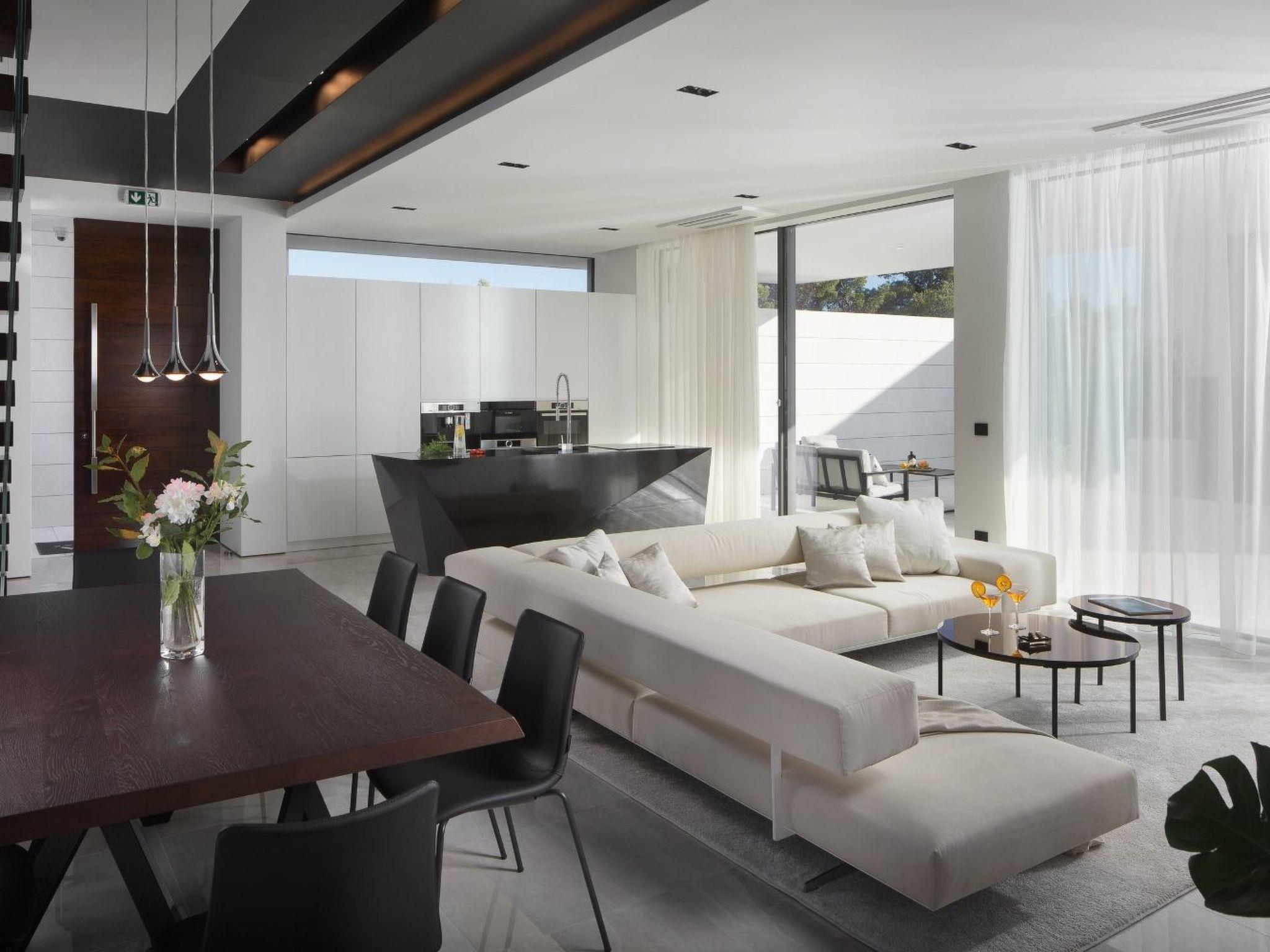 Villa Opera promises an unwinding interior environment with four bedrooms, offering ample space for everyone in your party. Each bedroom comes accompanied by its own bathroom, providing privacy and comfort. The inclusion of air conditioning throughout the villa guarantees a cool and pleasant climate regardless of the weather outside. Practical amenities such as a clothes dryer, coffee machine, dishwasher, and electric kettle further enhance your stay, ensuring a blend of relaxation and convenience.
