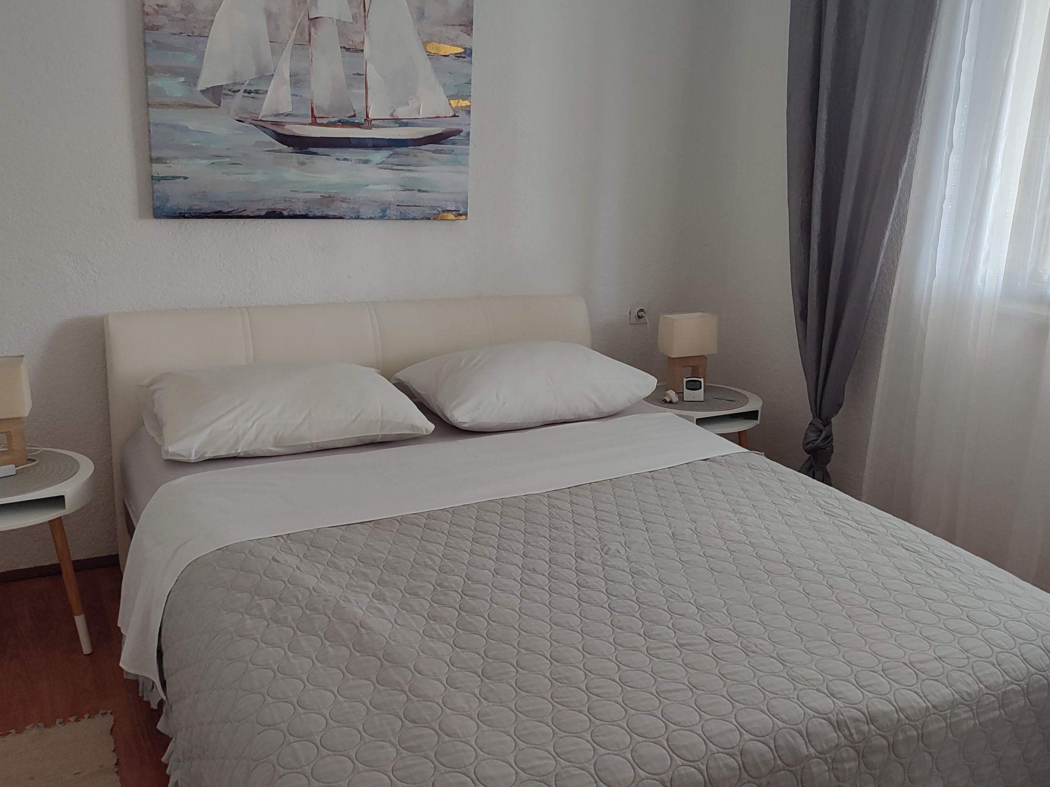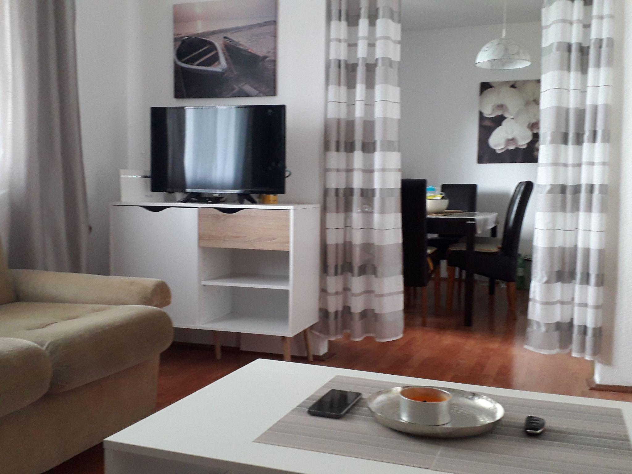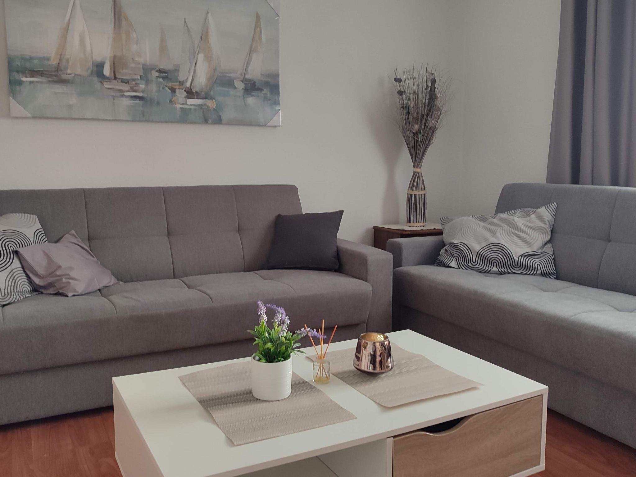 The apartment boasts a large kitchen and living room equipped with two sofa beds for relaxation and the possibility of additional accommodation, making it perfect for families or groups of friends. There are two bedrooms, one with a French bed measuring 160X200 cm and the other with two single beds measuring 90X200 cm, providing comfortable accommodation for up to four people. The bathroom is equipped with a shower and a washing machine, and the apartment also includes all necessary appliances, bed linen, free air conditioning, satellite TV and Wlan.